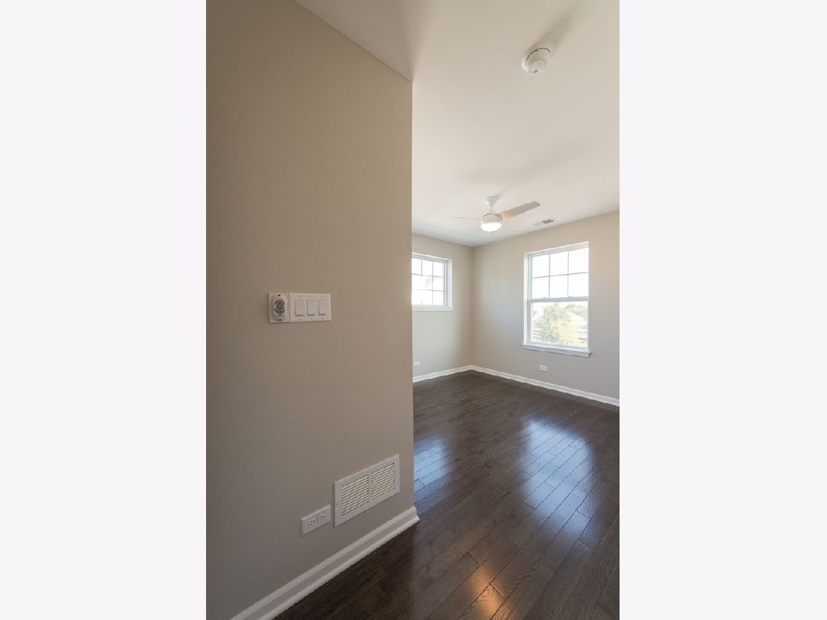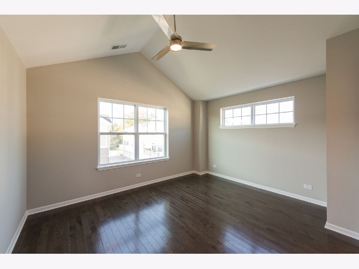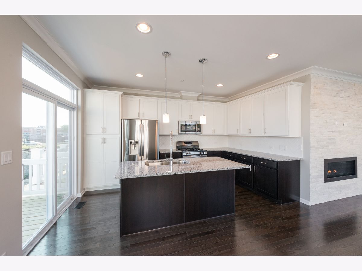 Within this private gated community, welcome to the only end-unit townhome that is interior of the community without a backyard neighbor. Located walking distance from all that Uptown Park Ridge has to offer, this 2017 new construction townhome has it all! Main floor with 9' ceilings features a stunning kitchen with herringbone backsplash, shaker cabinets with crown molding, granite countertops, and huge breakfast island. Light filled living room showcases a gorgeous gas fireplace! Den off the family room can be a great main floor office, kid's play room or extended dining area. Walk out to your own private balcony, perfect for grilling and entertaining. Upper level with hardwood floors in all bedrooms offers a king-size suite with custom designed walk-in closet, vaulted ceiling and ensuite bathroom with double sinks, marble counters and extra deep soaking tub. Two additional bedrooms, another full bath, laundry and two linen closets round out the second floor. The lower level is a versatile space-perfect for a home theater, play area, or a home gym! Two-car attached garage with additional custom storage is super convenient. Other highlights include custom top down bottom up shades on the main and upper levels, crown molding throughout first floor and upgraded handrails. Impeccably maintained landscaping throughout and just steps from schools, parks, Uptown shops and restaurants, the Metra, highways and so much more. This 3-story open concept townhouse with three exposures is a must see!