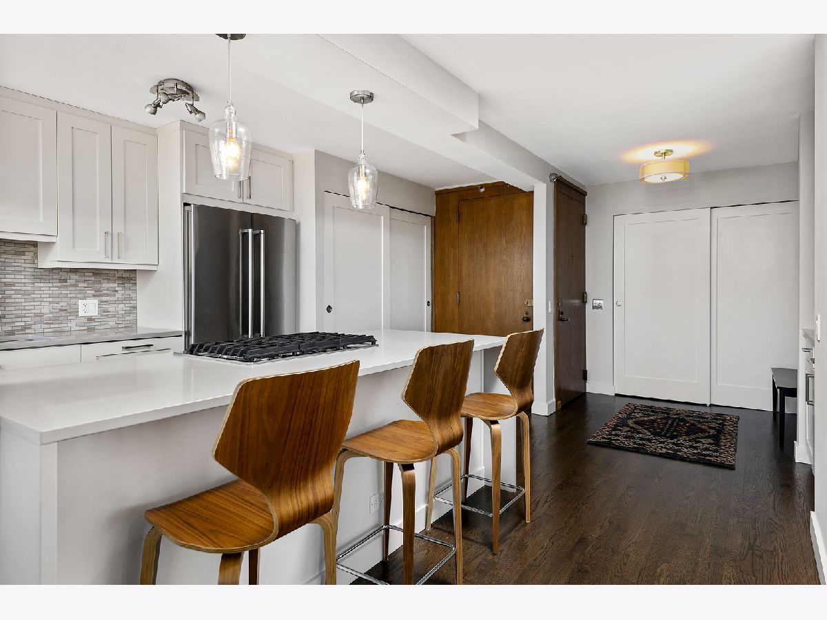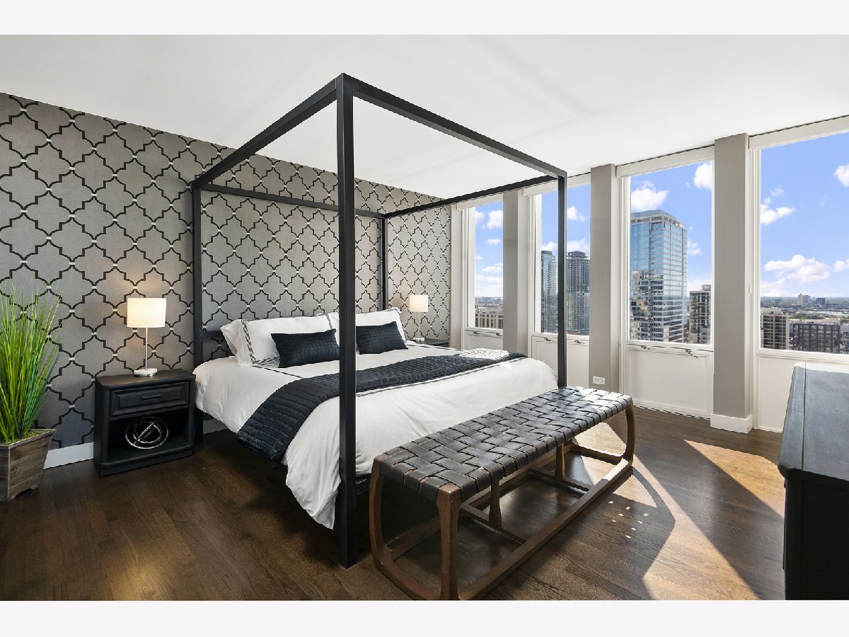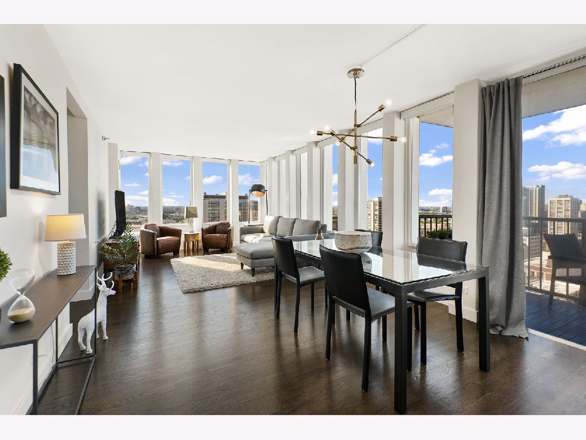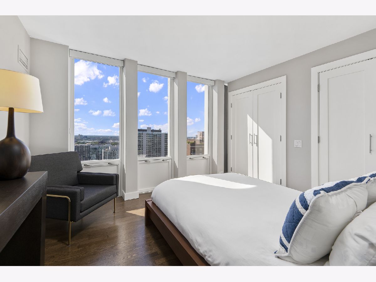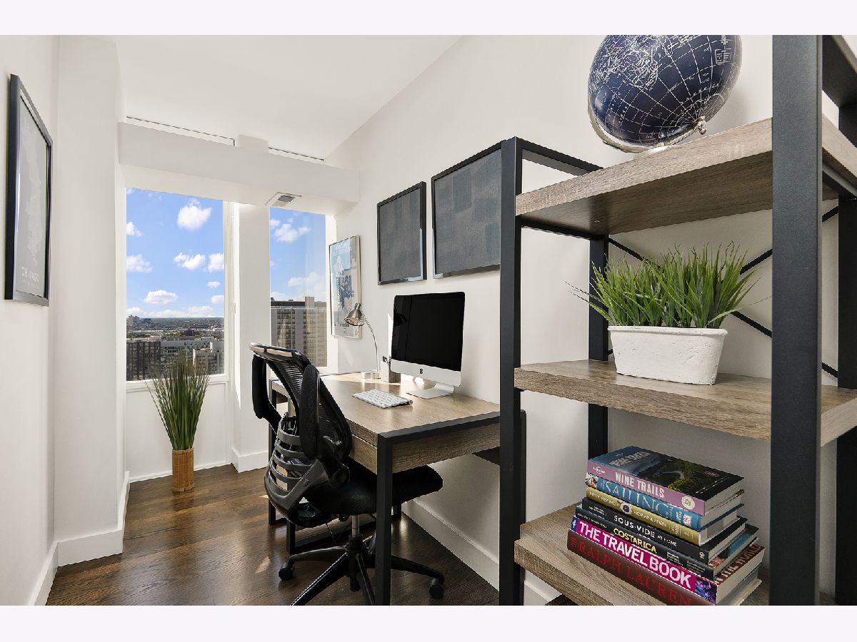 Completely and thoughtfully renovated 2 bed/ 2 bath + office in the heart of Gold Coast. High floor with spectacular north, east and west views with large balcony- tons of natural light! Solid oak hardwood floors and tons of closet space throughout. In-unit washer/ dryer! Remodeled kitchen includes solid soft-close cabinets & quartz countertops with built-in oven, cooktop and microwave as well as XL sink with garbage disposal. Professionally managed with 24 hour door security and solid 92-unit HOA, only 4 units per floor. Pet friendly, up to 35 lbs. Renovated building rooftop to be completed in October. Quiet and convenient location on historic tree-lined street, just steps to the lake, restaurants, the el and grocery stores! Prime garage parking spot is an additional $40k.