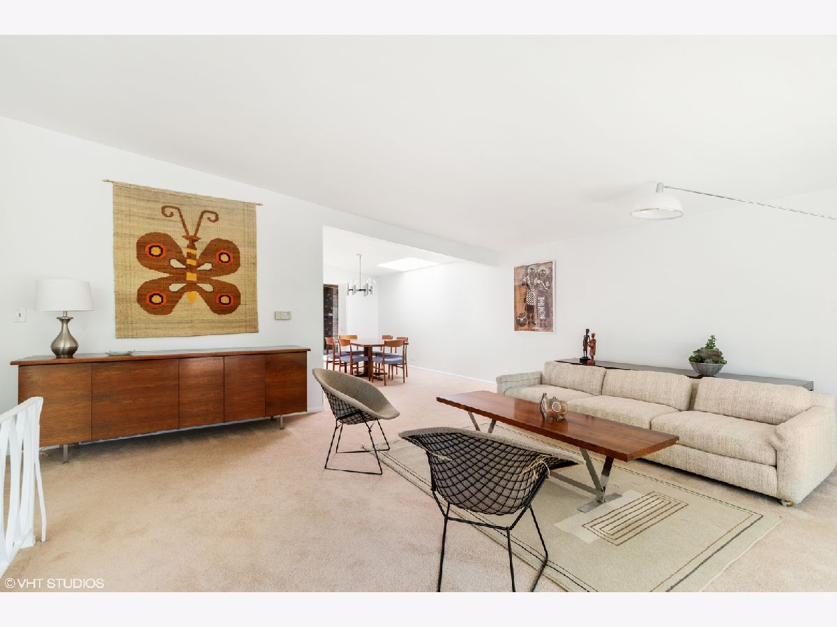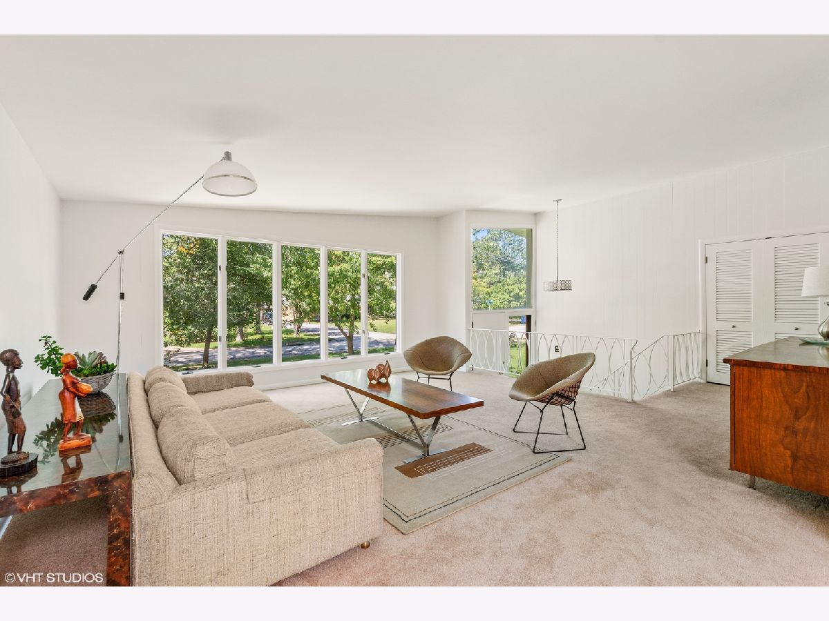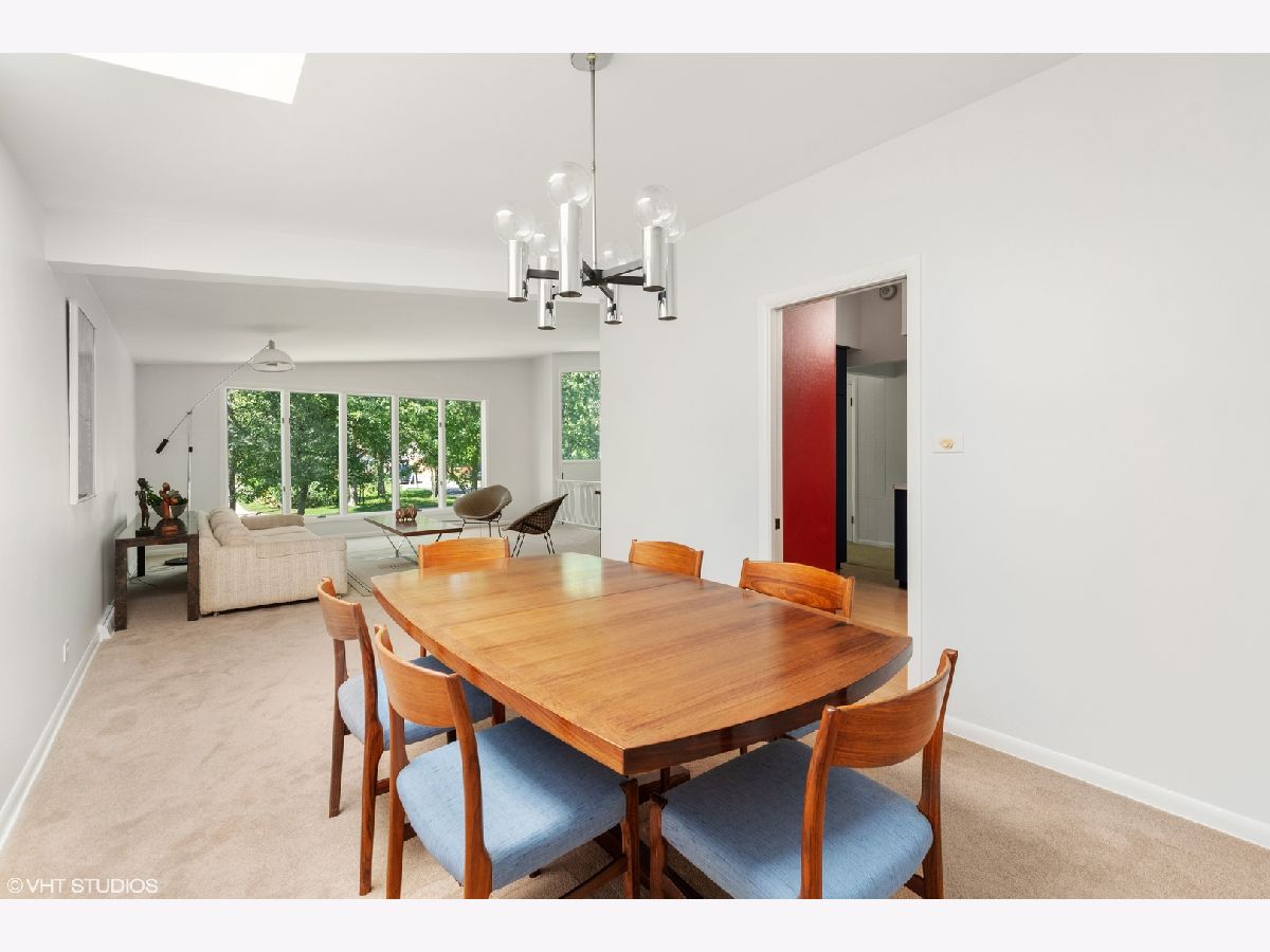 Classic Mid-Century Modern. Ideal location: blocks to downtown Highland Park, on a large lot near the end of a quiet cul-de-sac. This 5 bedroom, 2.1 bath home offers clean lines, vaulted ceilings, skylights and is bright, cheerful and freshly painted. This oasis is surrounded by a large yard and fully-fenced garden. It offers approx 2989 SF of living space, plus ample storage space. On the main level, enjoy the large family room addition with a wood burnng fireplace, open living and dining rooms, and a "mod" kitchen at the heart of the home. Primary and two bedrooms are on this level as well. Lower garden level offers a second spacious family room, 2 bedrooms, a full bathroom and a laundry room. Love big, attached garages? This oversized 2.5 car garage can't be beat! Nature lovers or folks with an itch to fish, can go across the street to the path to Foley's pond. Quick and easy access to the Edens highway and so much more. In estate, being sold "as is."