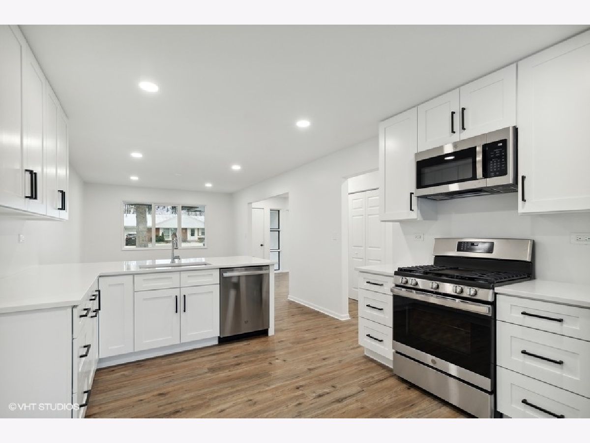 Fall in love with this fabulous 3 bedroom, 2 bath mid-century ranch home that's been completely updated in NE Deerfield and exudes all of its original character and charm. Light filled living room invites you into this special home with a wall of grid windows and cozy fireplace. Brand new Kitchen with white shaker cabinetry, quartz countertops, stainless steel appliances and peninsula with space for stools. Dining room directly open to kitchen which provides the perfect flow for entertaining. 3 generous sized bedrooms and both bathrooms have been beautifully remodeled. Family room with navy painted built-in bookcase and another wall of grid windows overlooks and has access to the wonderful fenced yard with patio. Laundry/mud room with custom built-in cubbies help to complete this unique mid-century home! Oversized 1.5 car garage has more than ample storage space. New tankless water heater, luxury vinyl plank flooring, recessed can lighting throughout, freshly painted inside and out and ready to move right in! Amazing location close to town, school, parks, pool and easy access to the train, expressway and tollway.