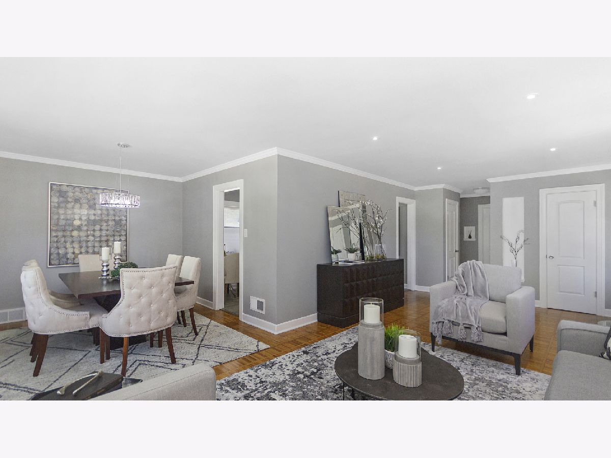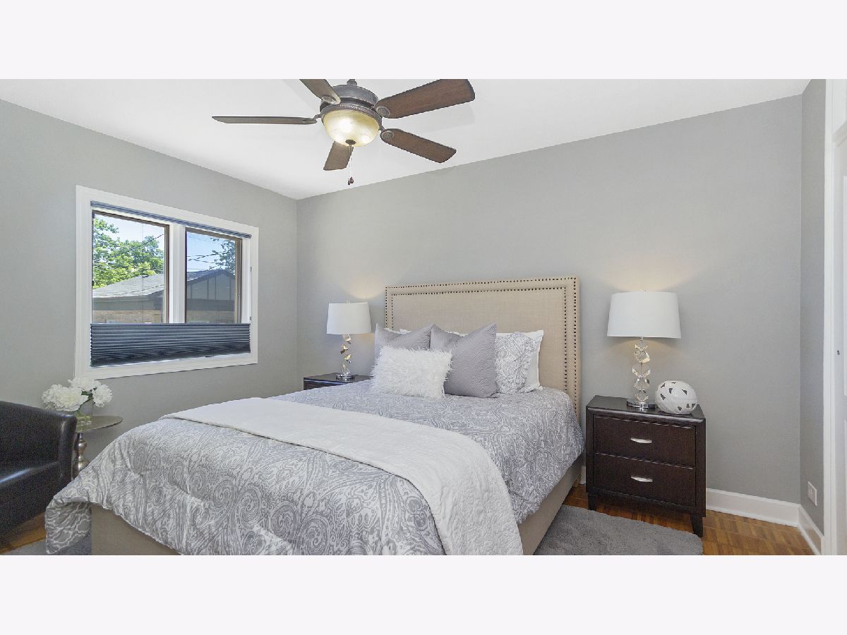 Fresh, modern & move-in ready is this darling 2 BR/ 2BA mid-century N. Oak Park brick ranch. Be impressed with this freshly painted home including updated baths and kitchen with white cabinets, stainless appliances (fridge- 2016, d/w-2017), quartz countertops and canned lighting! Many extras include custom top-down/ bottom-up window treatments (and room darkening for bedrooms), new interior doors, and space that will floor you! Located on fantastic block, this home lives larger than expected with the finished basement offering flexible uses, fully appointed bathroom, and loads of storage options. Attached garage or part of basement could be turned into a 3rd bedroom/studio with a little creativity. The exterior will dazzle you as much as the interior! Large lot offers expansion possibilities, as desired. These 10-year owners built a new oversized 2-car garage (4 years ago) and created an amazing outdoor oasis! This 50' X 155' lot includes a beautifully landscaped yard with in-ground WIFI controlled sprinkler system, fire pit with built-in seating, multiple patios, and a terrific spot for entertaining and enjoying the great outdoors! The privacy fence does just what it is supposed to do...give privacy while enjoying BBQs, family time, s'mores and so much more. Mechanicals: Central Air-2016; Hot Water Heater- 2017; Aprilaire humidifier-2017; Roof (2nd layer in 2016). Come take a look and see how great this home is!
