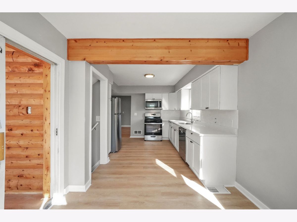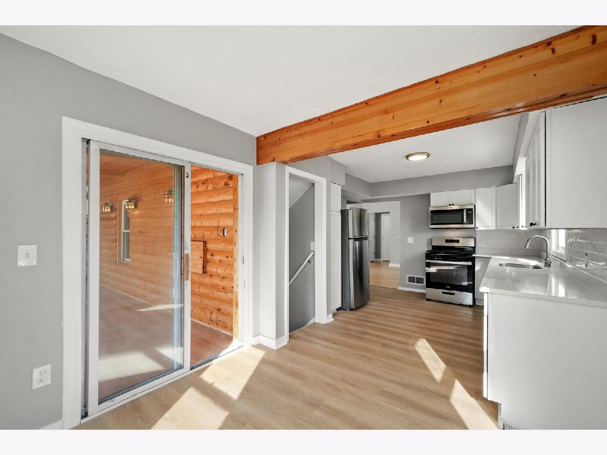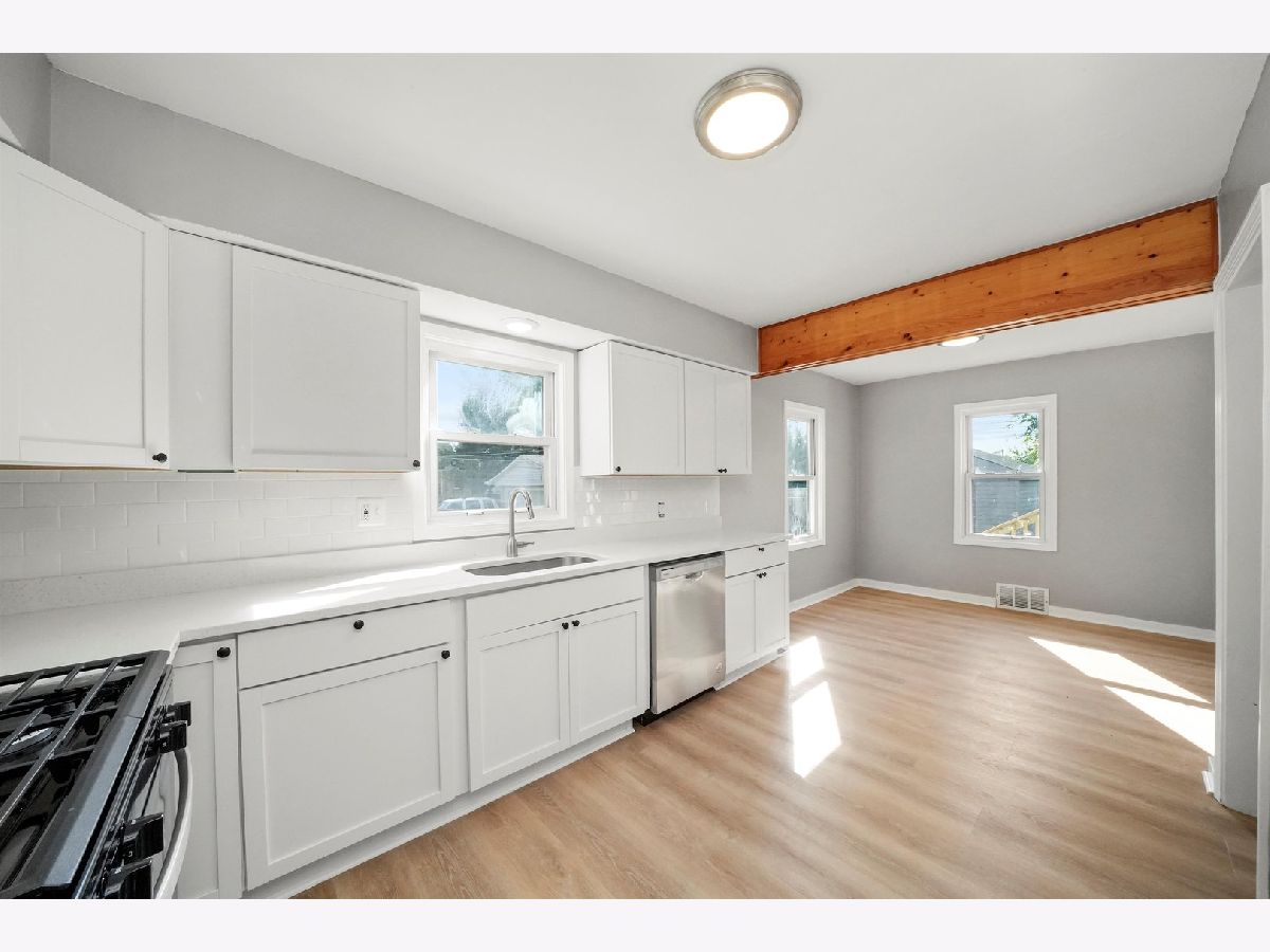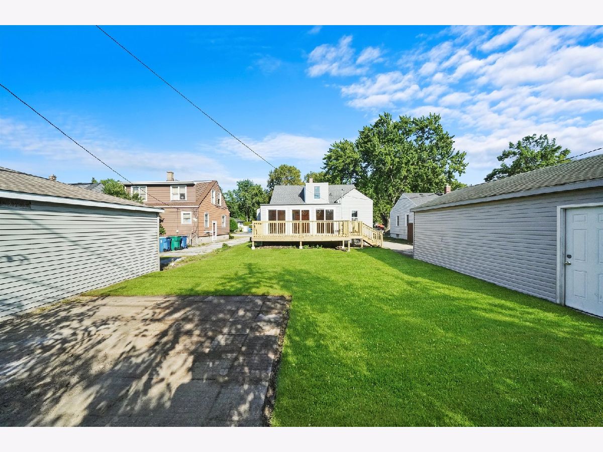 Gorgeous 4 bed 2 bath Cape Cod home on an extra wide lot in Calumet City. Looking for the perfect move in ready home just in time for the holidays? Walk into this cozy home with the refinished hardwood flooring, freshly painted walls and plenty of natural light from the beautiful windows. There are 2 bedrooms on the main level and a full bath with all the modern finishes. Kitchen/dining room combo boasts brand new luxury vinyl plank flooring, cabinetry, subway tile backsplash, quartz countertops and stainless steel appliances. Just off the kitchen, is the most inviting room in the home. Escape to the relaxing log cabin like spacious family room with gas fireplace on a cobblestone accent wall. Plenty of natural sunlight come in the 3 sliding glass doors to the brand new 19x9 wood deck. Perfect for outdoor entertaining space. The second level has 2 very generous bedrooms with brand new carpeting and ample closet space. Finished basement has an additional recreational space and a full bathroom with beautiful tile finishes, separate laundry space and plenty of storage. Backyard is quite appealing to the eye with the brand new deck and detached 1 car garage. TRULY A MUST SEE! Schedule your showing today!
