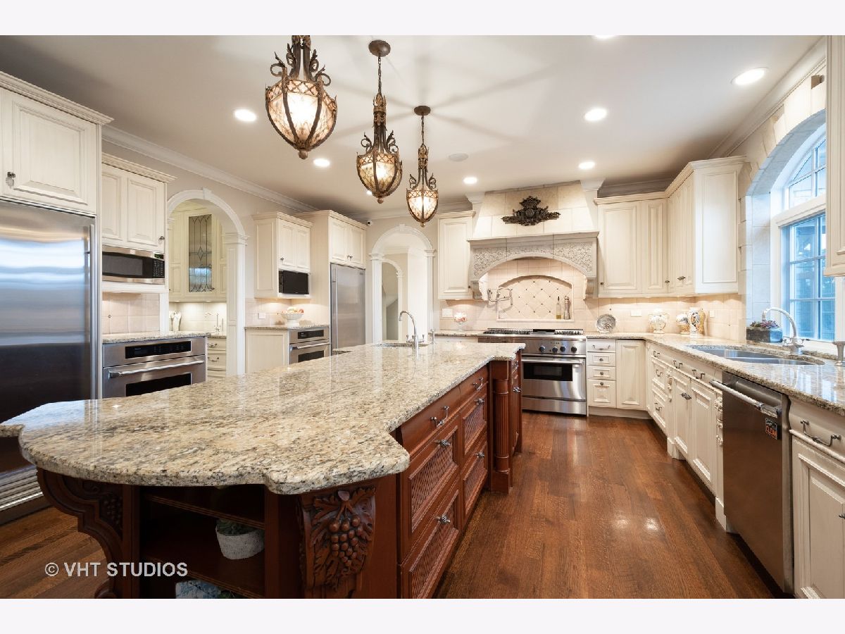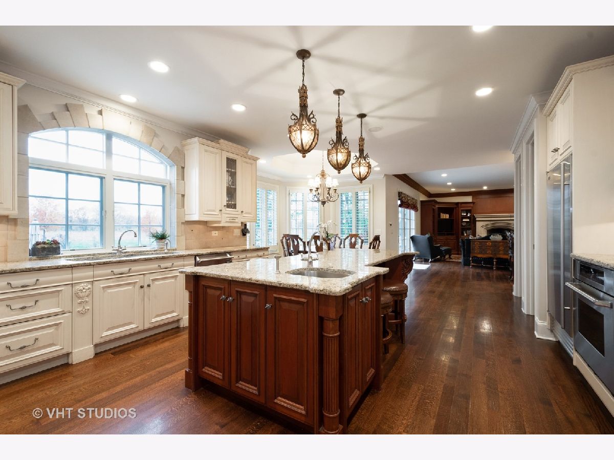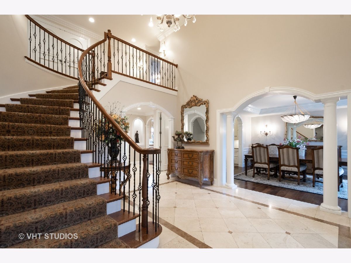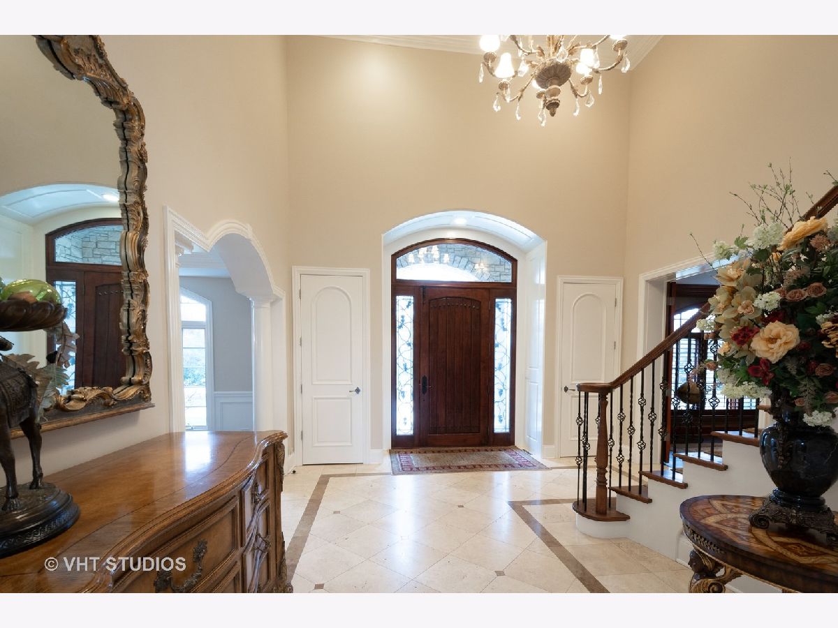 This exquisite, custom designed home is sure to impress the most discerning buyer! Rich architectural millwork & exceptional craftsmanship is found throughout. Situated on a professionally landscaped acre the brick circular paver drive leads you to the front entrance. A dramatic 2 story Foyer with curved wrought iron staircase is flanked by the Dining Room & impressive stately Office with glass french doors & fireplace, next up is the coffered ceiling Living Room with arched entries, built in niches, fireplace & a wall of windows. A Serene 1st floor Master is enhanced by the fireplace & the NEW breathtaking luxurious Spa Bathroom with stunning steel doors allowing you to view the beautiful claw foot tub & chandelier, heated marble floors, dual head steam shower, separate vanities & 2 custom fitted walk in closets. Be your own Chef in this gourmet Kitchen with center island, generous eating area, top of the line appliances including a Thermador 6 burner stove, pot filler, 2 additional ovens, full sized refrigerator/full sized freezer, 3 dishwashers and walk in pantry! A built-in wet bar is conveniently part of the open Family Room w/built-in shelving surrounding the fireplace along with gorgeous views and access to the expansive Outdoor Oasis! This multi-tiered patio is an entertainer's dream and includes a newer Outdoor Kitchen, several seating/eating areas and a crowd-pleasing fire pit area surrounded by the most beautiful landscaping overlooking acres of open space. Not just 1 but 2 powder rooms and a nicely appointed laundry/mud room with an abundance of built-ins complete the 1st floor. The 2nd floor is just as impressive! Count them, 5 additional Bedrooms all with Walk-In Closets, 4 En-suites and another Laundry area. There is even a Bonus Room just next to the guest suite! The lower level has something for everyone! A Media Room, Exercise Room, English windows in the Game area, an additional Recreation area, another Bathroom and Storage galore with convenient stairs leading up to the 3-car attached garage. This home backs to open land owned by Libertyville Township that will not be built on & walking trails that lead to Oak Grove School. There is truly so much to this home. Please ask for the additional list of features that include the newer updates ie: Roof, HVAC & water heaters.