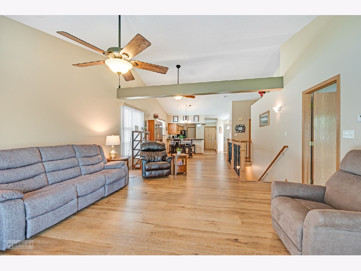 Welcome to your charming 2-Bedroom, 2-Bath Ranch Home.......... This bright and airy ranch-style home features vaulted ceilings and an abundance of natural light, as well as a gorgeous open rail staircase with wrought iron spindles creating an open and welcoming atmosphere. Enjoy the warmth and easy maintenance of wood laminate flooring throughout. With two spacious bedrooms and two full baths, this home offers both comfort and convenience - perfect for relaxing or entertaining. The kitchen is both stylish and functional, featuring abundant cabinet storage, sleek quartz countertops, a black appliance package (stove and dishwasher updated in 2020), and a generously sized pantry. The primary en-suite offers comfort and privacy with new carpet (2020), a spacious walk-in closet, and a bathroom equipped with a convenient walk-in shower. The second bedroom is located on the opposite side of the home for added privacy and includes its own full bathroom-perfect for guests or roommates. Step outside to enjoy a nicely sized fenced yard and a concrete patio-perfect for entertaining, gardening, or relaxing in your own outdoor space. The partially finished basement adds even more functionality, featuring a third bedroom, laundry area with utility sink (washer and dryer 2021), and plenty of open space to finish to your liking or use for extra storage. Major mechanicals have been recently updated, including the HVAC system (2019), water heater, sump pump, and ejector pump-all replaced within the last year. If that was not enough your new home also has all new windows (2023)! Whether you're enjoying a peaceful night in or entertaining friends and family, this well-maintained home has everything you need.