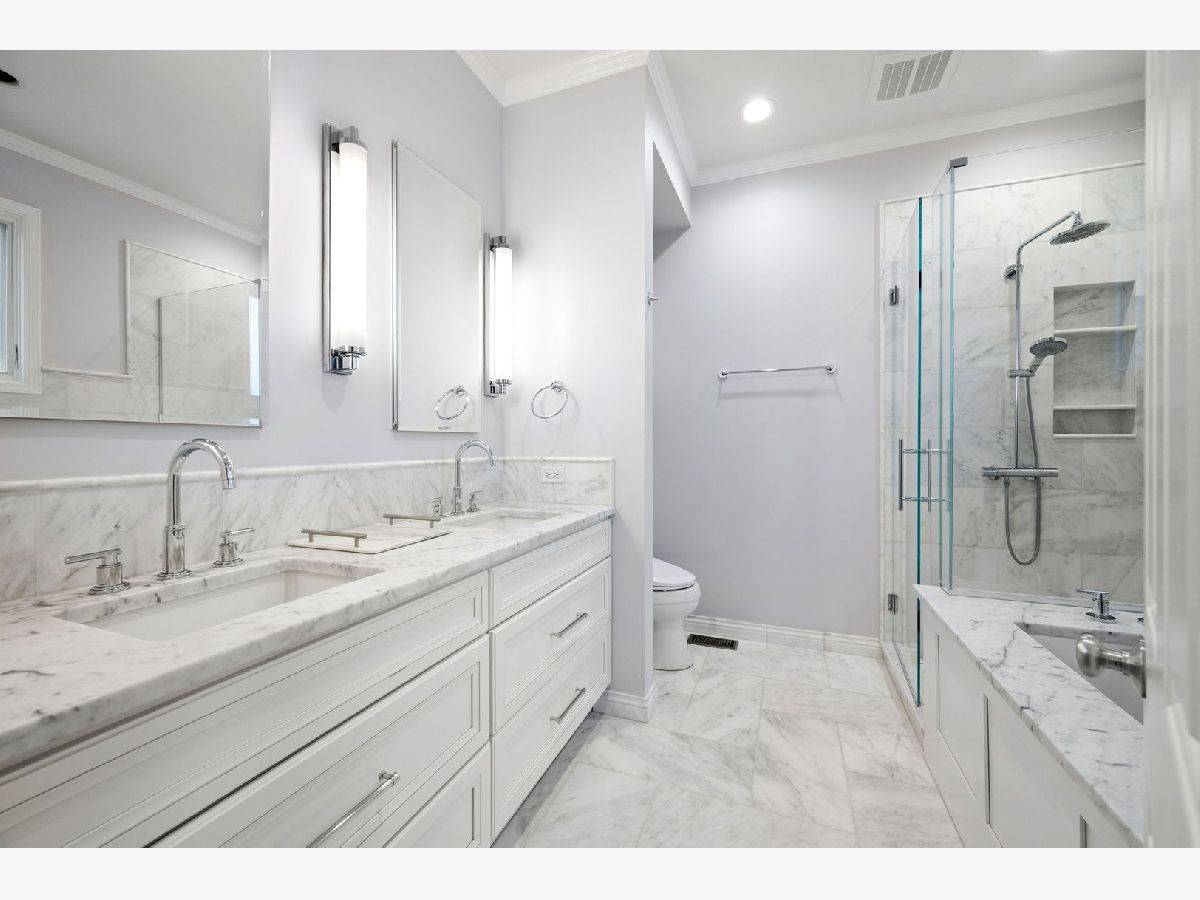 Welcome to this stunning 3-bedroom, 2.5-bathroom duplex down in the heart of East Rogers Park-just one block from the lakefront and the scenic Lakefront Trail! With an expansive 2,700 sq. ft. layout, this home offers the perfect blend of modern updates and classic charm. Step inside to find hardwood floors throughout and soaring high ceilings that create an airy, open feel. The first floor will welcome you into the entryway near the dining room that overlooks the living room on the lower floor with double height ceilings and windows that bring in tons of natural light. The primary bedroom is on the first floor and boast a huge walk in closet and a luxurious en-suite bathroom with high end finishes including honed marble and designed fixtures the create a spa like experience. The powder room on this floor is perfect for guests while you are entertaining. The freshly updated chef's kitchen boasts sleek cabinetry, stainless steel appliances, and ample counter space and tons of storage. A family room off the kitchen creates an open concept living, perfect for cooking and entertaining! The lower floor is a true retreat with a living room, a perfect retreat for relaxation. The lower floor also boasts extra space perfect for a home office, workout equipment, or cozy corner for reading. The second full bath on the floor was not overlooked in the design with marble finishes and white subway tile shower surround. Also on this floor are two very large bedrooms great for an office or guest space with walk in closets, laundry room with side-by-side washer/dryer, and a large storage space. Included with this unit are 2 gated parking spots. Did I mention how much storage there is throughout the entire space! Located on a tree-lined, one-way street in a charming, very well-maintained building, this home offers easy access to beaches, parks, various. public transit, and the vibrant local dining scene. Don't miss your chance to own this beautifully updated duplex in one of Chicago's most sought-after lakefront neighborhoods!