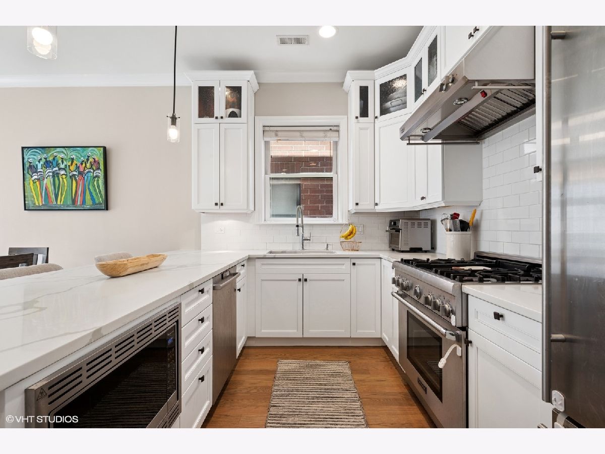 Sprawling 3 bedroom, 2 bath penthouse with private rooftop deck & stunning finishes in the heart of West Loop. Spacious floorplan features an entry foyer with built-in storage bench & coat racks, hardwood floors throughout, open concept kitchen with huge living room & separate dining area, soaring 10' ceilings with crown molding, gas fireplace with custom quartz surround, and massive sun-drenched windows leading out to an oversized south-facing front terrace that serves as an extension of the living space. Contemporary kitchen complete with stainless steel appliances, 42" white shaker cabinetry, quartz countertops & oversized breakfast bar, ideal for entertaining! The interior staircase leads to the perfect office nook (or wet bar for entertaining) with access to your private rooftop deck featuring a new deck & pergola. Large primary suite features a massive walk-in closet, tray ceiling and ensuite bathroom with double vanity, soaking tub & stand-alone shower. Two additional bedrooms, a full 2nd bath & side-by-side washer/dryer complete the unit. Abundant storage & deep closets throughout. Intimate all-brick boutique building in the award winning Skinner School District with attached heated garage parking included. Lastly, step outside and enjoy everything that makes West Loop so desirable. One block to Skinner Elementary and Skinner Park. Steps from Randolph St, Fulton Market, Mariano's, Mary Bartelme Park, Target, Whole Foods, SoHo House and the finest restaurants, cafes, shopping & nightlife that the city has to offer. Easy access to 90/94 and 290 as well as CTA Green/Pink Line. *Please note, this is a walk up*