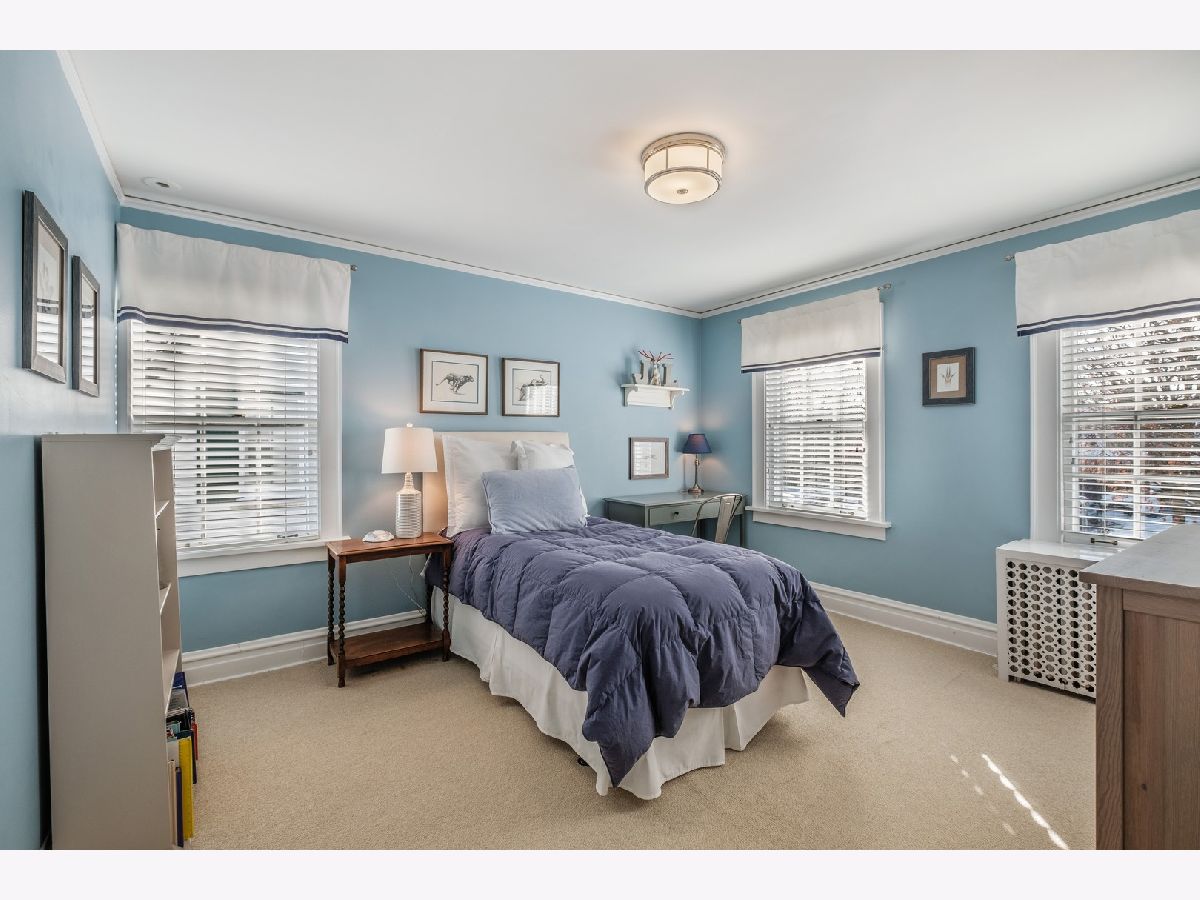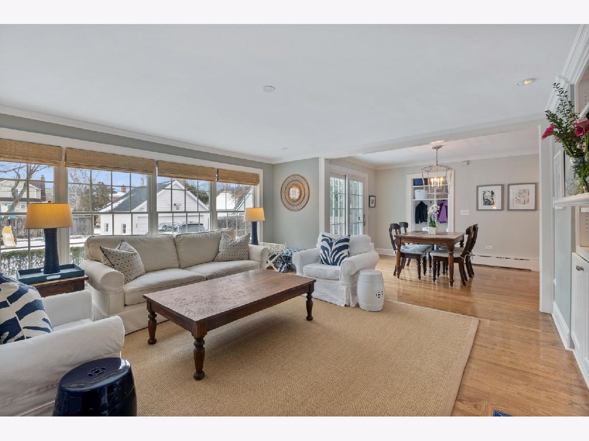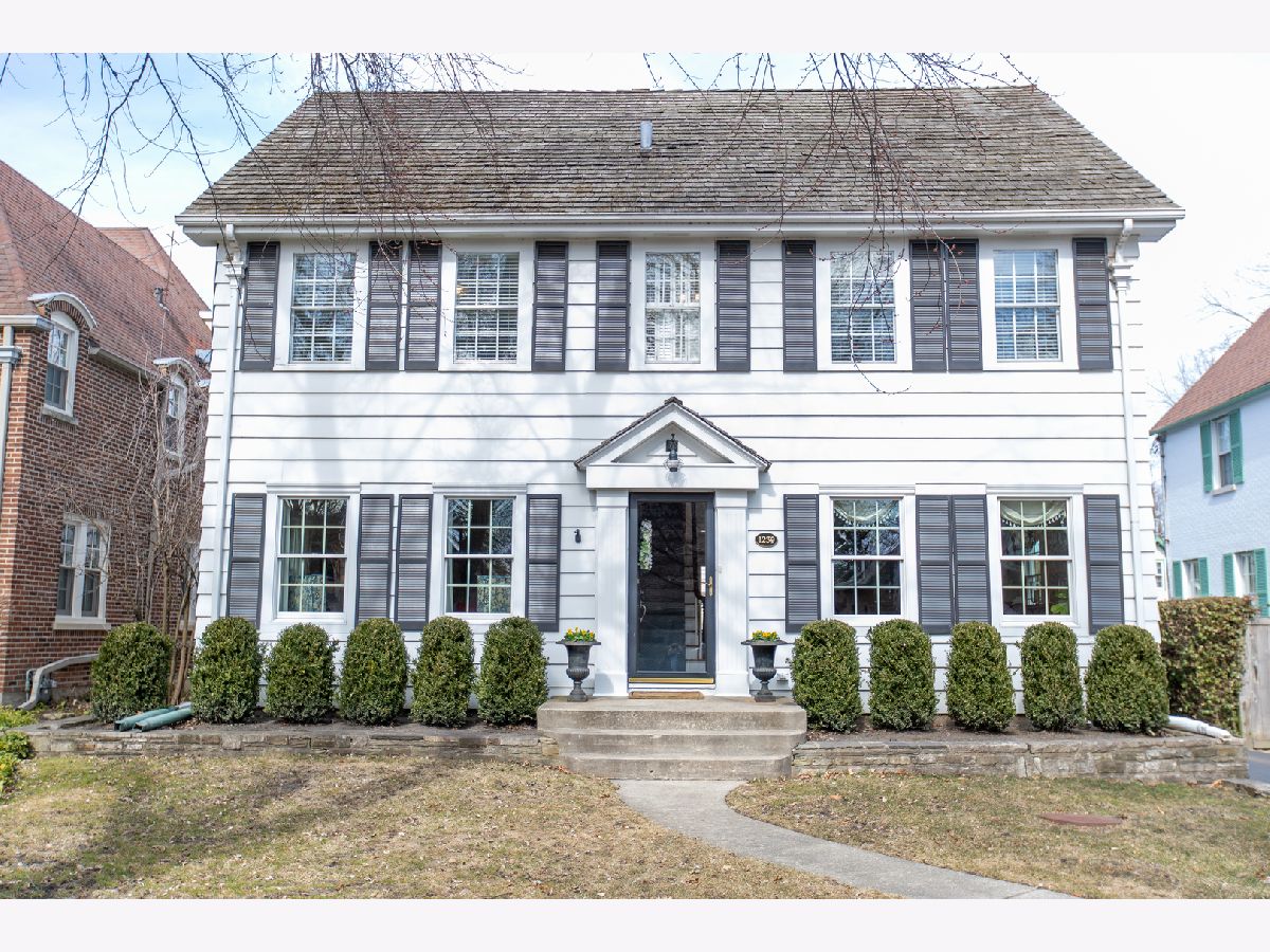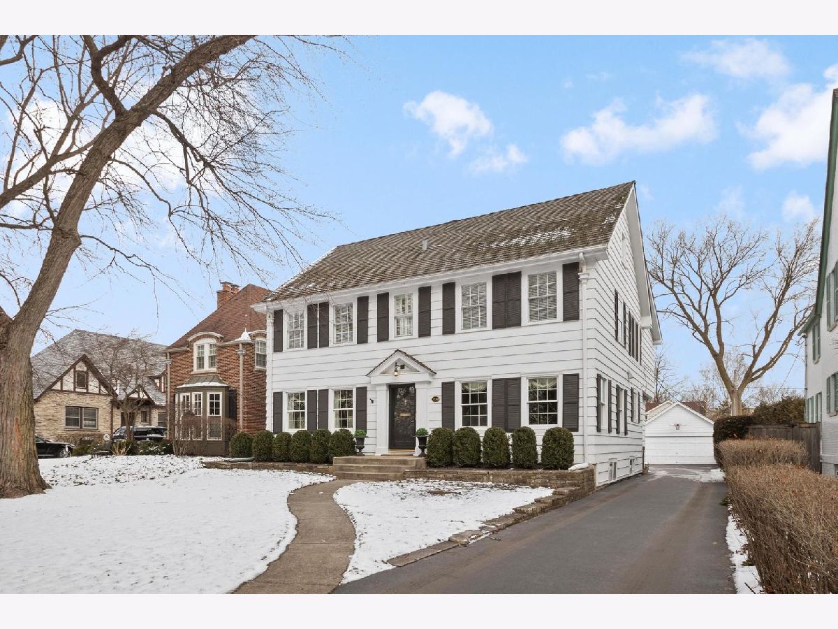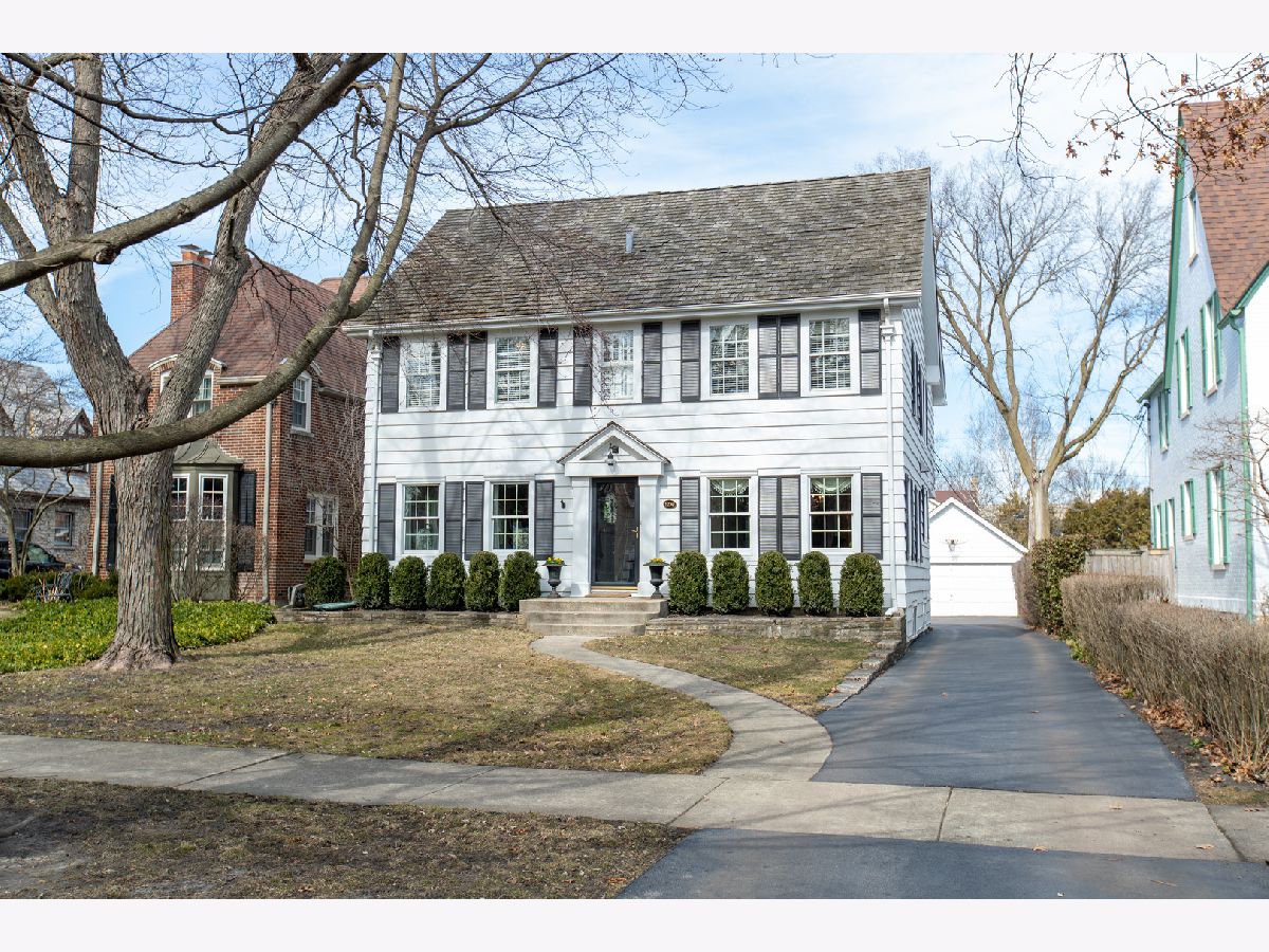 Tree Street perfection! Stunning center entrance colonial features spacious formal living room including fireplace and oversized windows. Formal dining room connects to Chef's kitchen with farm style white sink, high-end appliances, large island and breakfast room with sliding doors out to bluestone patio. Family room is conveniently located off kitchen and boasts beautiful built-ins, double-sided fireplace and wall of windows overlooking the professionally landscaped yard. Mudroom, powder room and pantry complete the first floor. On the second floor are 4 bedrooms, an office and 3 full baths. Master suite complete with walk-in closet and luxurious master bath with heated floors and built-in storage. 2 bedrooms with generous closet space share hall bath and family bedroom number 3 has newly renovated en-suite bath. First and second floors feature hardwood floors throughout. Lower level offers recreation room, play area, separate laundry and storage. Bluestone patio surrounded by boxwoods and 2 car detached garage highlight the grounds. Ideally located within walking distance to all 3 grade schools, town, parks and park district facilities.