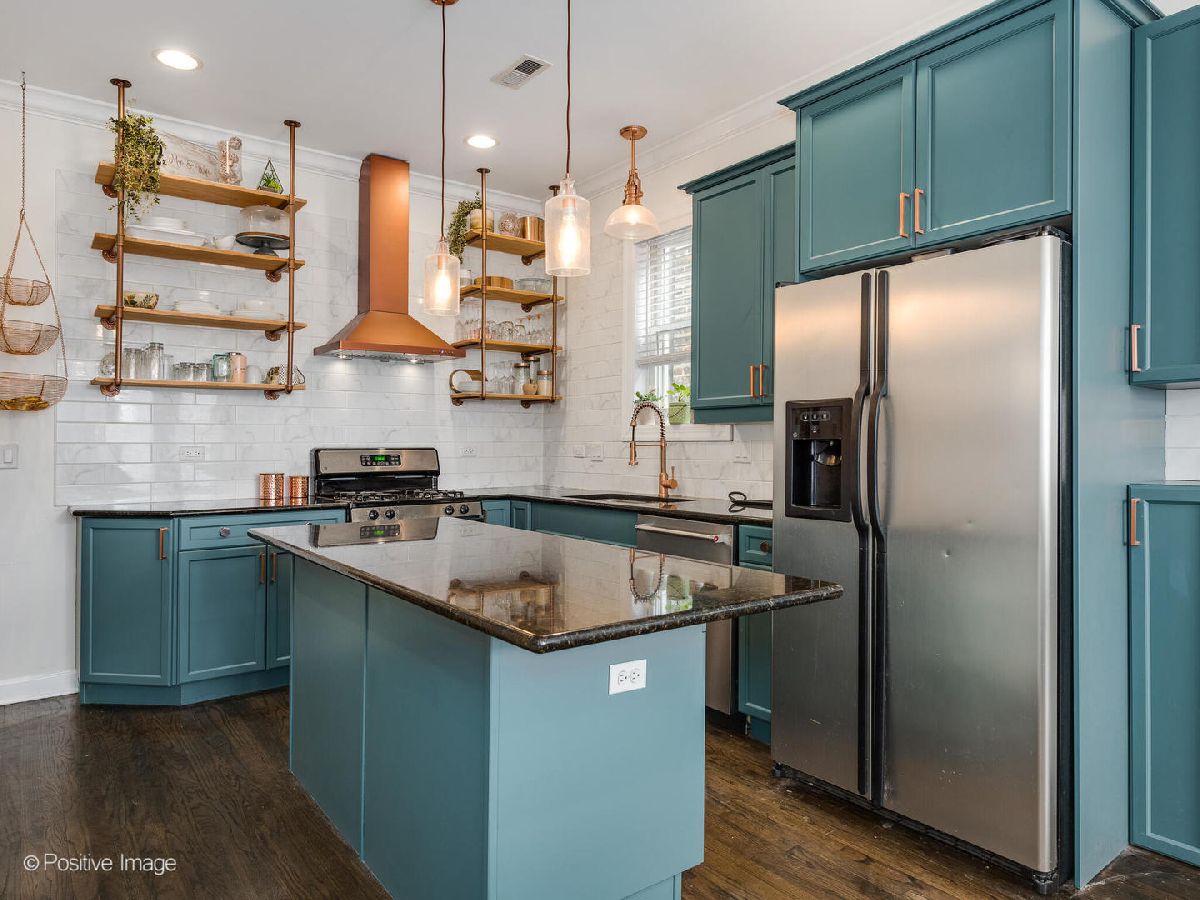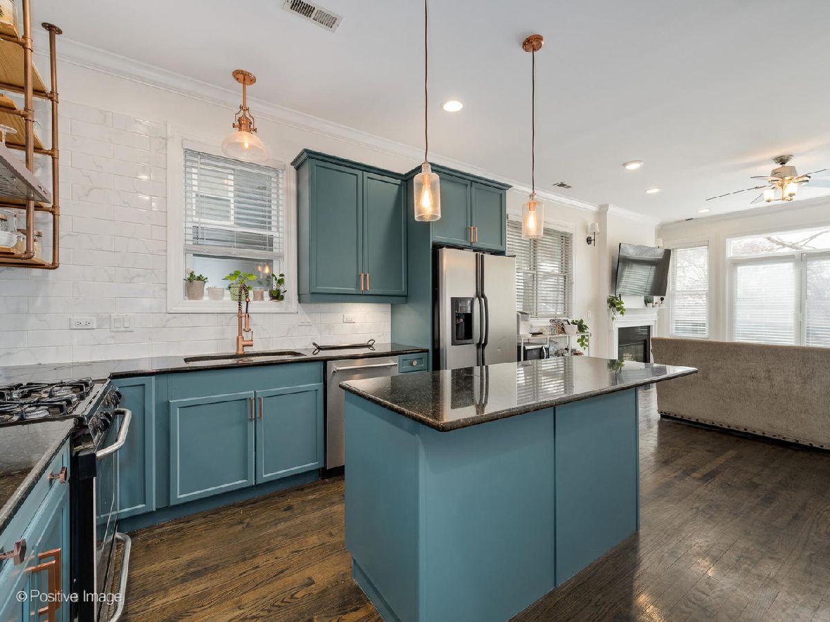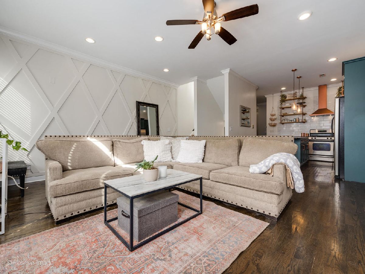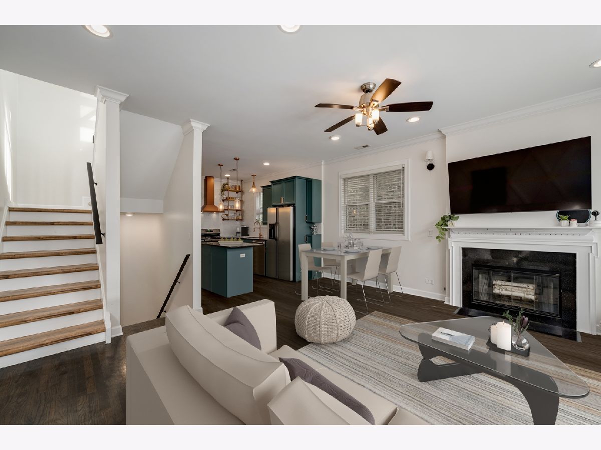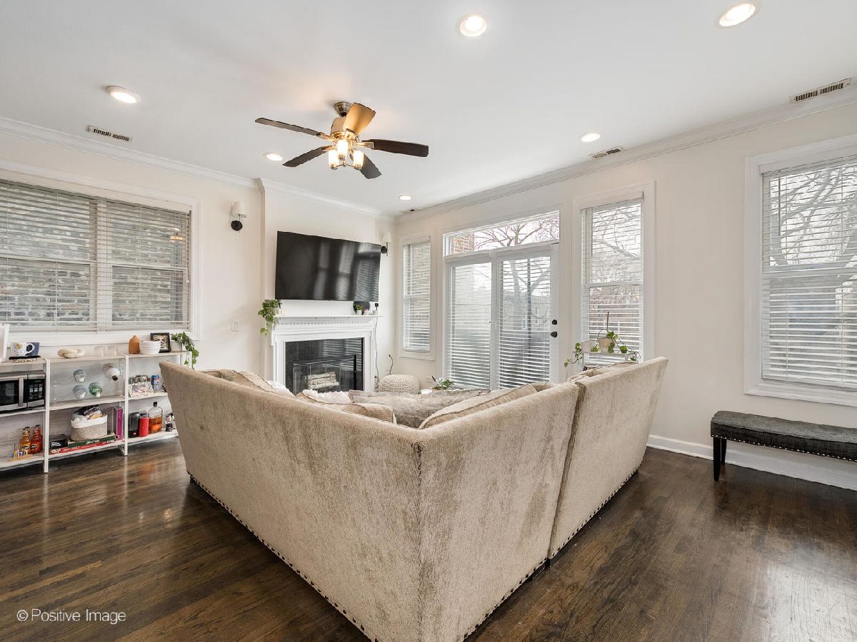 Beautifully updated 2 bedroom, 2 bathroom TOP FLOOR condo in East Humboldt Park with an amazing roof deck and skyline views! The open kitchen and living room layout is perfect for entertaining; the updated kitchen has all stainless-steel appliances, gorgeous porcelain subway tiles all the way to the ceiling, custom open shelving, and a beautiful copper range hood. The extra-wide living room offers a Juliet balcony, a gas fireplace, and a custom feature wall. Down the hall, the primary suite features TWO closets and an updated bathroom with marble countertops and an LED mirror. The second bedroom, which offers additional storage and would be a great guest room or home office, leads to the rear patio. Interior and exclusive access to the rooftop deck with brand new Trex decking and pergola with phenomenal skyline views. One car garage parking and additional storage is included in this beautiful condo home!