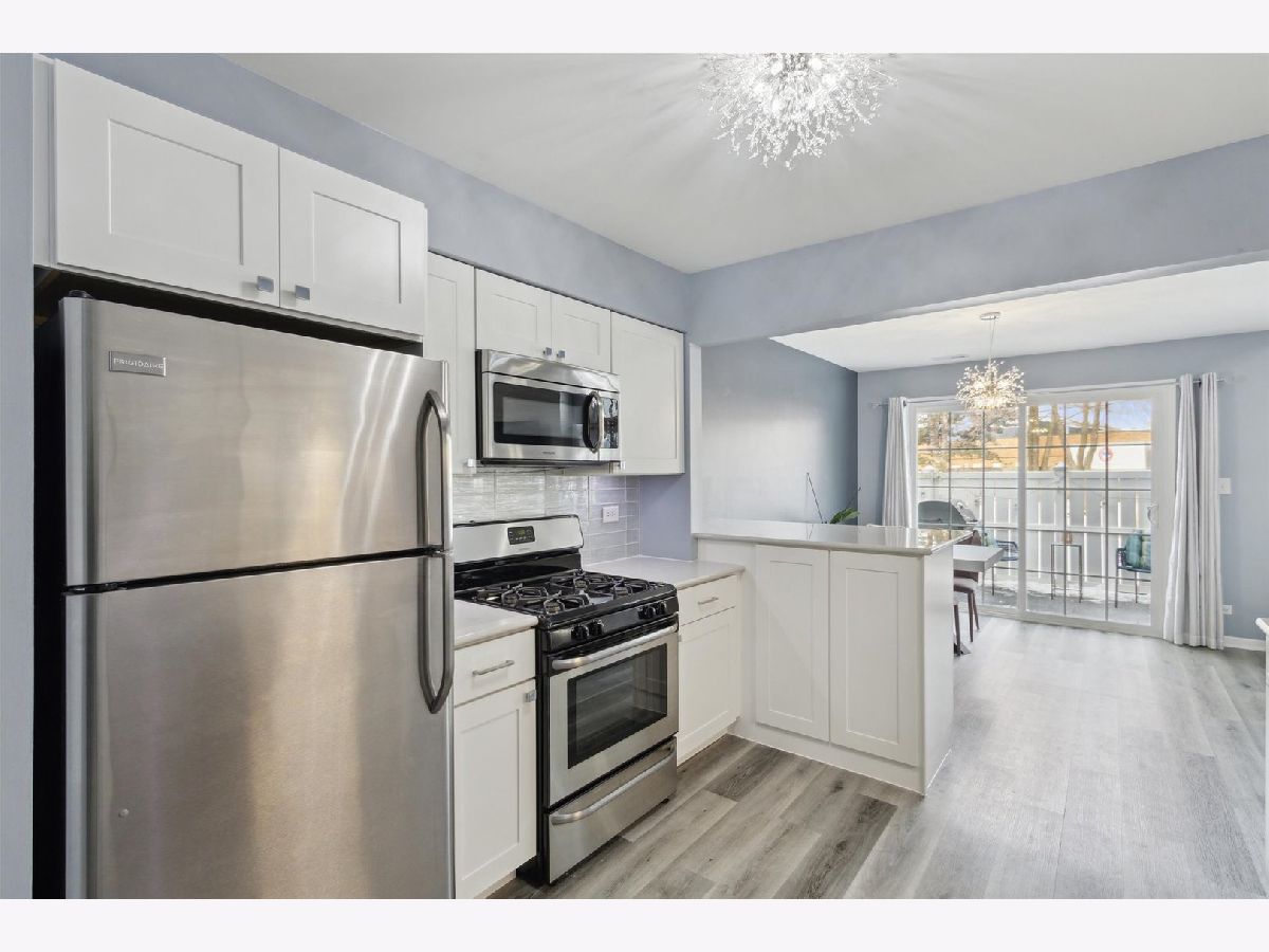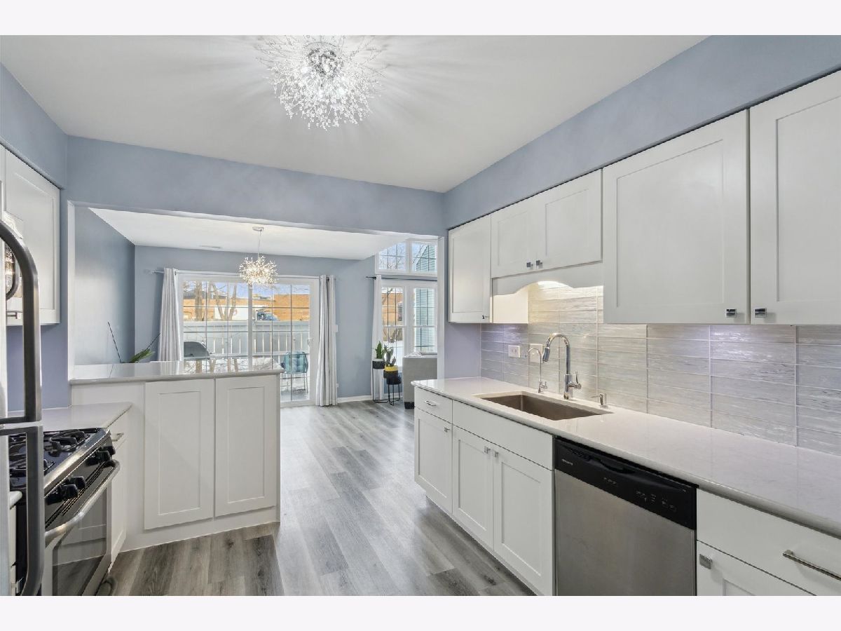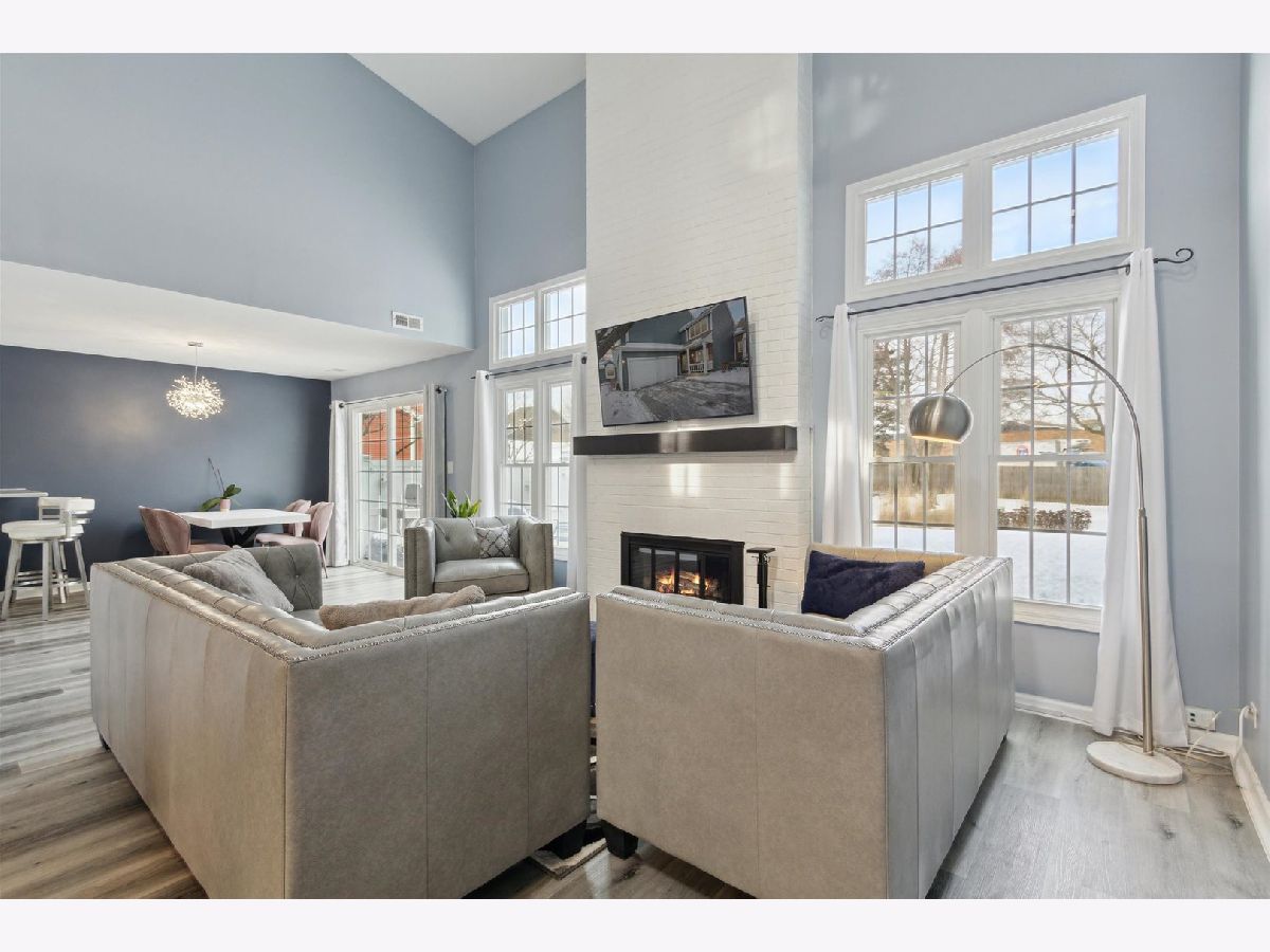 Stepping into this townhome you are greeted by the dramatic 2 story living room filled with natural light and a floor to ceiling brick fireplace. The open floor plan offers great space for entertaining. The newly renovated kitchen has loads of cabinet space with beautiful back splash and quartz countertops. Upstairs you find 2 bedrooms and a spacious loft. Master bed also features a huge walk in closet and newly renovated bath. New roof, siding, windows, furnace and AC all in 2022. Oversized 2 car garage, rare for the area, new opener in 2022. Great location to shopping, dining and expressways! Highly acclaimed schools.