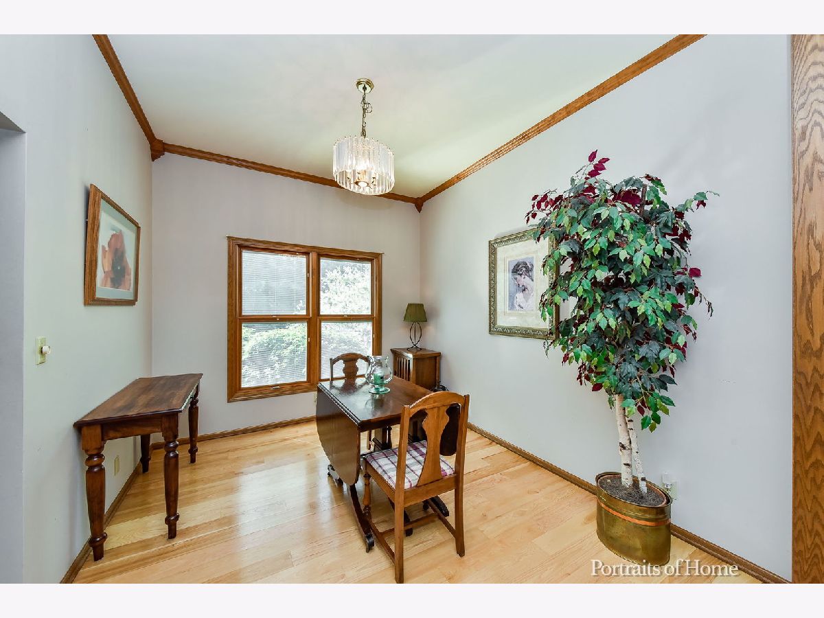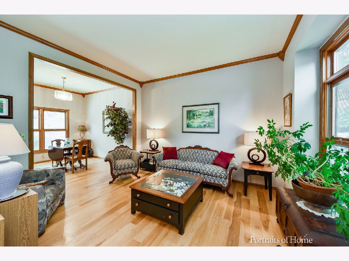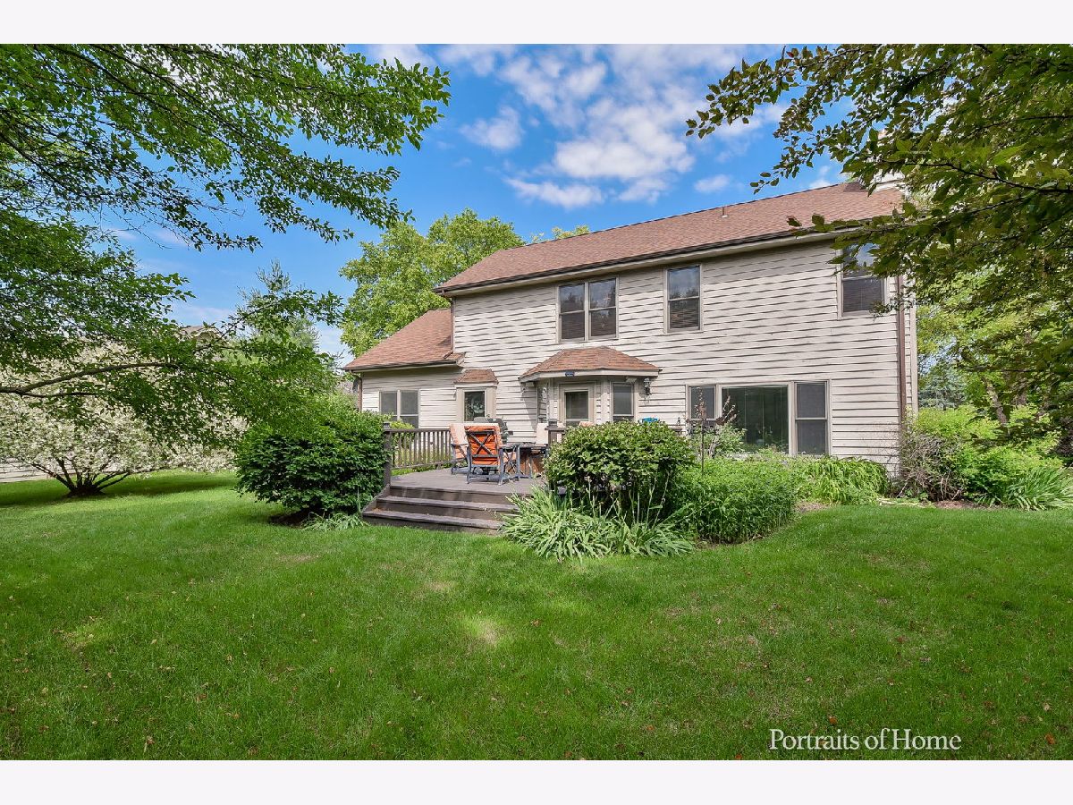 You'll definitely believe in LOVE AT FIRST SIGHT when you gaze upon the OUTSTANDING curb appeal of this Foxpointe 2-story framed by lovely mature trees and landscaping! Now COME ON IN and enjoy the beauty of the genuine hardwood floors that flow throughout the entire home and set the tone that speaks to Pride of Ownership! Lovely foyer opens to comfortable floor plan with bright living room and formal dining room featuring 10' ceilings and crown molding. Cheerful kitchen offers tons of prep space with peninsula breakfast bar, awesome pantry closet and table space too! Adjacent Family room draws you in with it's brick fireplace and custom shelf wall for displaying those items that make your house a HOME. Master Suite presents a tray ceiling, walk-in closet and AMAZING Master Bath with whirlpool tub, double sink vanity, ceramic tile, and a 2-person glass shower! Generous sized bedrooms and closets are sure to please and convenient first floor laundry with shoe nook make organizing easy. Backyard deck overlooks a gorgeous private yard that provides a relaxing retreat - you will be enjoying many serene hours here - and the gas grill stays so you can get started right away! It's easy to recognize the QUALITY of this home including Pella windows w/inset blinds, roof replaced in 2009, remodeled Master Bath and more! Finished room in basement provides extra living space, office, playroom, exercise room - whatever you wish! SUPER Foxpointe location near shopping, restaurants, parks, school and easy Peace Rd access to tollway. You'll be SMITTEN!