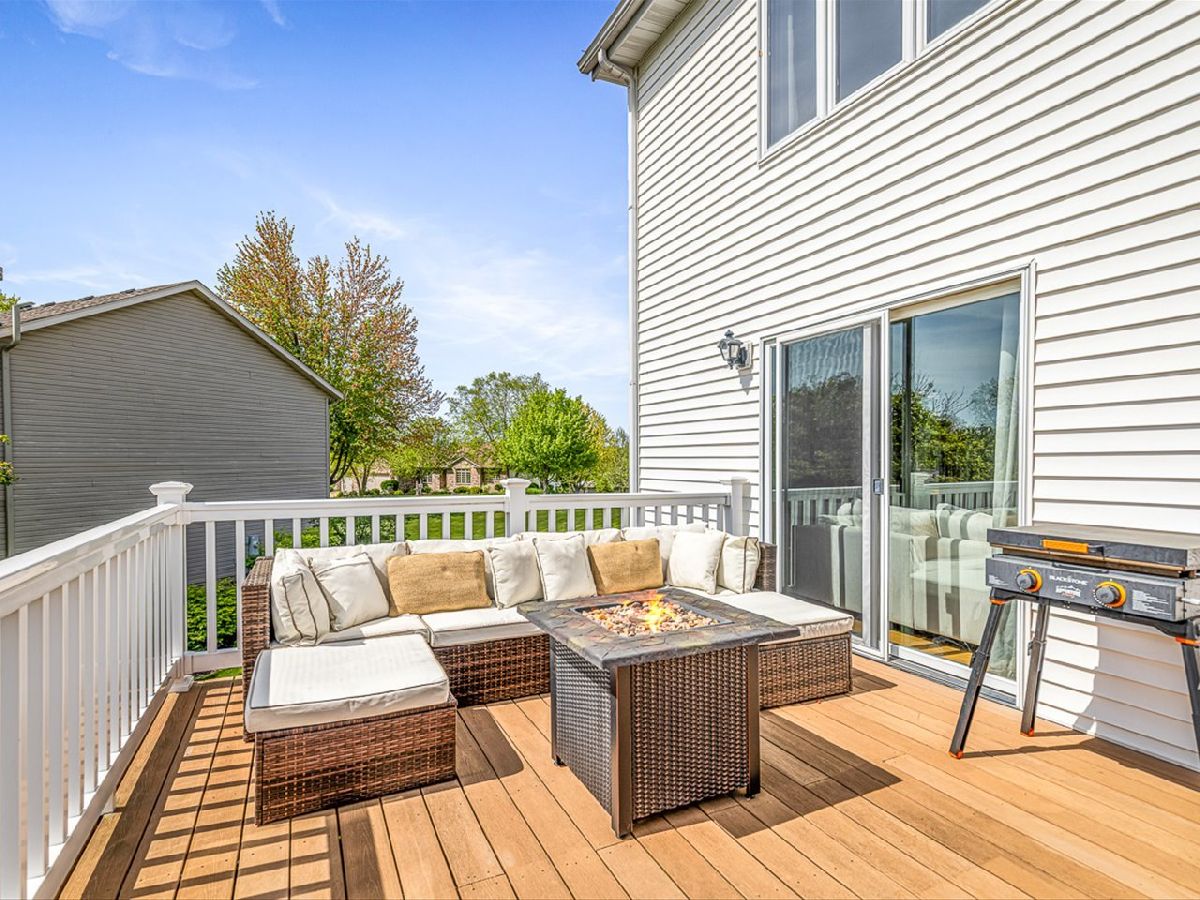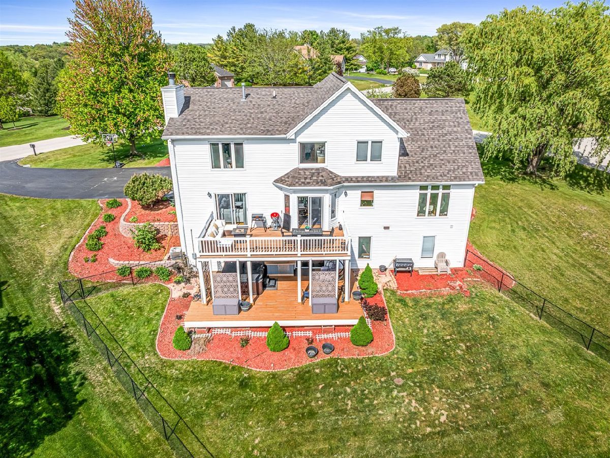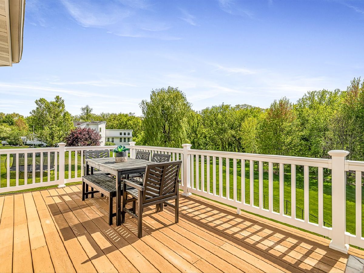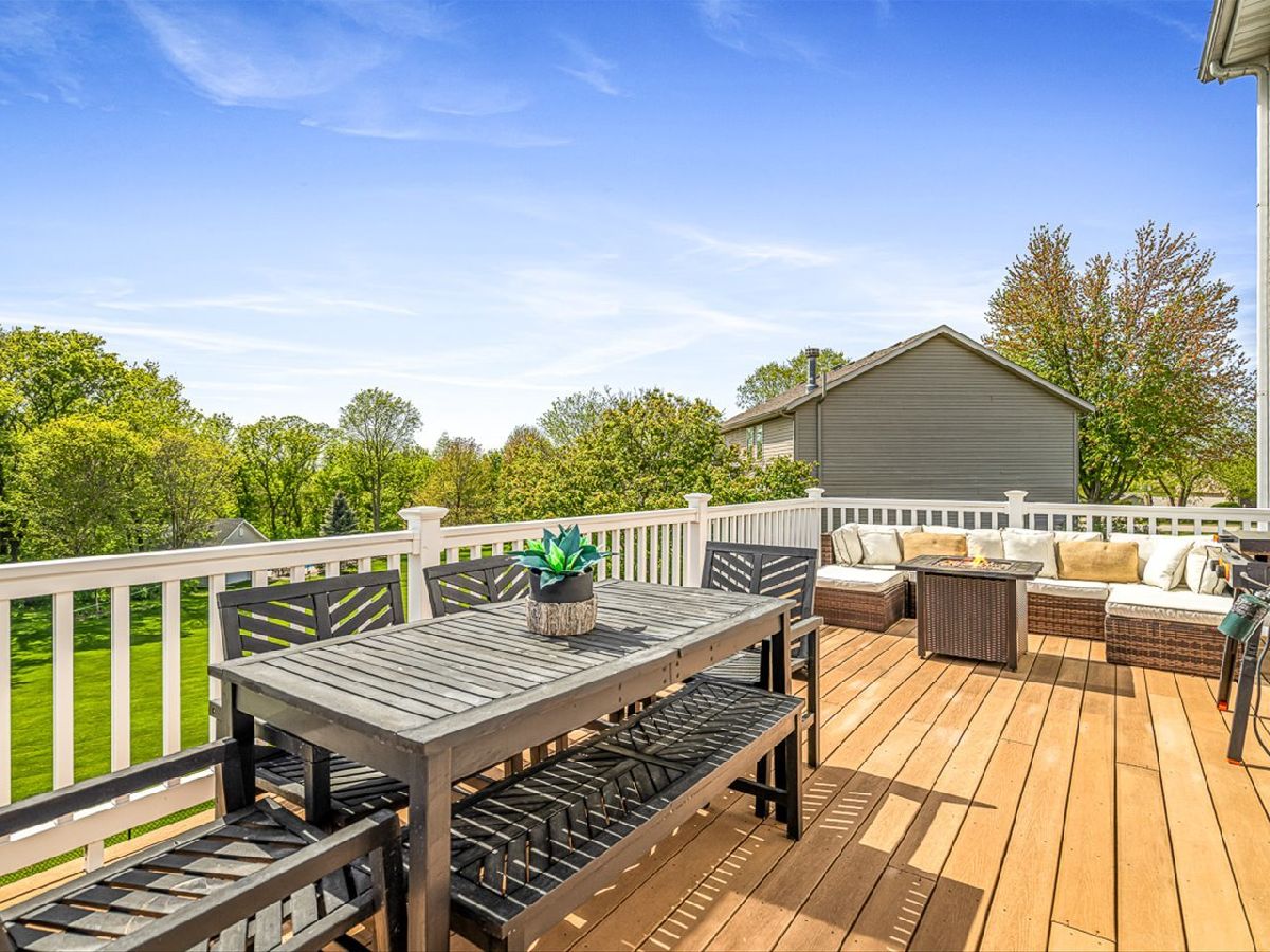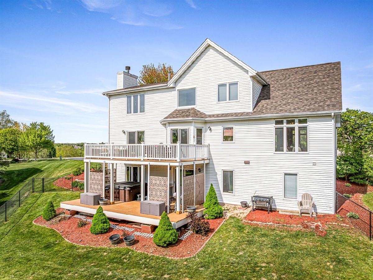 This meticulously maintained 4-bedroom, 3.5-bathroom home offers a seamless blend of comfort, style, and functionality. The formal living room features soaring vaulted ceilings and abundant natural light, creating an inviting space perfect for both everyday living and entertaining. Adjacent to the living area is a formal dining room, ideal for hosting family dinners or special occasions. The main level is highlighted by rich hardwood flooring throughout and a gourmet kitchen with granite countertops, tile backsplash, and stainless steel appliances. A sliding door leads to a composite deck-perfect for outdoor dining or relaxing while enjoying scenic views. The spacious master suite boasts His & Her walk-in closets and a luxurious en-suite bathroom complete with whirlpool tub and updated fixtures. Two additional bedrooms and a full bath round out the upper level. The fully finished lower level extends the living space with a generous family room featuring a gas fireplace, a fourth bedroom with its own full bathroom and walk-in closet, and French doors that open to a covered reinforced deck with a large hot tub. The beautifully landscaped, tree-lined backyard provides a private oasis for relaxation and outdoor entertaining. Additional features include a 3-car garage, reverse osmosis system, water softener, and an irrigation system. Located in a quiet and desirable neighborhood, with convenient access to top-rated schools and major highways, this home has it all.