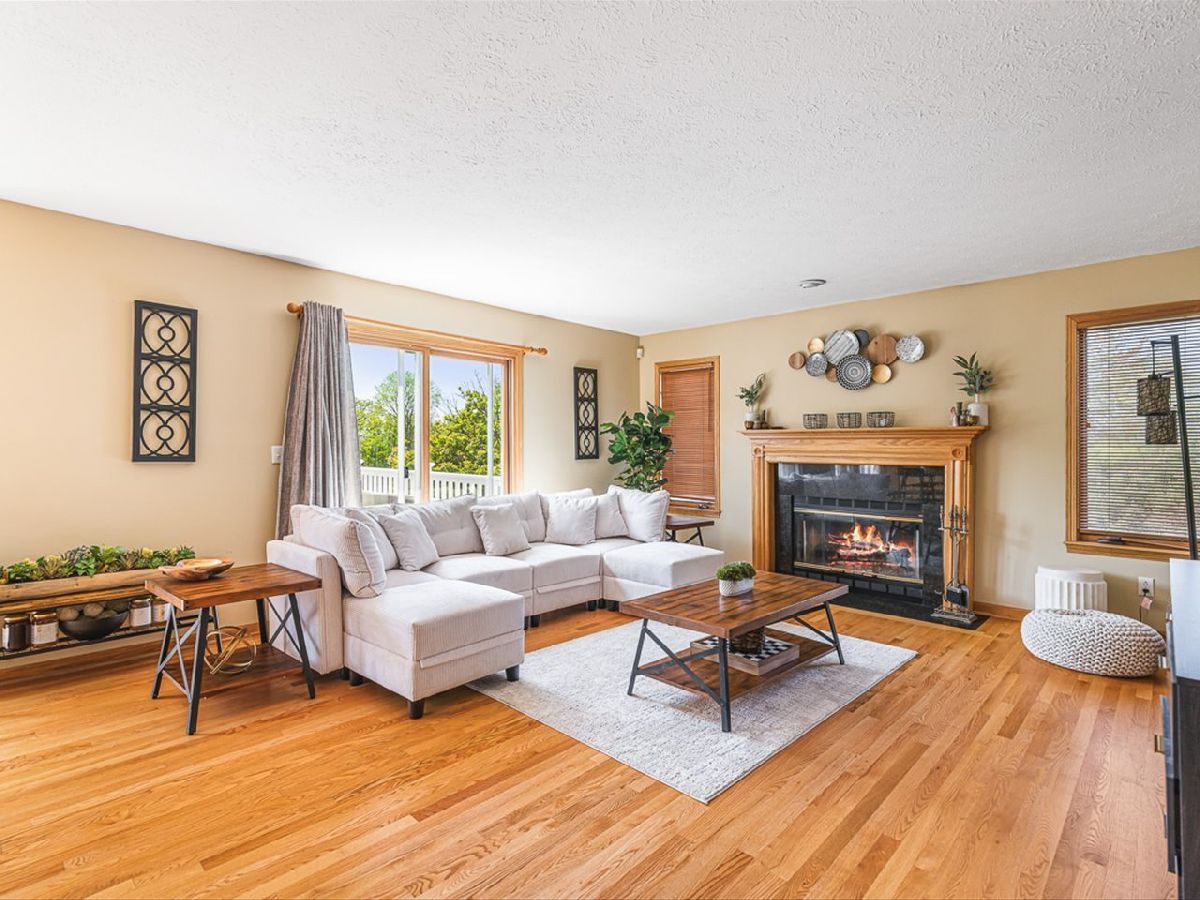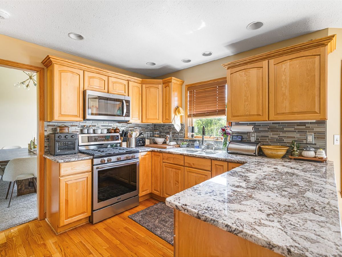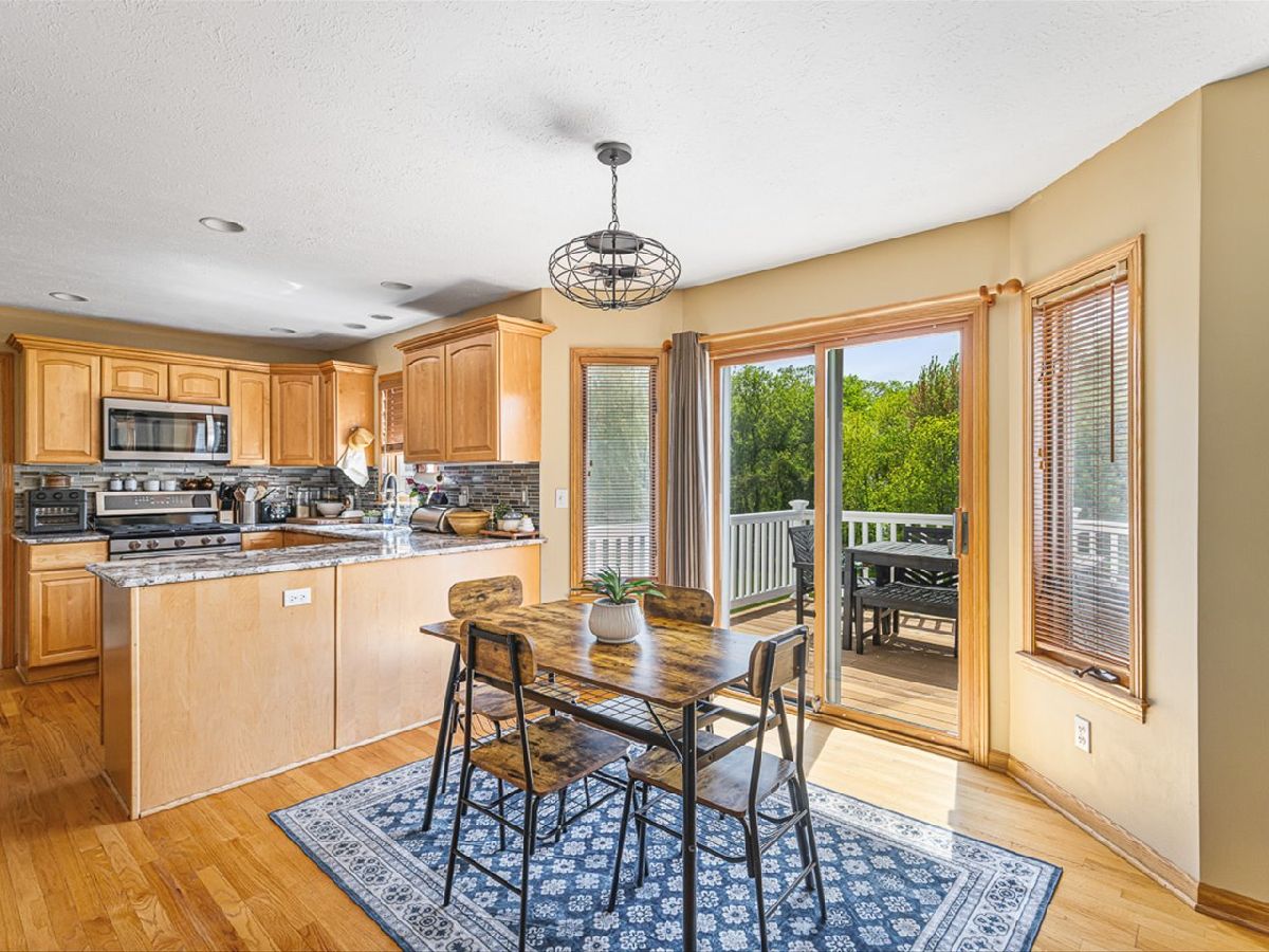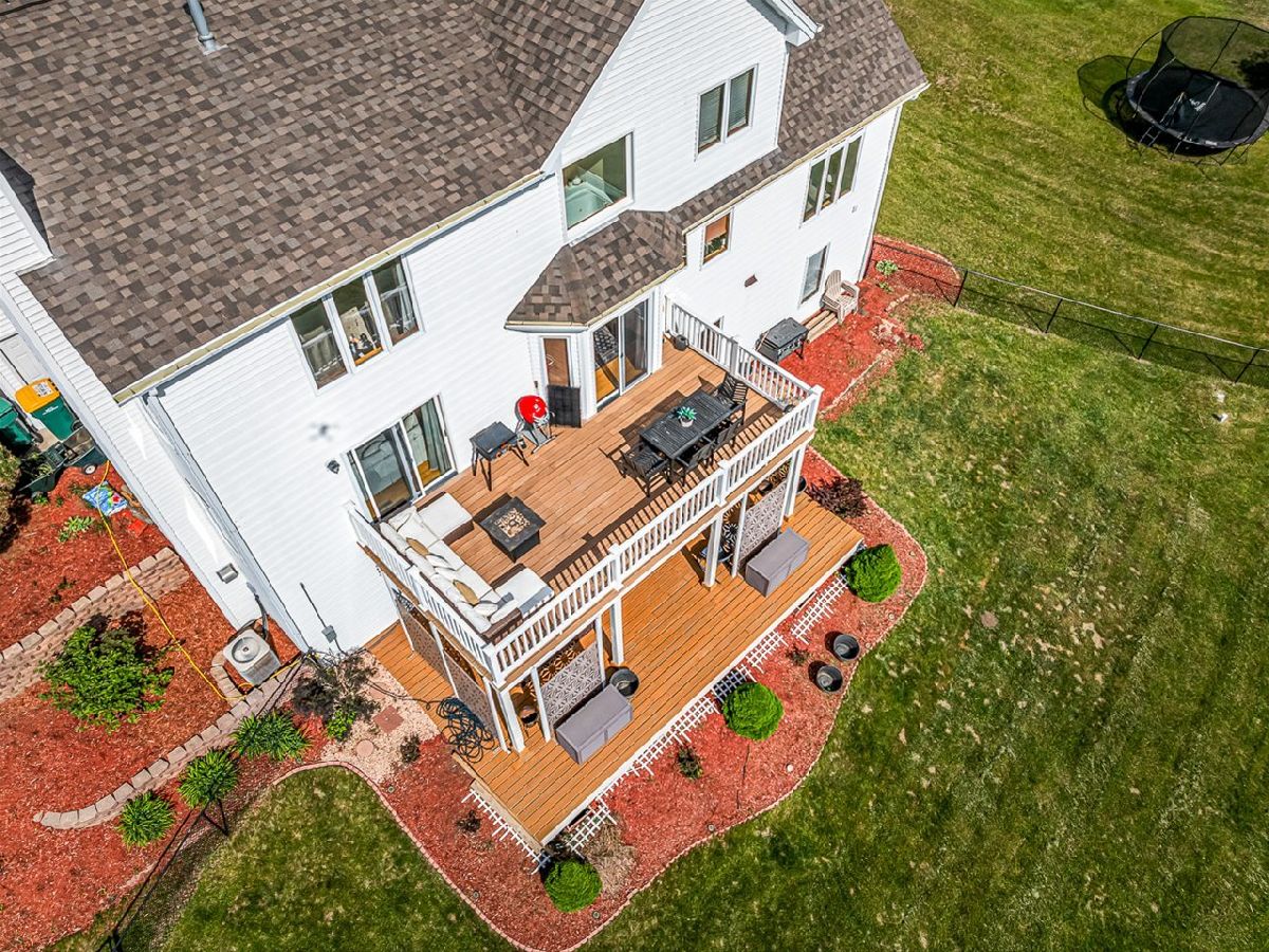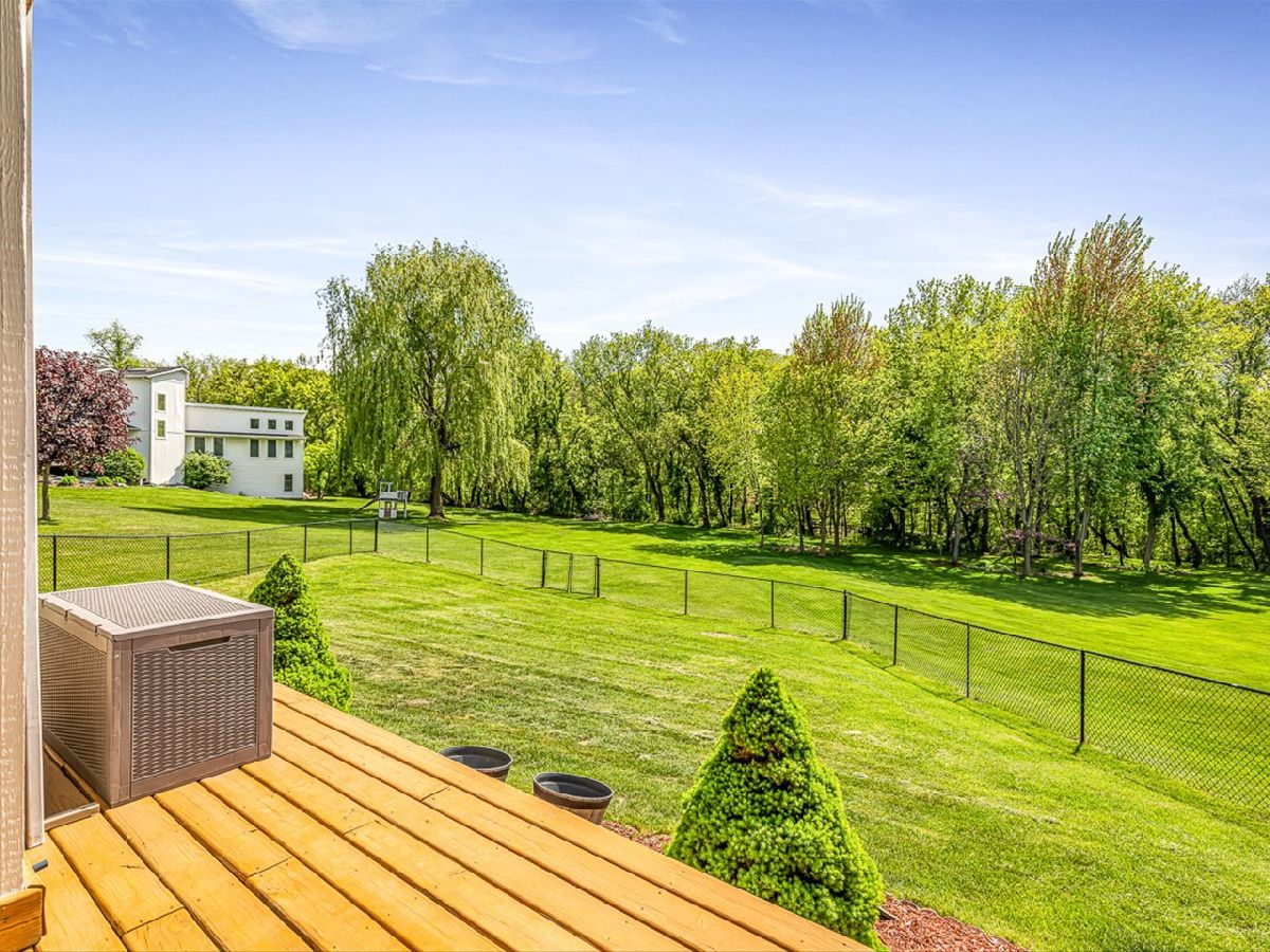 This meticulously maintained 4-bedroom, 3.5-bathroom home offers a seamless blend of comfort, style, and functionality. The formal living room features soaring vaulted ceilings and abundant natural light, creating an inviting space perfect for both everyday living and entertaining. Adjacent to the living area is a formal dining room, ideal for hosting family dinners or special occasions. The main level is highlighted by rich hardwood flooring throughout and a gourmet kitchen with granite countertops, tile backsplash, and stainless steel appliances. A sliding door leads to a composite deck-perfect for outdoor dining or relaxing while enjoying scenic views. The spacious master suite boasts His & Her walk-in closets and a luxurious en-suite bathroom complete with whirlpool tub and updated fixtures. Two additional bedrooms and a full bath round out the upper level. The fully finished lower level extends the living space with a generous family room featuring a gas fireplace, a fourth bedroom with its own full bathroom and walk-in closet, and French doors that open to a covered reinforced deck with a large hot tub. The beautifully landscaped, tree-lined backyard provides a private oasis for relaxation and outdoor entertaining. Additional features include a 3-car garage, reverse osmosis system, water softener, and an irrigation system. Located in a quiet and desirable neighborhood, with convenient access to top-rated schools and major highways, this home has it all.
