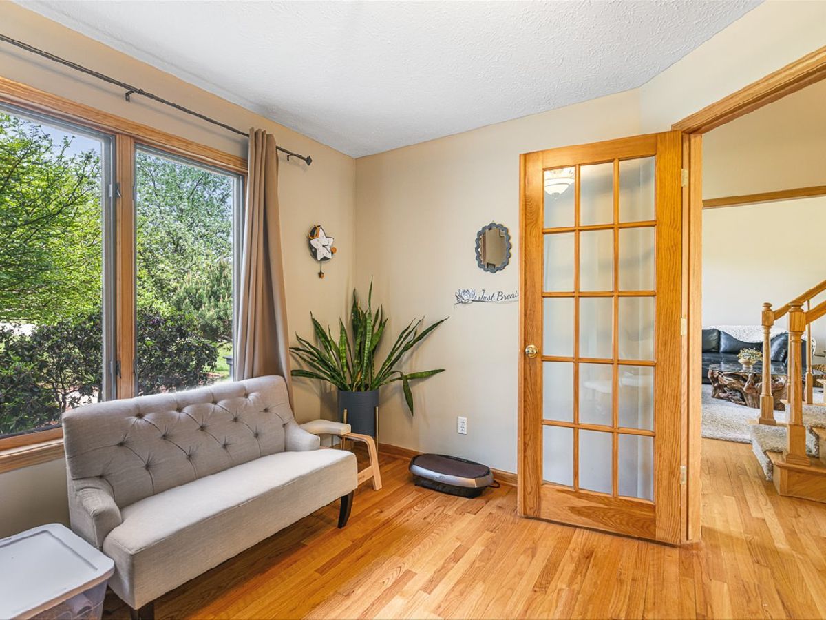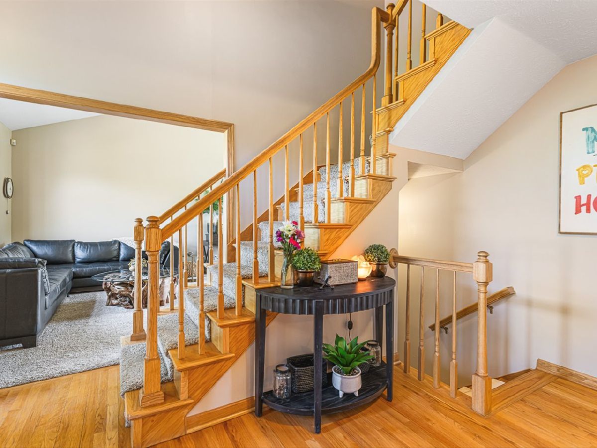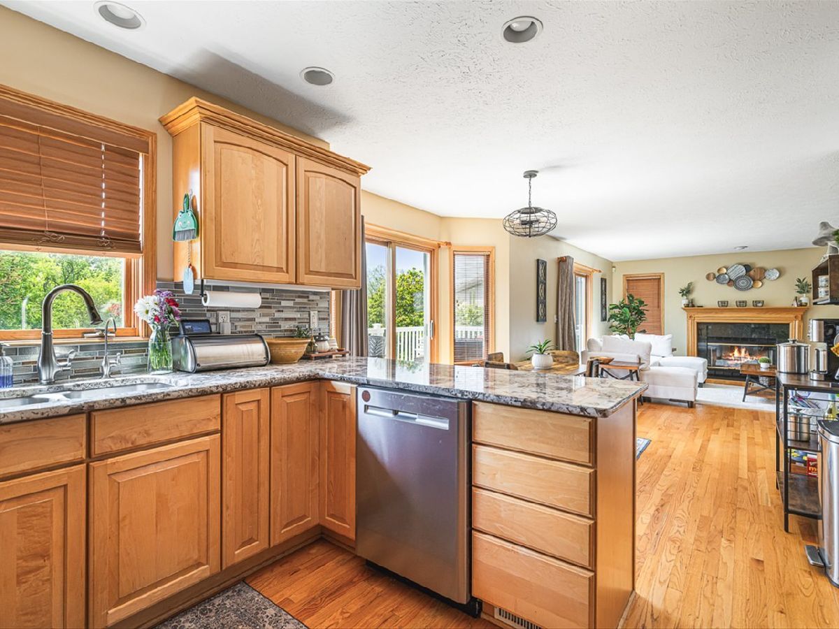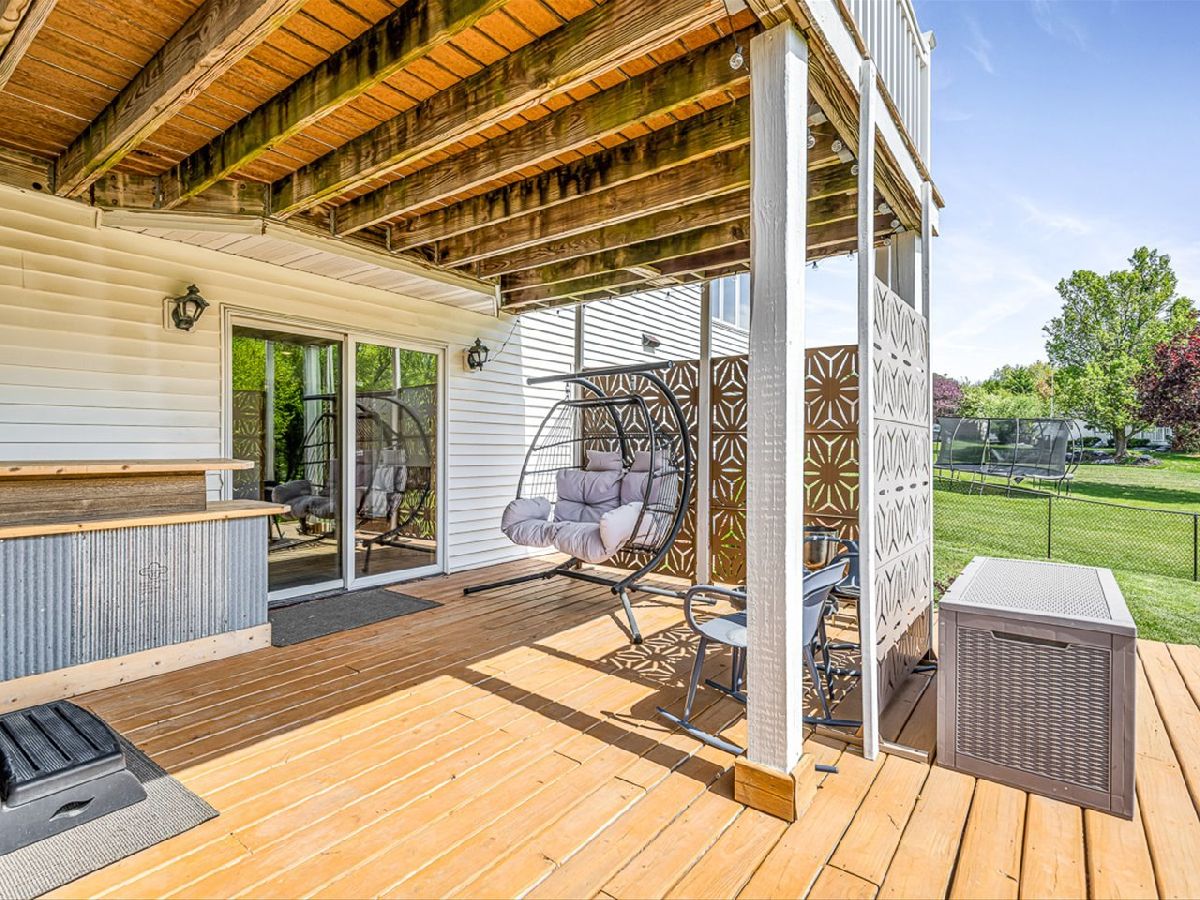 This meticulously maintained 4-bedroom, 3.5-bathroom home offers a seamless blend of comfort, style, and functionality. The formal living room features soaring vaulted ceilings and abundant natural light, creating an inviting space perfect for both everyday living and entertaining. Adjacent to the living area is a formal dining room, ideal for hosting family dinners or special occasions. The main level is highlighted by rich hardwood flooring throughout and a gourmet kitchen with granite countertops, tile backsplash, and stainless steel appliances. A sliding door leads to a composite deck-perfect for outdoor dining or relaxing while enjoying scenic views. The spacious master suite boasts His & Her walk-in closets and a luxurious en-suite bathroom complete with whirlpool tub and updated fixtures. Two additional bedrooms and a full bath round out the upper level. The fully finished lower level extends the living space with a generous family room featuring a gas fireplace, a fourth bedroom with its own full bathroom and walk-in closet, and French doors that open to a covered reinforced deck with a large hot tub. The beautifully landscaped, tree-lined backyard provides a private oasis for relaxation and outdoor entertaining. Additional features include a 3-car garage, reverse osmosis system, water softener, and an irrigation system. Located in a quiet and desirable neighborhood, with convenient access to top-rated schools and major highways, this home has it all.