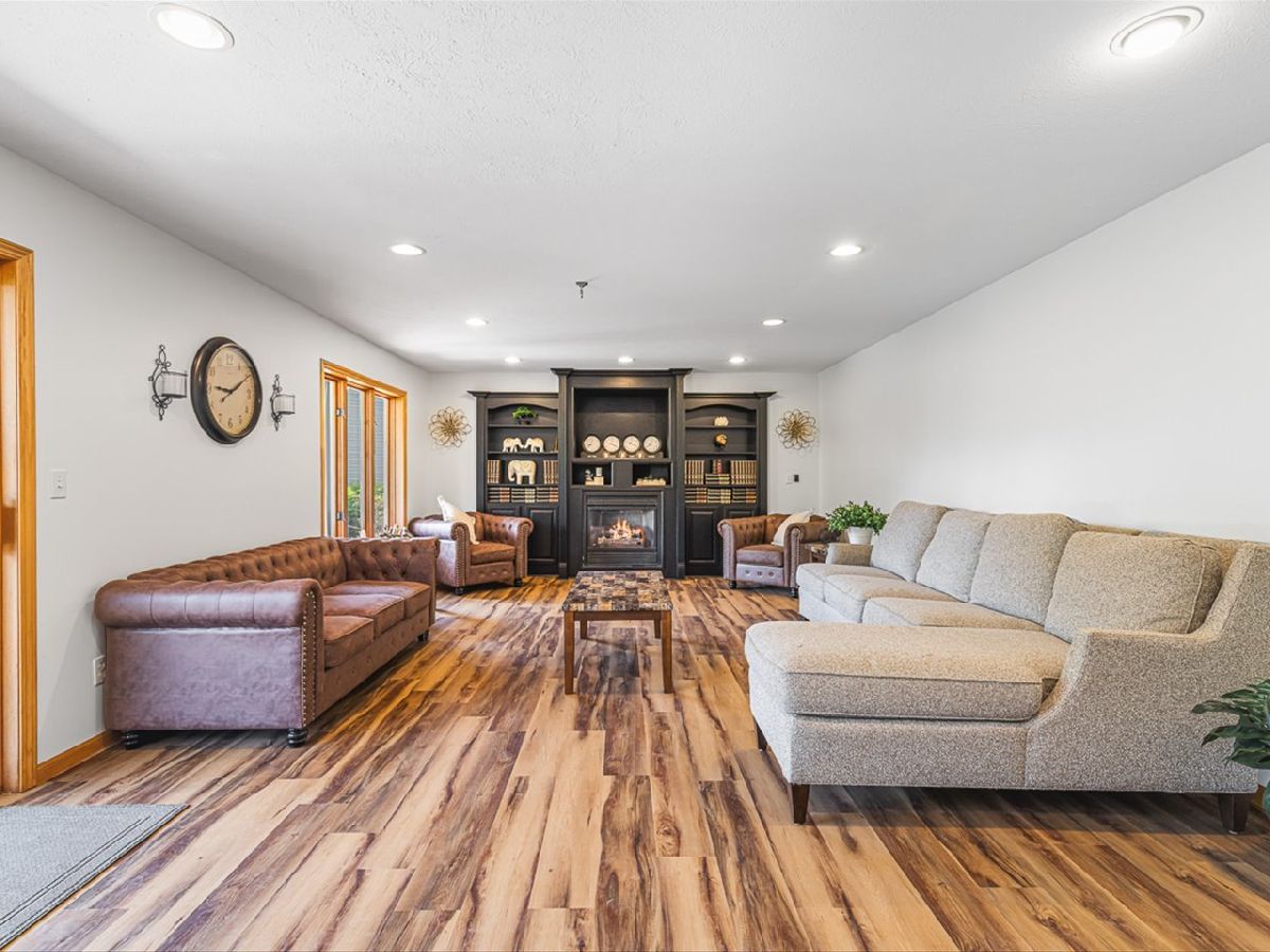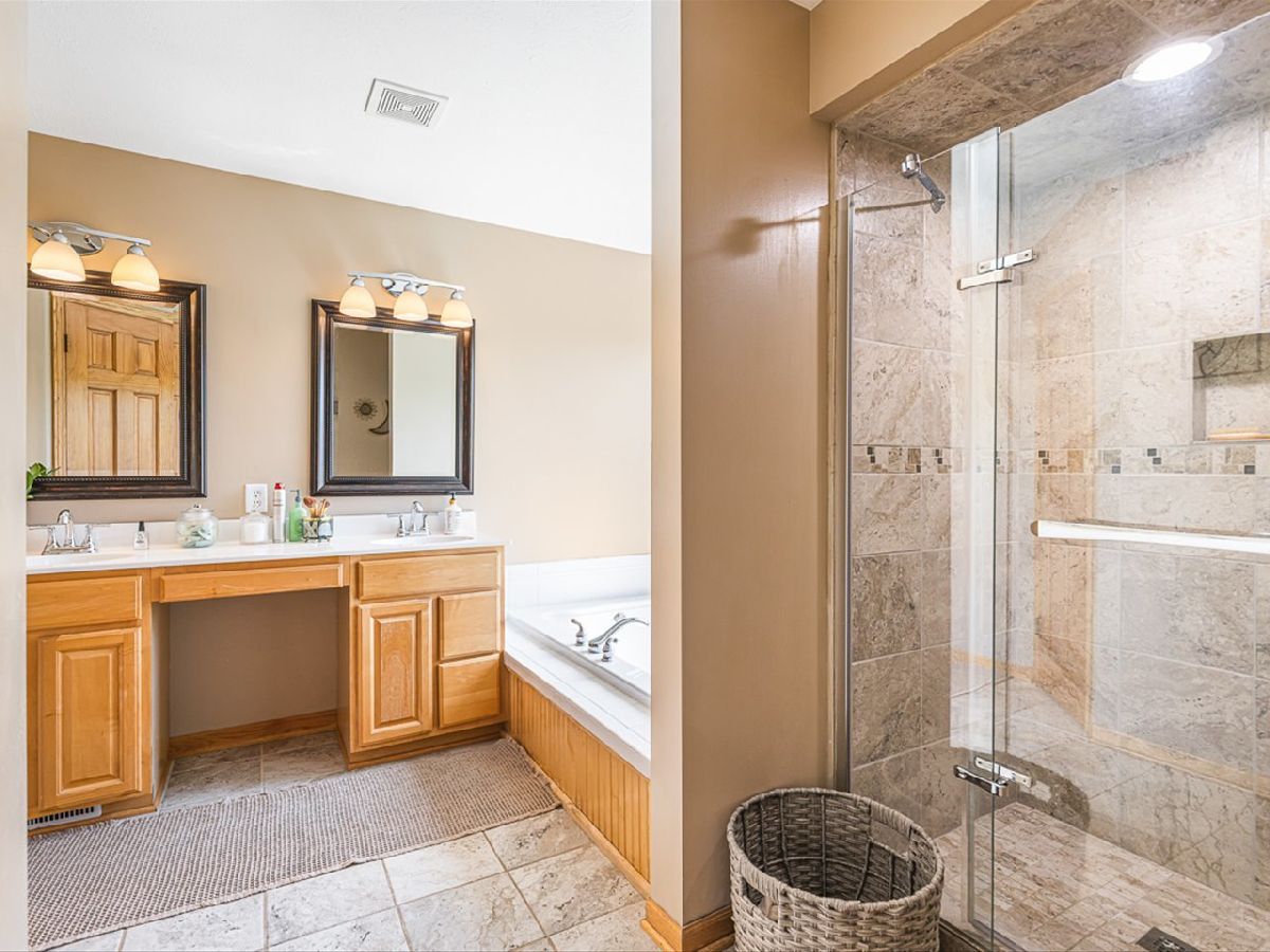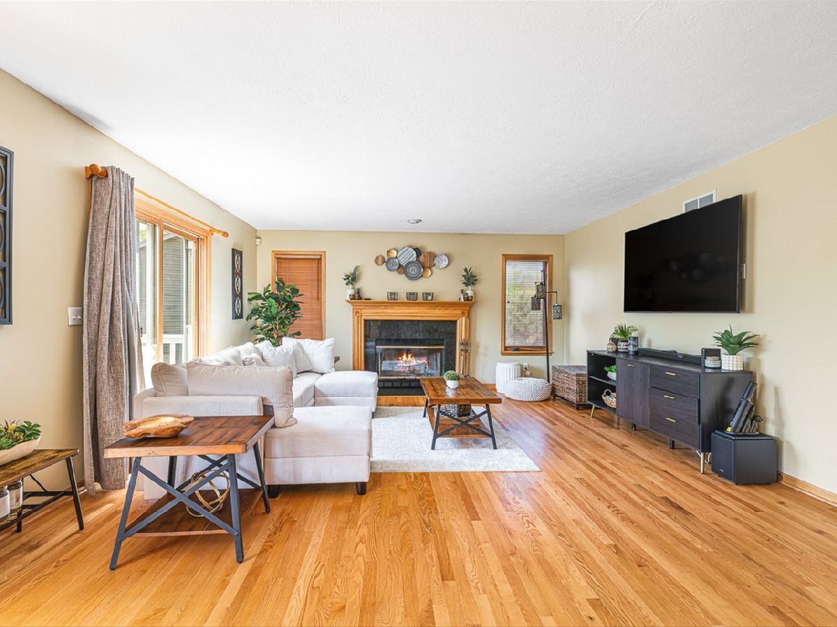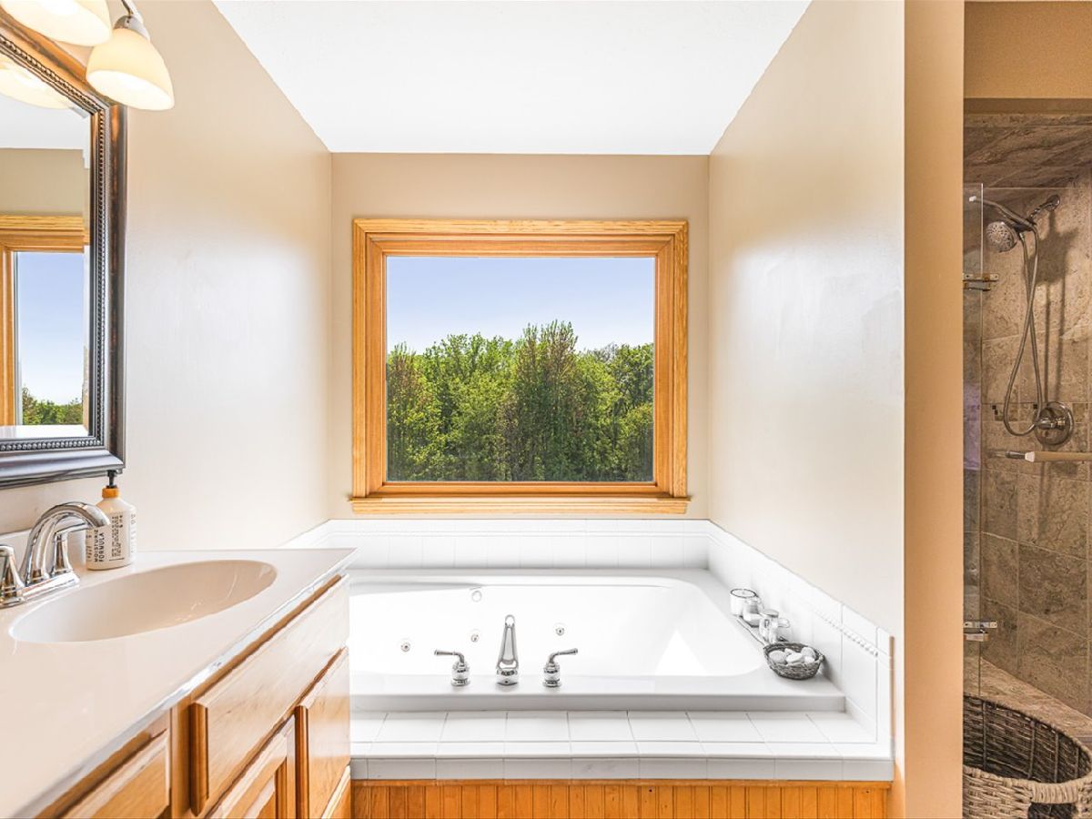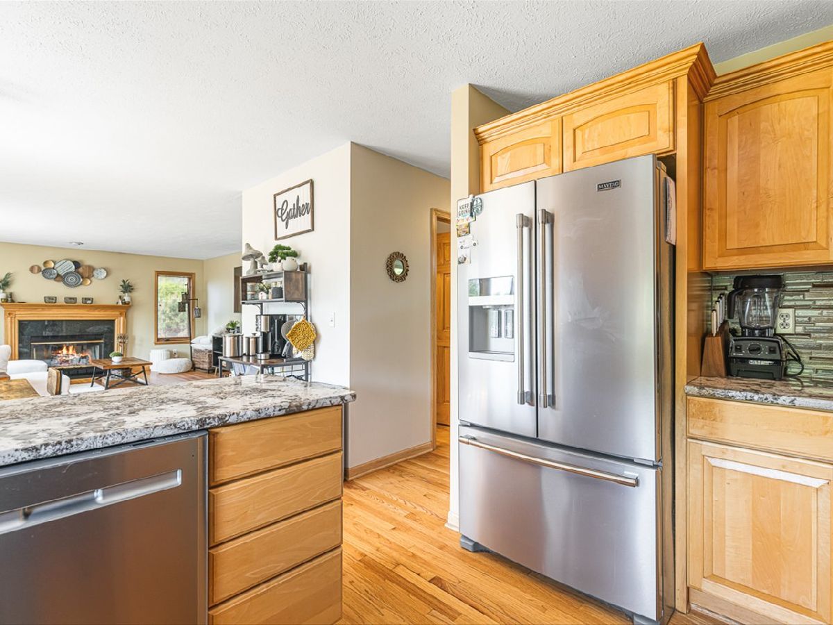 This meticulously maintained 4-bedroom, 3.5-bathroom home offers a seamless blend of comfort, style, and functionality. The formal living room features soaring vaulted ceilings and abundant natural light, creating an inviting space perfect for both everyday living and entertaining. Adjacent to the living area is a formal dining room, ideal for hosting family dinners or special occasions. The main level is highlighted by rich hardwood flooring throughout and a gourmet kitchen with granite countertops, tile backsplash, and stainless steel appliances. A sliding door leads to a composite deck-perfect for outdoor dining or relaxing while enjoying scenic views. The spacious master suite boasts His & Her walk-in closets and a luxurious en-suite bathroom complete with whirlpool tub and updated fixtures. Two additional bedrooms and a full bath round out the upper level. The fully finished lower level extends the living space with a generous family room featuring a gas fireplace, a fourth bedroom with its own full bathroom and walk-in closet, and French doors that open to a covered reinforced deck with a large hot tub. The beautifully landscaped, tree-lined backyard provides a private oasis for relaxation and outdoor entertaining. Additional features include a 3-car garage, reverse osmosis system, water softener, and an irrigation system. Located in a quiet and desirable neighborhood, with convenient access to top-rated schools and major highways, this home has it all.