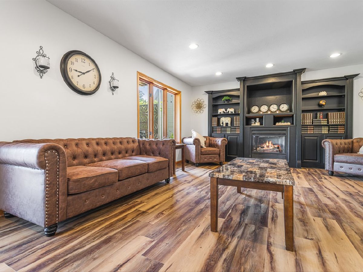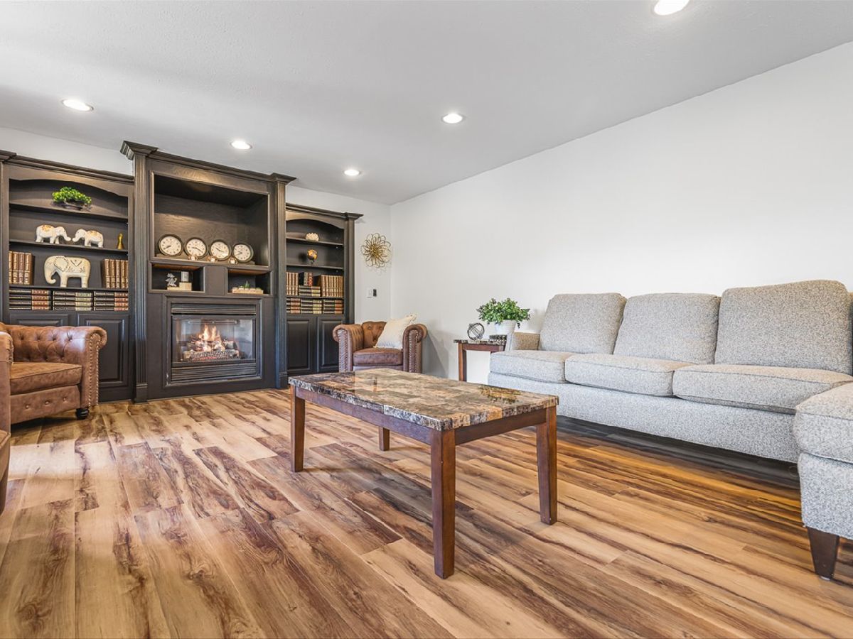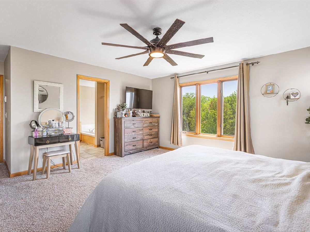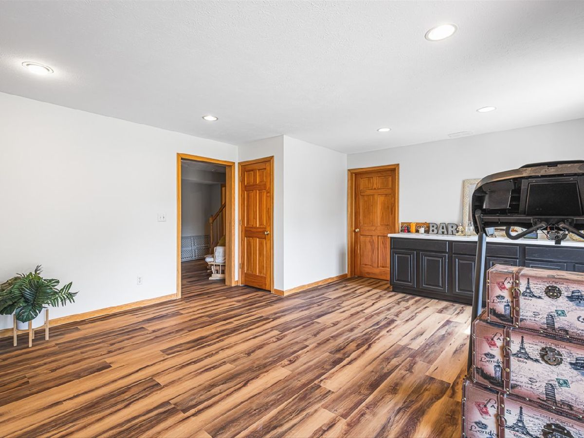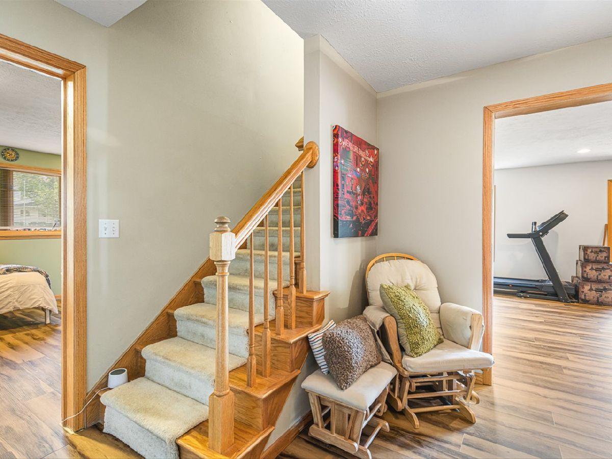 This meticulously maintained 4-bedroom, 3.5-bathroom home offers a seamless blend of comfort, style, and functionality. The formal living room features soaring vaulted ceilings and abundant natural light, creating an inviting space perfect for both everyday living and entertaining. Adjacent to the living area is a formal dining room, ideal for hosting family dinners or special occasions. The main level is highlighted by rich hardwood flooring throughout and a gourmet kitchen with granite countertops, tile backsplash, and stainless steel appliances. A sliding door leads to a composite deck-perfect for outdoor dining or relaxing while enjoying scenic views. The spacious master suite boasts His & Her walk-in closets and a luxurious en-suite bathroom complete with whirlpool tub and updated fixtures. Two additional bedrooms and a full bath round out the upper level. The fully finished lower level extends the living space with a generous family room featuring a gas fireplace, a fourth bedroom with its own full bathroom and walk-in closet, and French doors that open to a covered reinforced deck with a large hot tub. The beautifully landscaped, tree-lined backyard provides a private oasis for relaxation and outdoor entertaining. Additional features include a 3-car garage, reverse osmosis system, water softener, and an irrigation system. Located in a quiet and desirable neighborhood, with convenient access to top-rated schools and major highways, this home has it all.