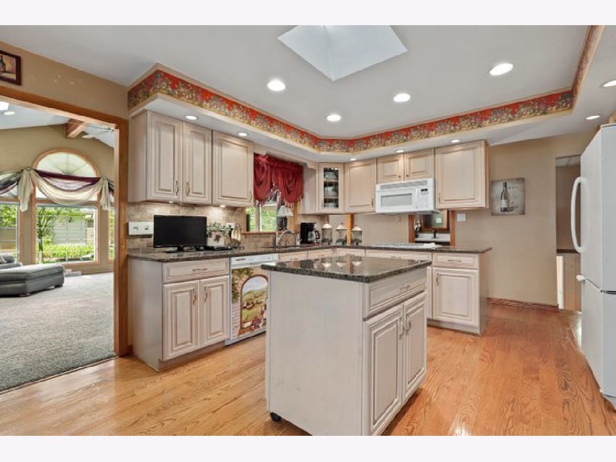 Beautifully appointed 3 bed /1.5 bath split level home in unincorporated Palos Heights. Enter through the formal living area anchored by a wood burning fireplace with floor-to-ceiling brick surround. Home chefs will love the spacious kitchen with its high-end cabinets, granite counters, two cabinet pantries, table space and skylight. The family room includes vaulted ceilings, skylights for natural sunlight, and a gorgeous view of the large backyard and flower garden. The upper level features three generously sized bedrooms and a large full bathroom. Rich hardwood flooring can be found throughout the main and upper levels. The lower level recreation room provides plenty of space to gather with friends and family. The laundry room allows an abundance of organized storage space and includes outdoor access. Relax and entertain on the oversized patio with a built-in grill, meticulously maintained private yard, shed and 2.5 car detached garage with workshop. Easy interstate access and close to parks, forest preserves, schools, restaurants and more! Tour in-person or virtually today!