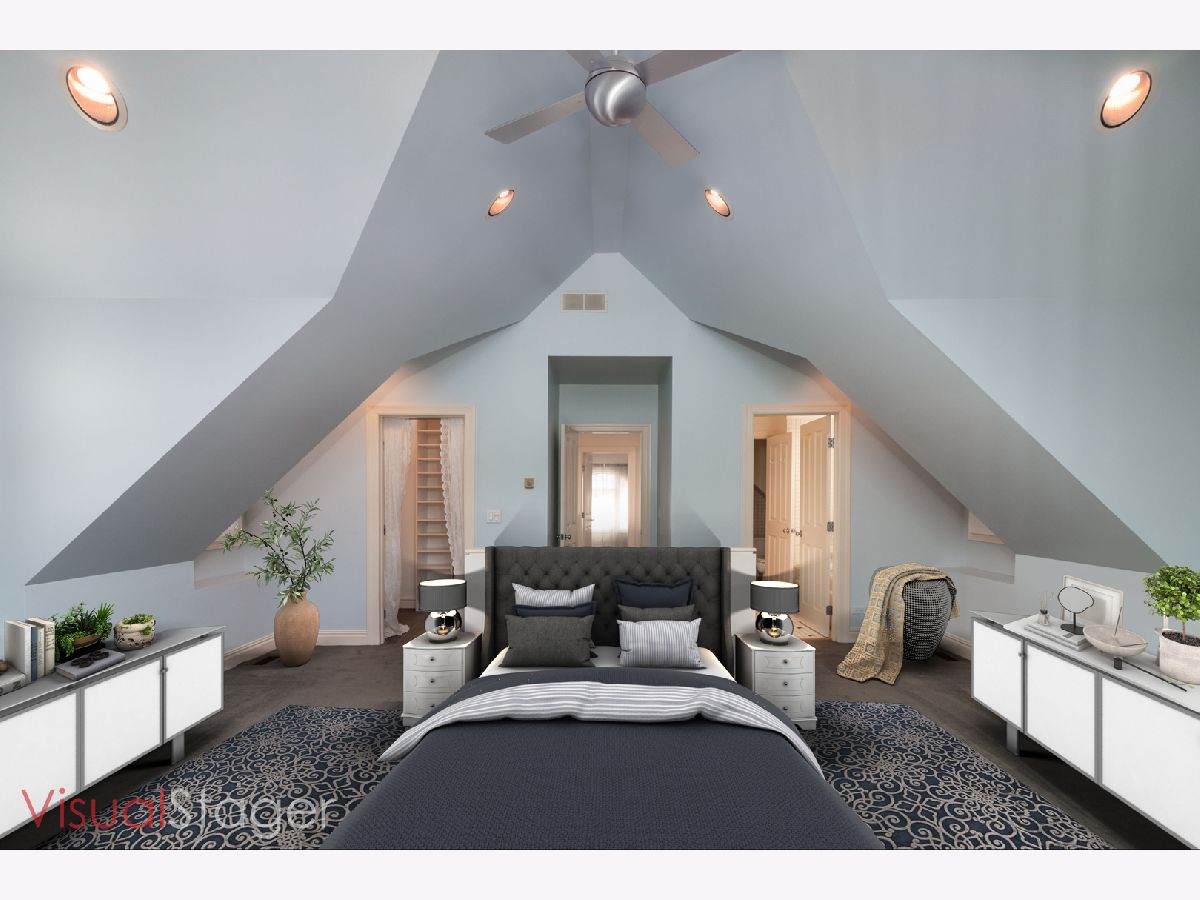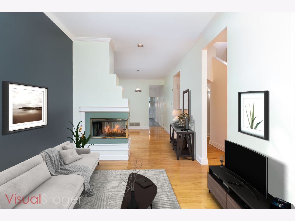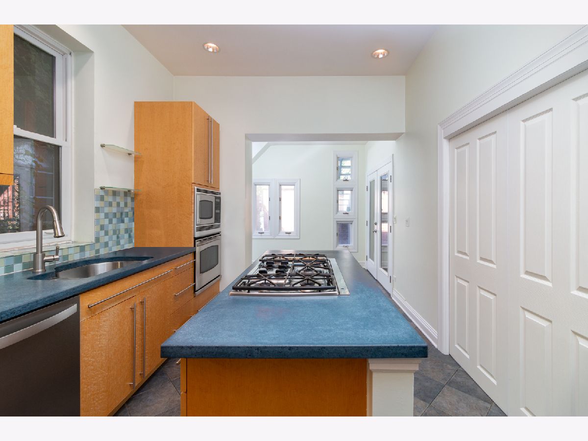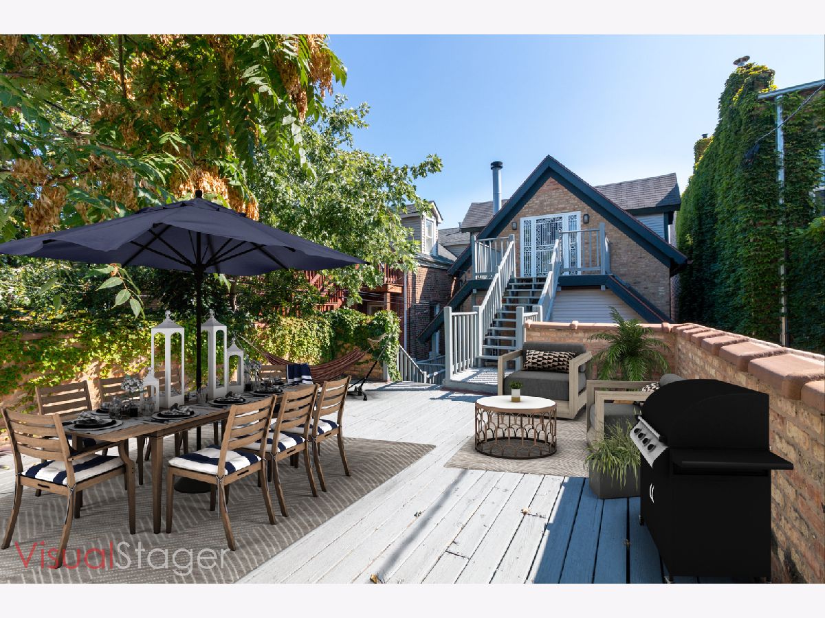 Beautiful blend of vintage and modern home in fabulous Wicker Park! This beautiful, naturally sun-filled home is spacious and full of unique character. Upon entering the home, you have a staircase that leads you to the second floor. Once inside, there is a separate living room and dining room that share a glass enclosed fireplace to be enjoyed in either room. High ceilings throughout the main floor. Custom designed modern kitchen with upgraded stainless steel appliances, 42" inch maple cabinets with ample storage, large island, stone flooring with a large eat in area with skylight and French doors that open to a side deck. Perfect for grilling. You have a half bath and bedroom on the main level and 2 bedrooms upstairs. The large master bedroom features skylights, walk-in closet, vaulted ceilings, fireplace and French doors leading to a deck overlooking the garage rooftop deck and spacious brick laid patio. Off the master bedroom you have a bathroom with separate shower and soaking tub. The additional bedroom has vaulted ceilings with spacious closets. Full bath on 2nd level that can be shared with master bath. The spacious lower level has a separate entry from the front and back. It is perfect for a game room, family room, and or an in-law apartment. The lower level has a fireplace, full bath with soaking tub, and plenty of storage. There are two furnaces. The brick 2 car garage has 2 exterior spots of the alley. Enjoy entertaining and relaxing on the large open garage rooftop deck. There is an outside, attached, locked storage room off the lower level. Close to the train, expressways and parks. Short walk to charming shops, entertainment and lots of dining choices along Division Street.