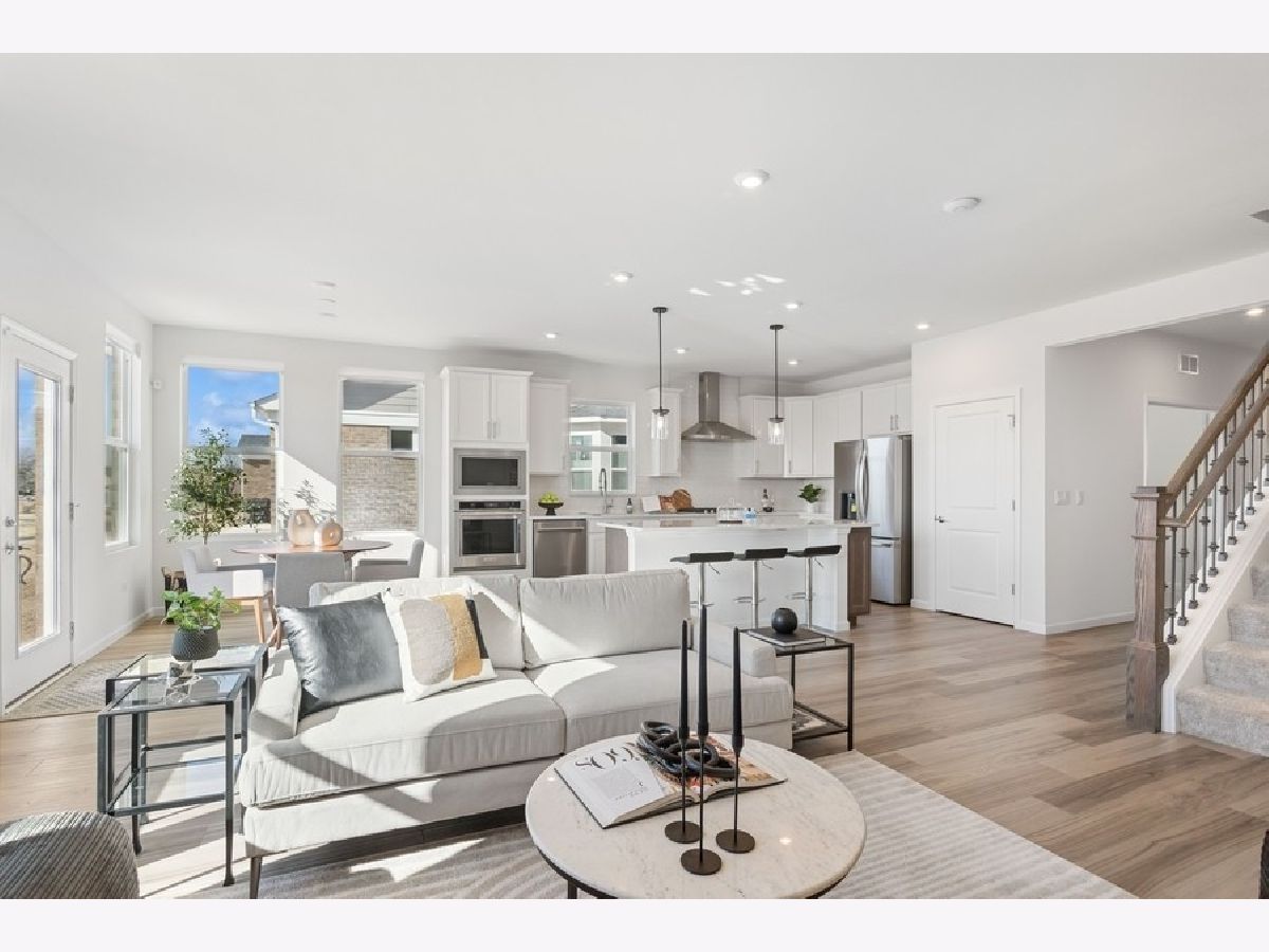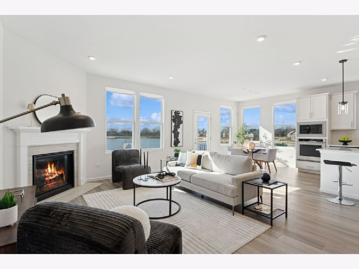 Welcome to this stunning, MOVE-IN ready townhome with over 2300 sq. ft in the sought-after Gleneagles subdivision, this unit offers water views from one of the best lots in the community! With 3 bedrooms plus a den/office, 3 baths, and tons of upgrades, this home is designed to impress. This Abbeyville duplex boasts a charming front porch, as well an additional second-floor family room, bedroom and full bath. Come see the upgraded and tasteful finishes throughout the entire home, including the stylish kitchen with 42" cabinets, a large center island, stainless steel appliances, and elegant white quartz countertops, complemented by a pantry for added storage. The open living room, with its cozy fireplace, provides a warm and welcoming ambiance. The primary suite on the main floor offers a water view, spacious walk-in closet and a beautifully upgraded bathroom with a dual quartz vanity and a separate tub and shower. The main level office/den with French glass doors and laundry room with additional cabinetry complete this main level. Upstairs, an additional living area awaits, complete with a bedroom and full bath-ideal for guests or family members seeking a bit of privacy. An unfinished basement with 9-foot ceilings is roughed in for a future fourth bath, providing ample storage or the potential for expanded living space. This smart home is equipped with the latest technology, and the attached 2-car garage completes the picture. Located within the esteemed Lemont school district and minutes from the town center and metro station, this home offers easy access to Midway and O'Hare airports, I-55, and Route 83. Community amenities include a scenic walking path, a 5-acre park with a basketball court, pickleball court, putting green, and a spacious playground, perfect for outdoor enjoyment. Nearby golf courses add to the area's appeal. Don't miss the opportunity to own this beautiful home with great water views, prime location and wonderful community!