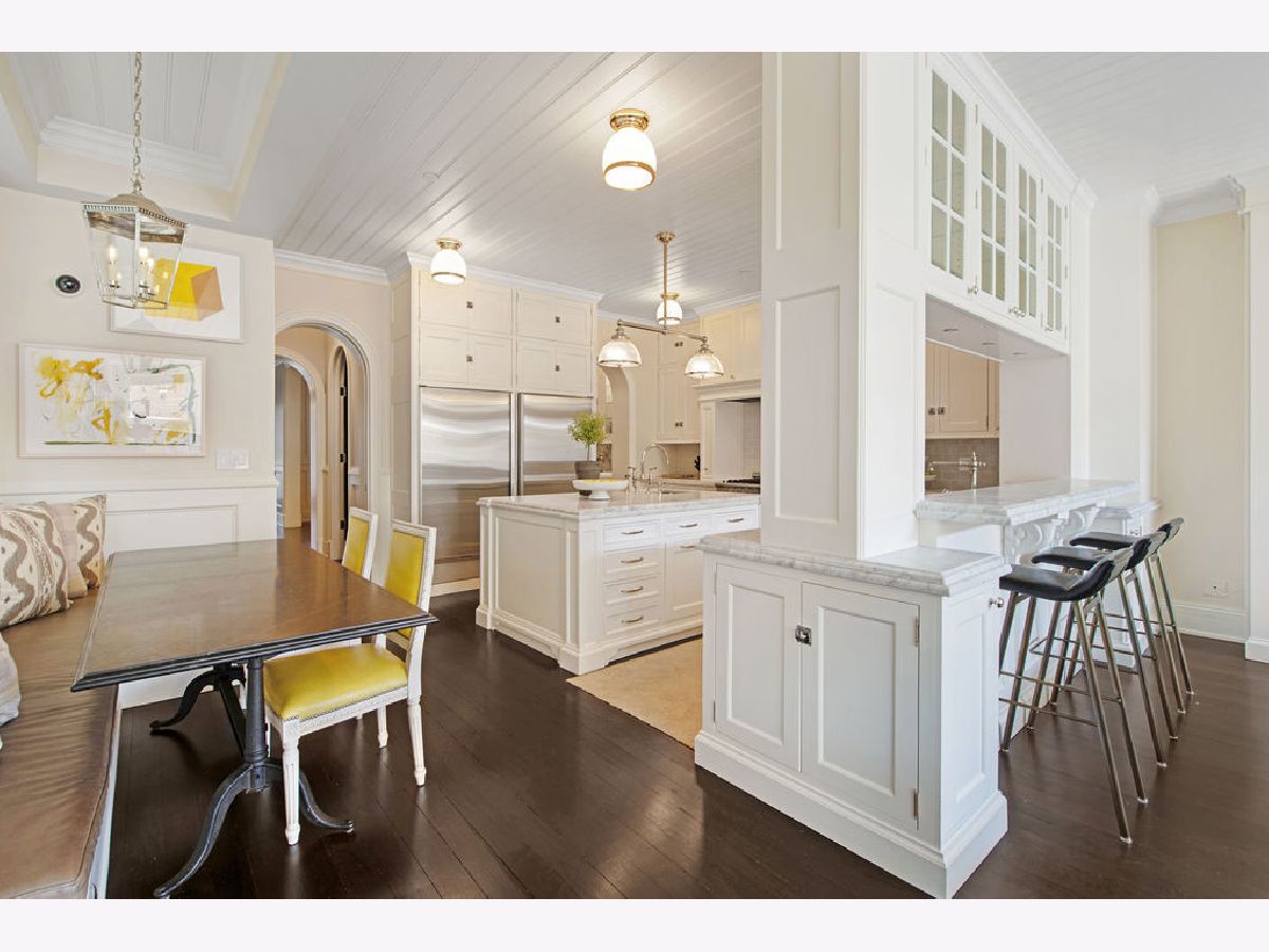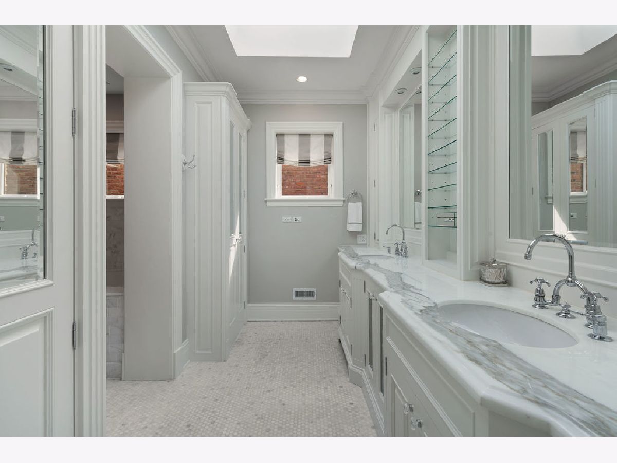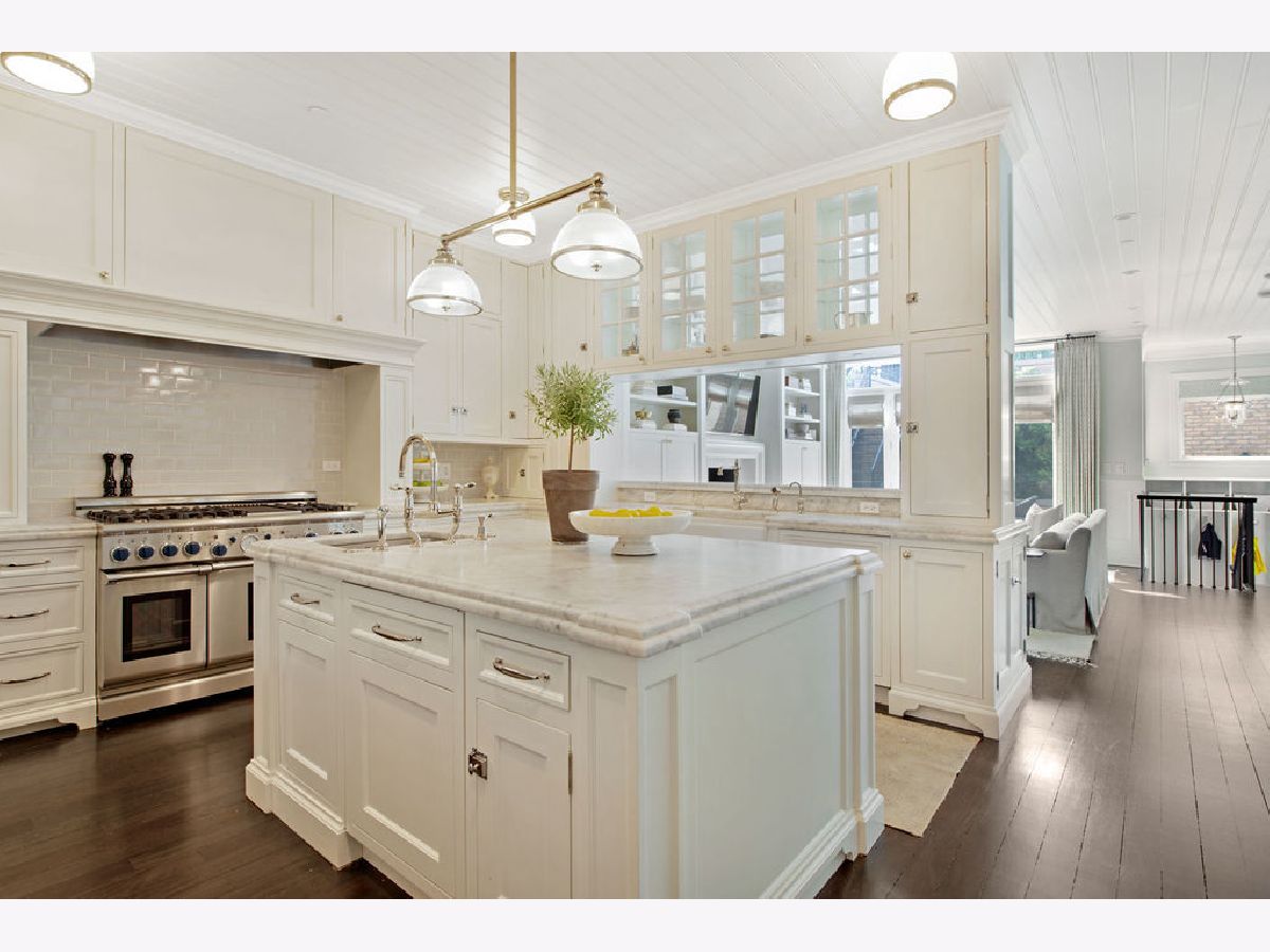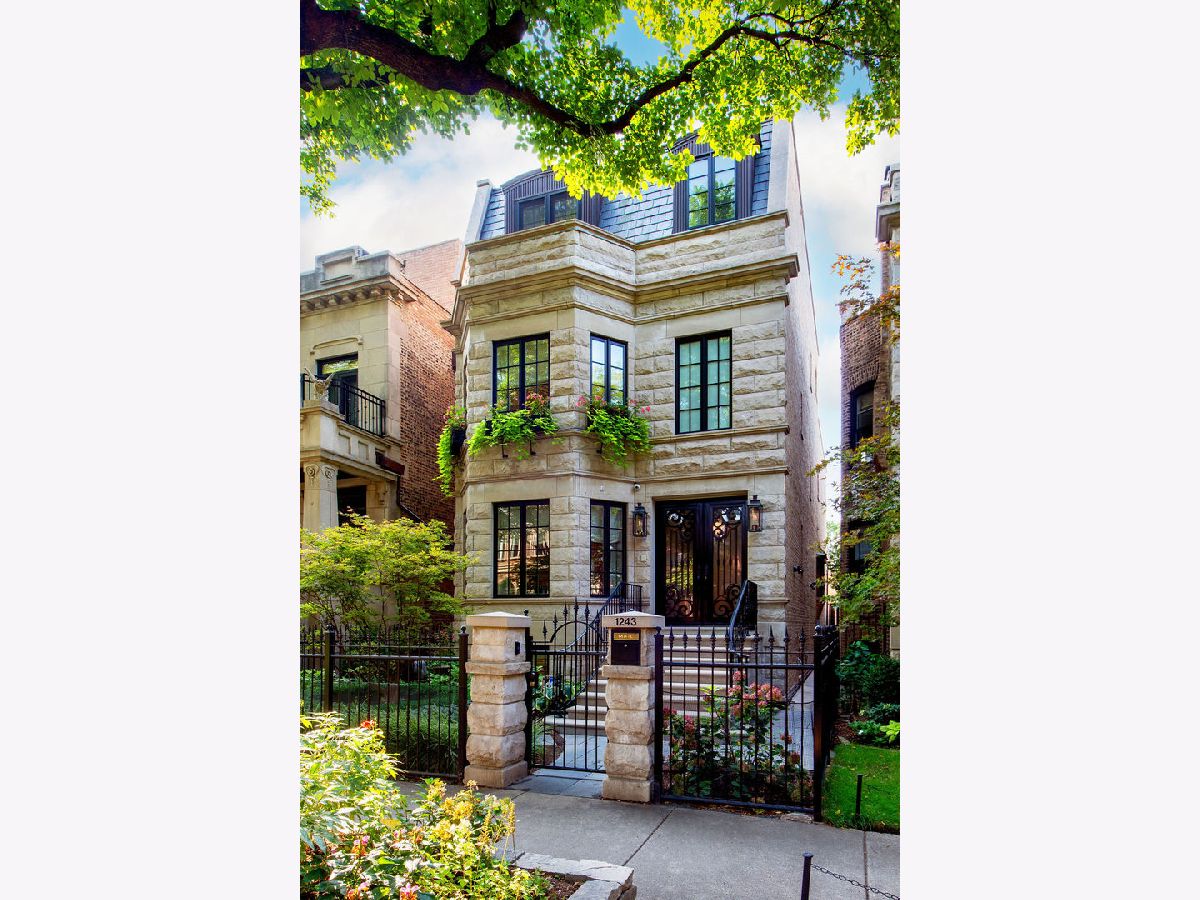 Understated elegance, flawless finishes and high design are the hallmarks of 1243 W. Cornelia Ave., a distinctive single-family greystone located in Chicago's charming Lakeview/Southport Corridor neighborhood. Situated on an extra-large 29' lot, this spectacular 6 bed/5.1 bath boasts all new construction behind its restored vintage facade-and classic curb appeal courtesy of a stately limestone exterior, slate roof with bronze trim, beautiful landscaping/window boxes, and gas lanterns that flank the front door. Once inside, refinished Brazilian walnut floors anchor the home's striking interior design by Wendy Labrum Interiors. The main level begins with a grand foyer and sophisticated living room that finds definition from a French marble fireplace, an antiqued mirror focal wall and custom silk drapery. Beyond lives a lovely formal dining room that flaunts fabulous millwork and a designer chandelier positioned just so. The home's stunning Christopher Peacock-inspired, all-white kitchen wows with Carrara marble counters, a built-in breakfast banquette, a butler's pantry, and a first-class Sub-Zero/Thermador Professional appliances suite, while the adjacent family room welcomes casual entertaining with a generous footprint and a second fireplace. On the second level, 4 of the home's 6 bedrooms unfold, one of which has been converted into a chic media room/library. The third floor is entirely devoted to the primary suite-a spacious retreat with room for a seating area, custom walk-in closets, a massive walkout rooftop terrace with outdoor stone fireplace, and a handsome ensuite with a calacatta marble-topped dual vanity and statement fixtures from Waterworks. This home also features a polished lower level where a rec room, home theater, total gym, temperature-controlled wine cellar and guest bedroom reside. Out back, a private back bluestone patio with grill and a huge, newly designed ipe deck above the garage lay the groundwork for open-air get-togethers. Additional upgrades and amenities include a proper mudroom with built-in storage cubbies, two laundry rooms, a three-car garage, a professionally landscaped parkway, custom downlighting throughout, movie theater, and a whole house HVAC air purification and UV abatement system. A stroll from Southport Corridor for topflight shopping and dining, and five minutes from Wrigley Field for Cubs games and concerts, 1243 W. Cornelia Ave is a refined, design-forward dwelling in a prime location for all-access Chicago living.