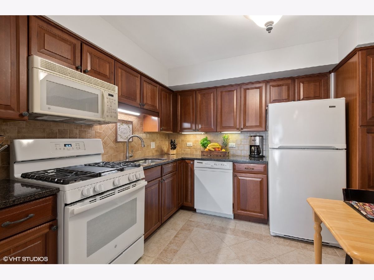 LOCATION, LOCATION, LOCATION! Truly beautiful unit, one of only two units in the building with private garage. Located in desirable Downtown Des Plaines within walking distance to train, shopping, dining and entertainment. Just minutes from O'Hare airport and Interstate 294/90. Fully remodeled with meticulous attention to details. Custom millwork and doors. Bright and inviting living spaces freshly painted in neutral colors. Large Living Room with tray ceiling, recessed lightning, hardwood floor and new sliding glass door for providing a lot of natural light. Kitchen features cherry cabinetry including pantry cabinet, granite tops, ceramic tile backsplash and floor. Kitchen has a room for a table and connects nicely with the Living Room. The Living Room is big enough to combine living and dining area into one. Both bedrooms are spacious with wall to wall closets and brand new carpet. Bathroom is upgraded with travertine/ceramic tiles and up to date vanity and fixtures. Unit comes with deeded one car garage with new overhead door and additional parking space on a driveway in front of the garage. Entry door to the garage and coin laundry are located on the lower level. Well maintained building with brand new roof, gutters and mechanicals. Low monthly assessment includes all utilities except electricity. Great location, lovely area with charming streets for enjoyable walks and strolls, only 17 miles from the Chicago Loop and minutes to Rosemont attractions. Move in condition. A pleasure to show.