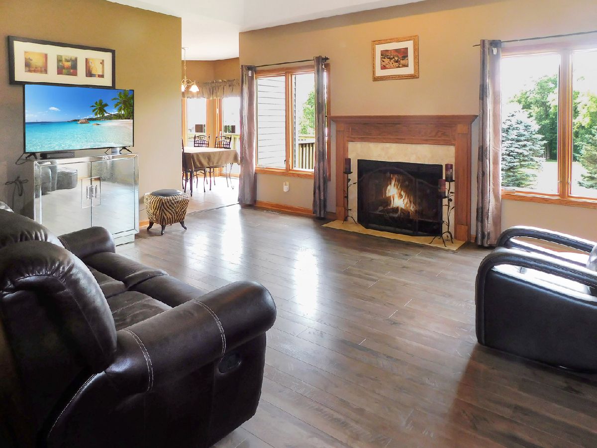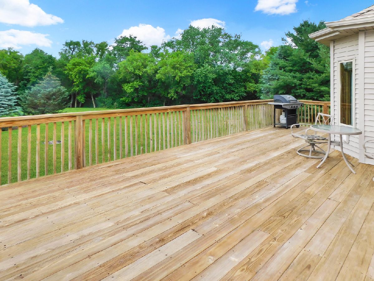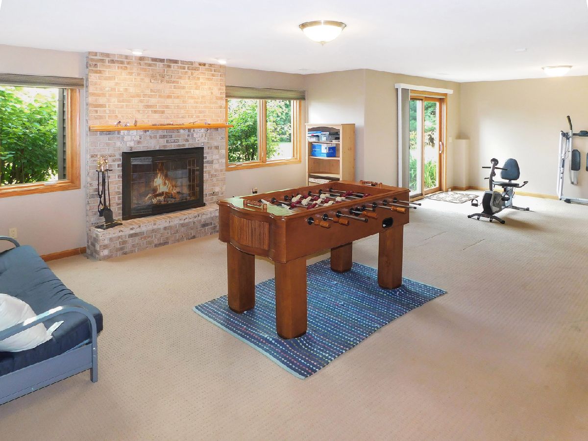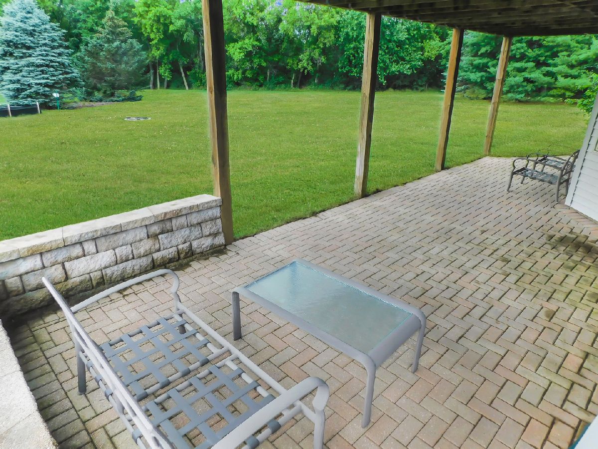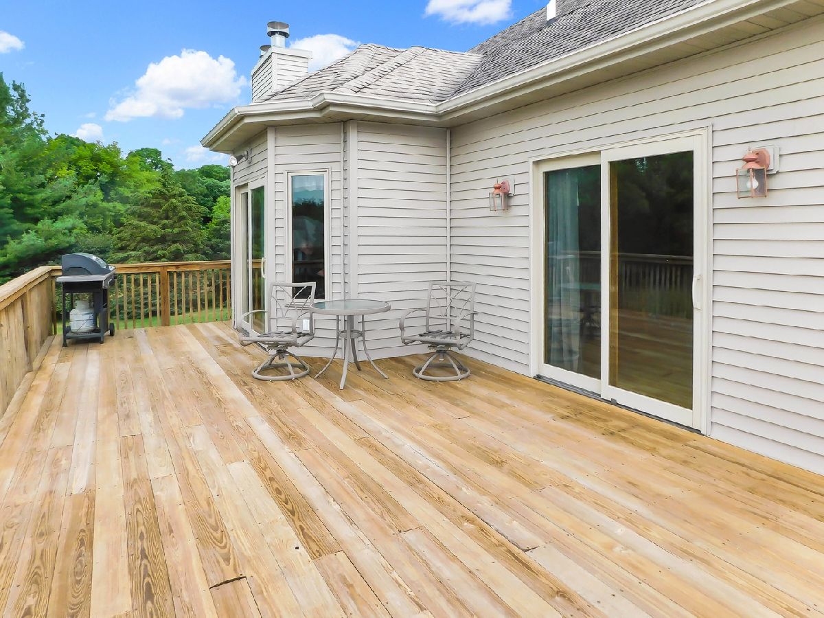 This gorgeous ranch home in Roscoe is situated on a .83 acre lot and ideally set on a cul-de-sac in a beautiful country setting! This wonderful home is within the highly ranked Hononegah High School and Roscoe Kinnikinnick Grade School districts! This Spacious ranch features a finished walkout lower level plus an open entry and formal dining room! A big open great room includes wood flooring, a gas fireplace and cathedral ceiling along with beautiful backyard views! The eat in kitchen is complete with gorgeous granite counter tops, stainless steel appliances, maple cabinetry and tile flooring! A convenient main floor laundry room is adjacent to the kitchen includes cabinetry for storage. This wonderful ranch is ideal with a split bedroom floor plan including a master suite, with a private bath complete with a new walk in tiled shower, whirlpool tub, and double sinks plus a walk in closet and tray ceiling! Enjoy your own private oasis with a patio door onto the upper deck providing beautiful backyard views! This home is perfect for entertaining with tons of additional living space in the finished walkout lower level, complete with a huge family room featuring a wet bar and dining space with a paver patio just outside the door. This spacious lower level keeps going and going with a large 4th bedroom and a full bath along with a huge game room, workout space and a second gas fireplace! Additionally this ranch home includes solid wood 6 panel doors, walls with rounded corners, a security system and a lawn sprinkler system. The central air unit is just 1 year old and the water heater is 2 years old ! This spacious ranch includes plenty of storage space also in the walk out lower level. You will certainly enjoy the outdoors in this home with a huge upper deck along with a lower covered paver patio below, both overlooking the big backyard!