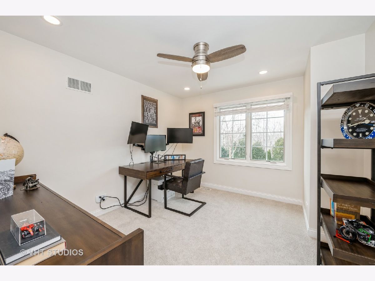 Located in the highly sought-after area of Palatine, this meticulously updated executive home offers luxury living at its finest, with the serene Hummingbird Park directly across the street. Every detail has been thoughtfully curated to create a home that combines timeless elegance with modern comforts.As you step inside, you are welcomed by a soaring two-story entryway, flanked by a cozy sitting area and a formal dining room-both featuring intricate ceilings with recessed lighting. The main floor is bathed in natural light from brand-new, top-of-the-line Pella windows, replaced in 2024, and boasts refinished red oak floors, 9-foot ceilings, and luxurious finishes throughout. The heart of the home lies in the seamless flow between the stunning gourmet kitchen, dining area, and the spacious family room, complete with an updated fireplace-perfect for family gatherings and entertaining. Upstairs, you'll find four generously sized bedrooms, full bathroom, and a bonus room, all with brand-new carpeting. The luxurious master suite is a private retreat, featuring tray ceilings and a designer-remodeled, extra-large master bath with a double vanity, standalone glass and stone shower with Moen and Kohler, separate jetted soaker tub, and an enormous walk-in closet. The high-end finished basement is a home within a home, offering a large bedroom, full bath, wet bar, wine fridge, an exercise area, and tons of storage-ideal for in-law or teenage arrangements. Step outside to your own backyard oasis, a private, tree-lined retreat that has been professionally landscaped and illuminated with designer accent lighting. The fenced backyard is perfect for relaxation and entertaining, featuring a gorgeous stamped concrete patio installed all new in 2022 and a new hot tub installed in 2021. The front and back yards are equipped with a new in ground sprinkler system installed in 2022.Car enthusiasts will be thrilled with the oversized heated 3+ car garage, complete with a luxury car lift to accommodate a 4th car, custom-painted emblems, new premium epoxy floor coating, and new built-in custom cabinetry. The concrete driveway and front walkway were also replaced in 2022, ensuring a clean and polished look. All new roof and oversized gutters were replaced in 2020.This home truly has it all-luxury, functionality, and location. Move-in ready and absolutely perfect, your dream home awaits!