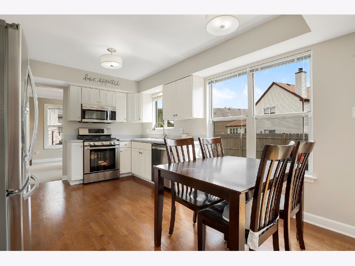 Warmly decorated with a West Elm inspiration. Feel right at home in this cozy, perfect domicile in the heart of North Hoffman Estates. Be greeted by a lovely foyer and welcoming staircase to exactly what you have been waiting for! Open and sunny living and dining room with fresh high end carpeting. The kitchen has a great amount of white cabinets, eat in area, and stainless appliances. Open concepts to the family room for rest and relaxation. From your couch, look out to the perfect back yard oasis with patio set up and just enough grass to enjoy but not blow your weekends maintaining it. Yard is also fully fenced! Upstairs is no surprise, more awesomeness with 3 spacious bedrooms and two full baths, tastefully finished. Each bedroom has ample closet space. Enjoy all that North Hoffman has to offer with nearby parks, shopping and restaurants. Do not miss this one!