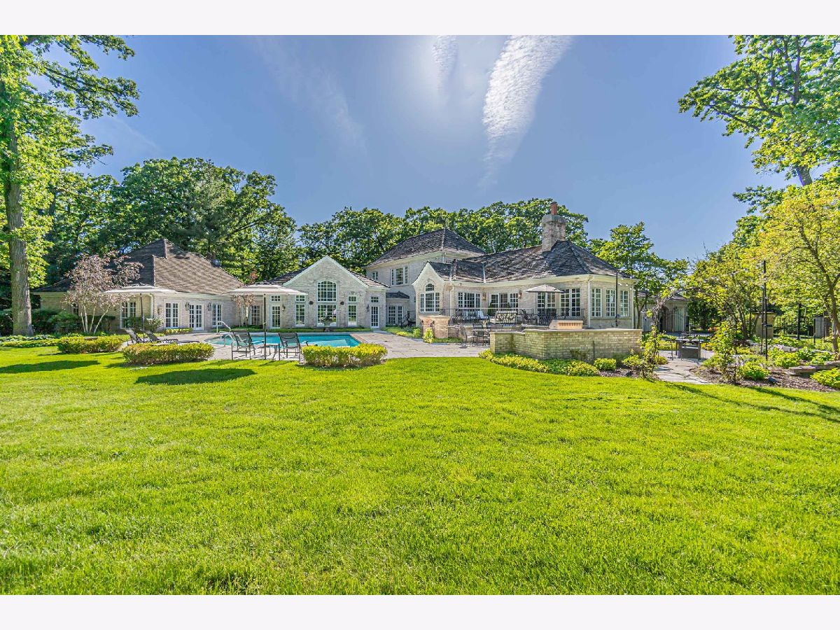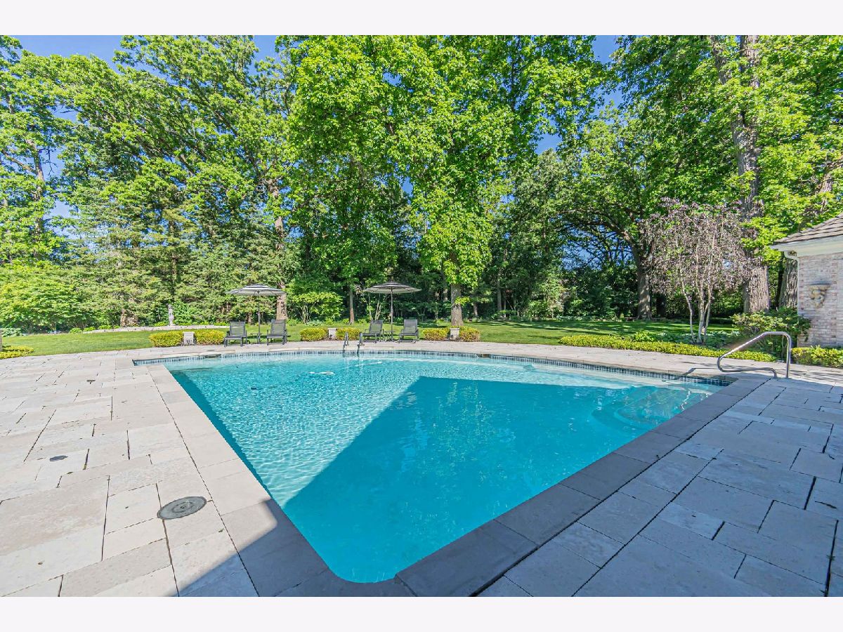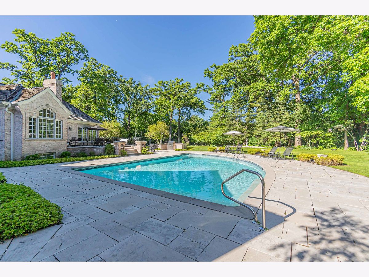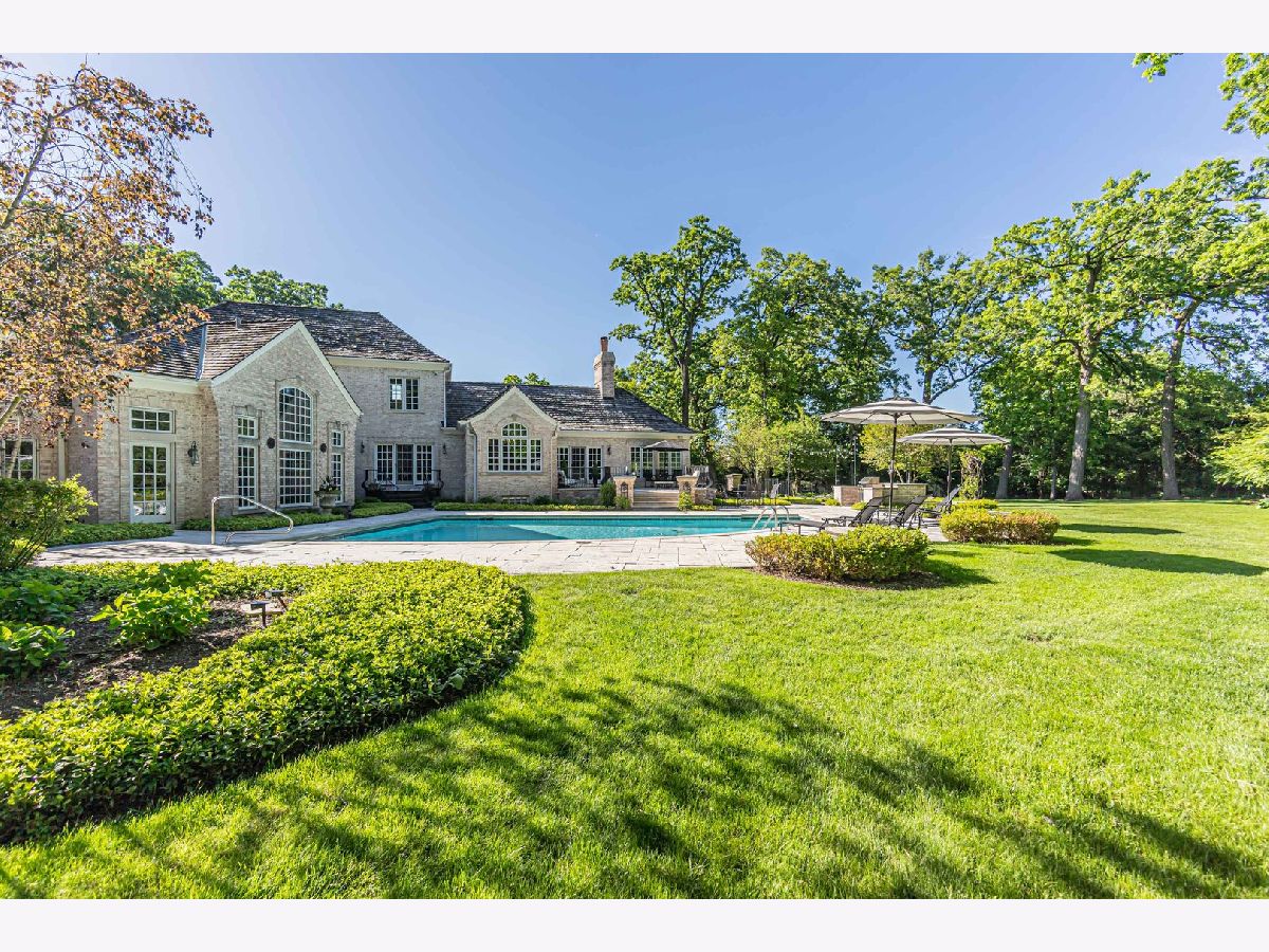 This exceptional property offers a blend of elegance and comfort, nestled in a professionally landscaped 1.7 acre park-like setting. A unique open floor plan with high, vaulted ceilings, overlook panoramic views of the outdoor pool, upper and lower stone patios, and wooded surroundings. Located in the Summerfield Subdivision off a quiet cul-de-sac, enjoy walking distance to the Middlefork Savannah, Open Lands trails and Elawa Farm. Stunning 2-story marble foyer with a grand double staircase leads to 2 separate ensuite bedrooms. The main level private primary suite overlooking pool area. The finished lower level features fifth ensuite bedroom. Truly a beautiful retreat! Must see!