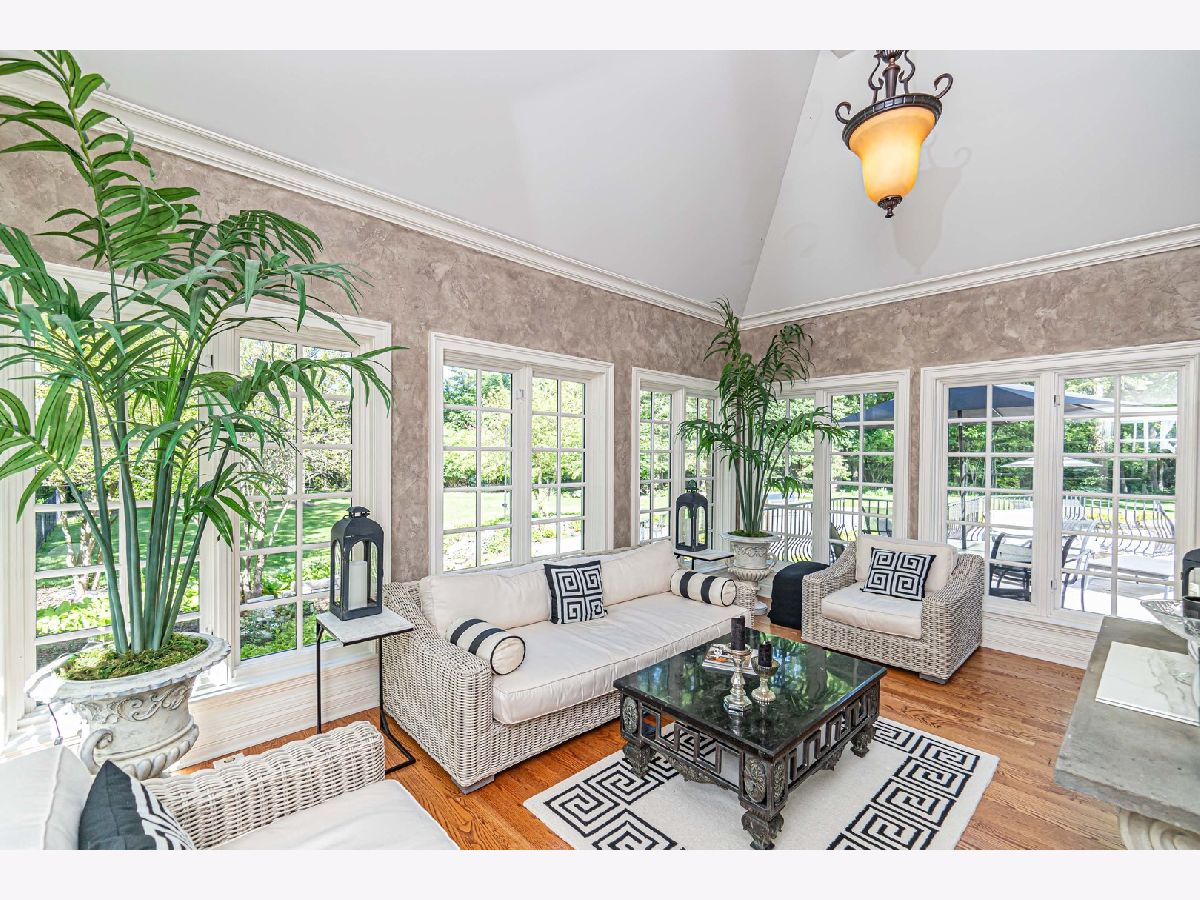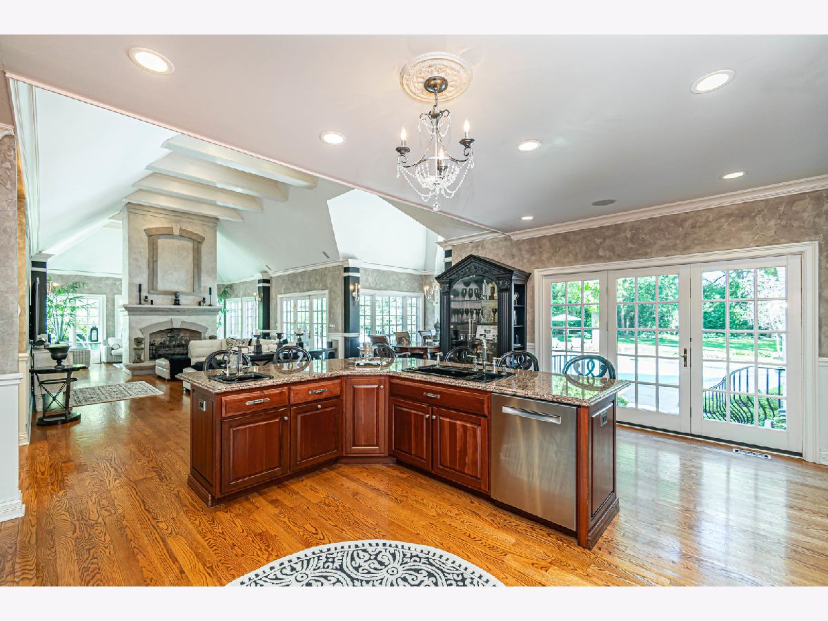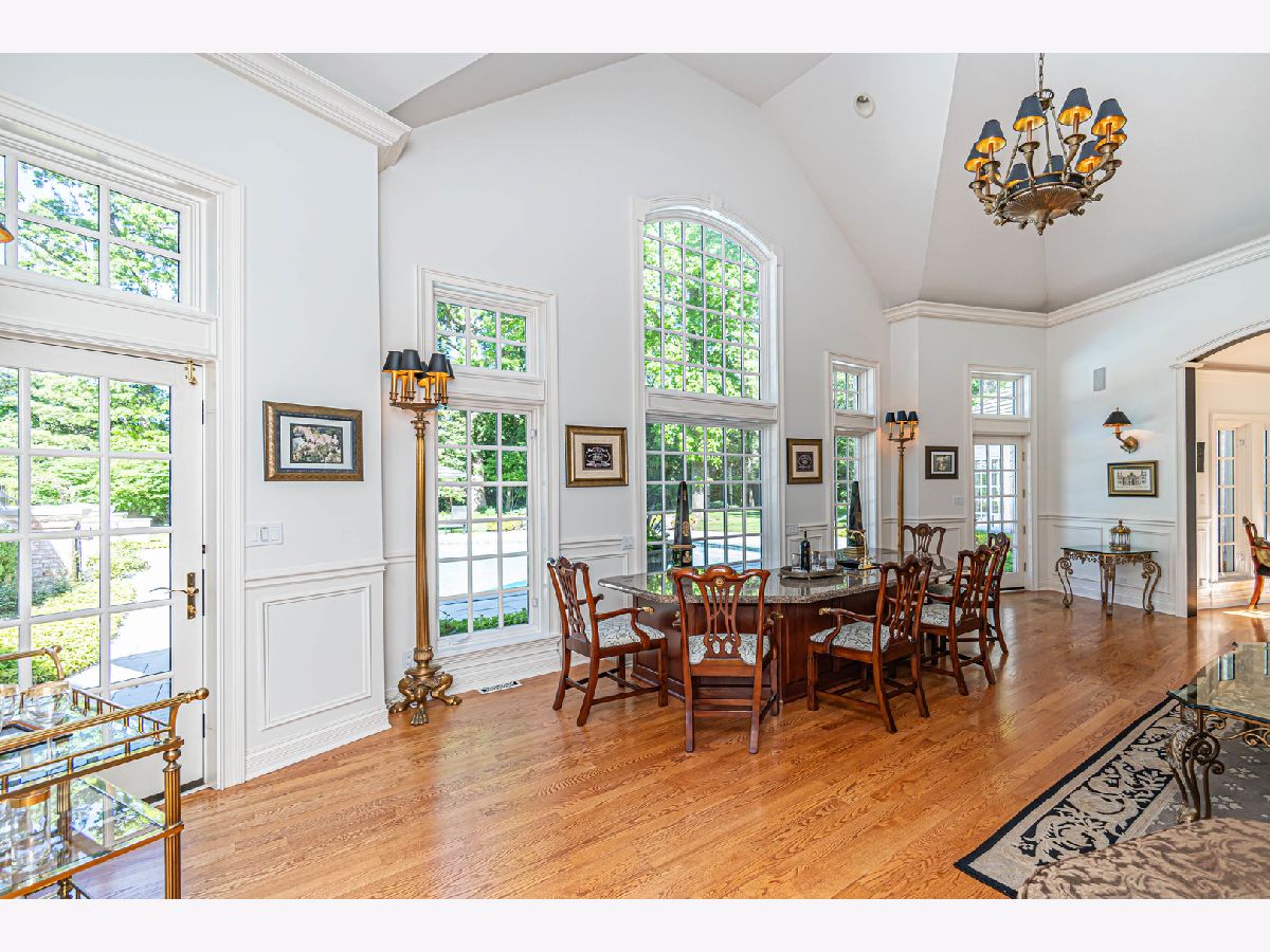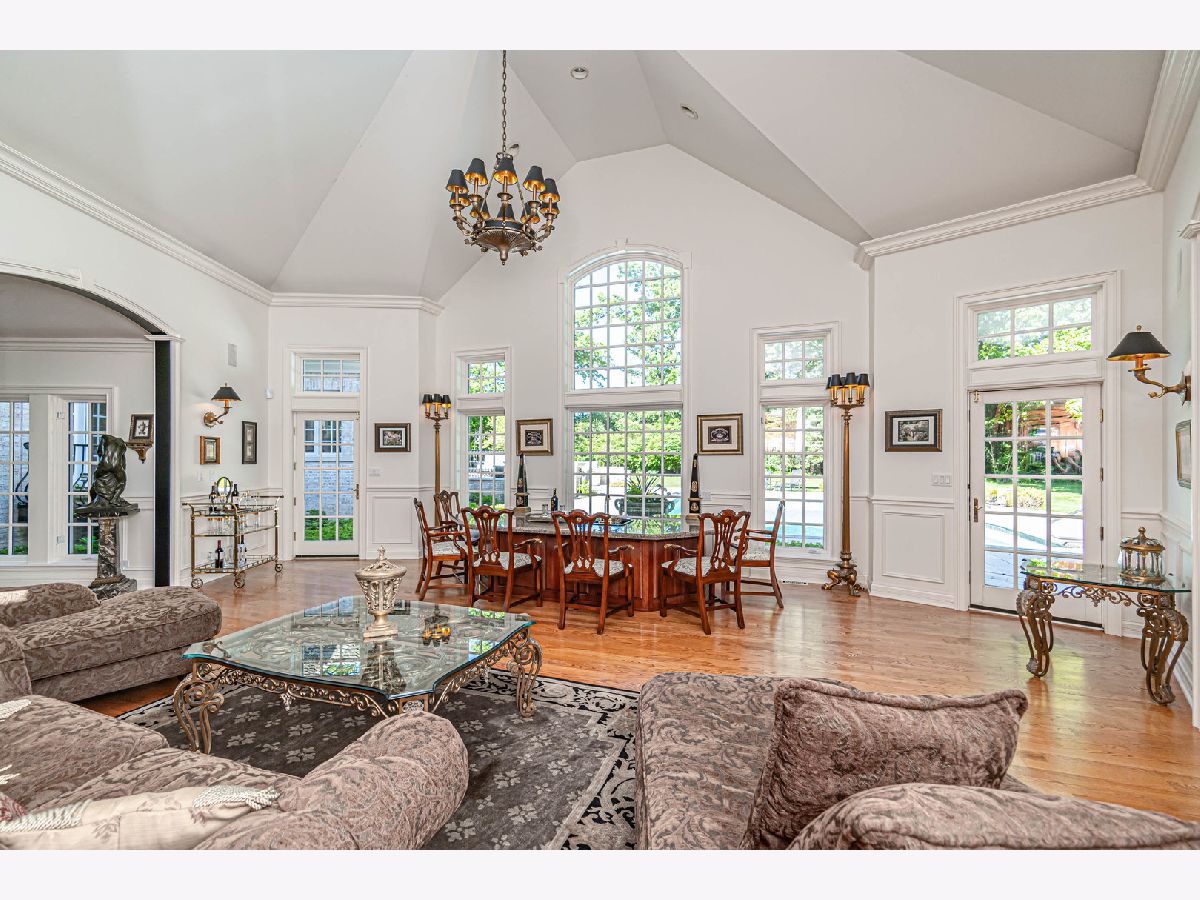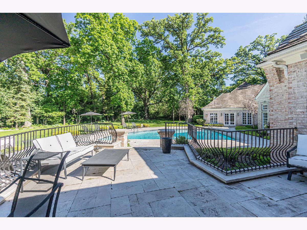 This exceptional property offers a blend of elegance and comfort, nestled in a professionally landscaped 1.7 acre park-like setting. A unique open floor plan with high, vaulted ceilings, overlook panoramic views of the outdoor pool, upper and lower stone patios, and wooded surroundings. Located in the Summerfield Subdivision off a quiet cul-de-sac, enjoy walking distance to the Middlefork Savannah, Open Lands trails and Elawa Farm. Stunning 2-story marble foyer with a grand double staircase leads to 2 separate ensuite bedrooms. The main level private primary suite overlooking pool area. The finished lower level features fifth ensuite bedroom. Truly a beautiful retreat! Must see!