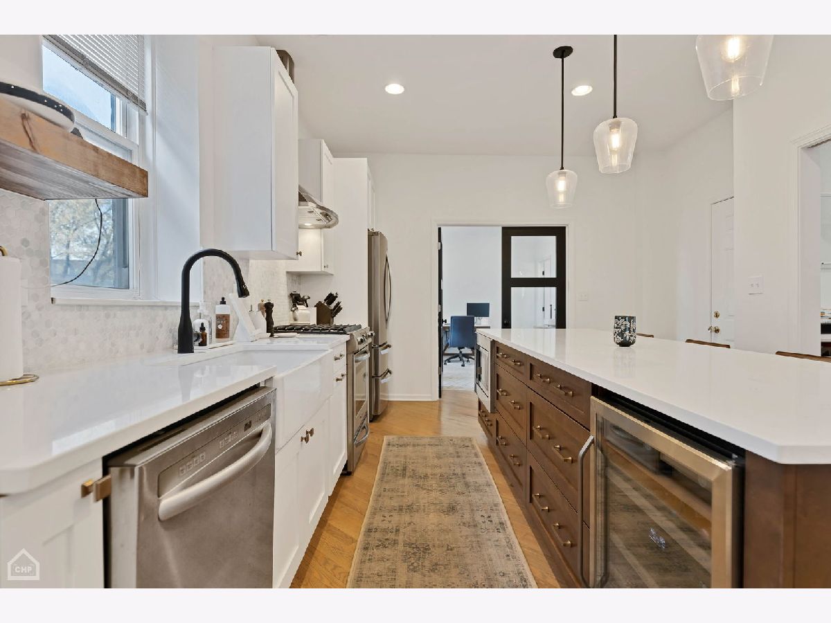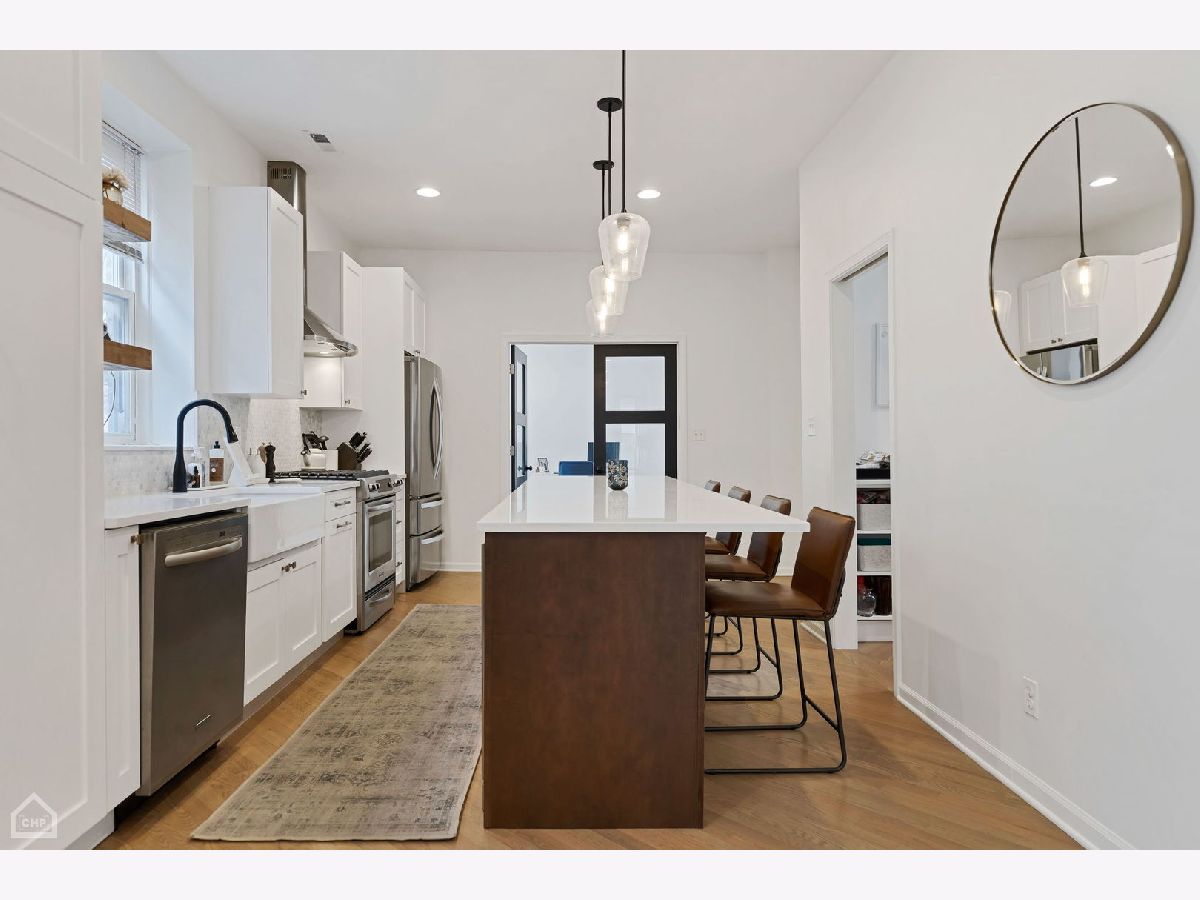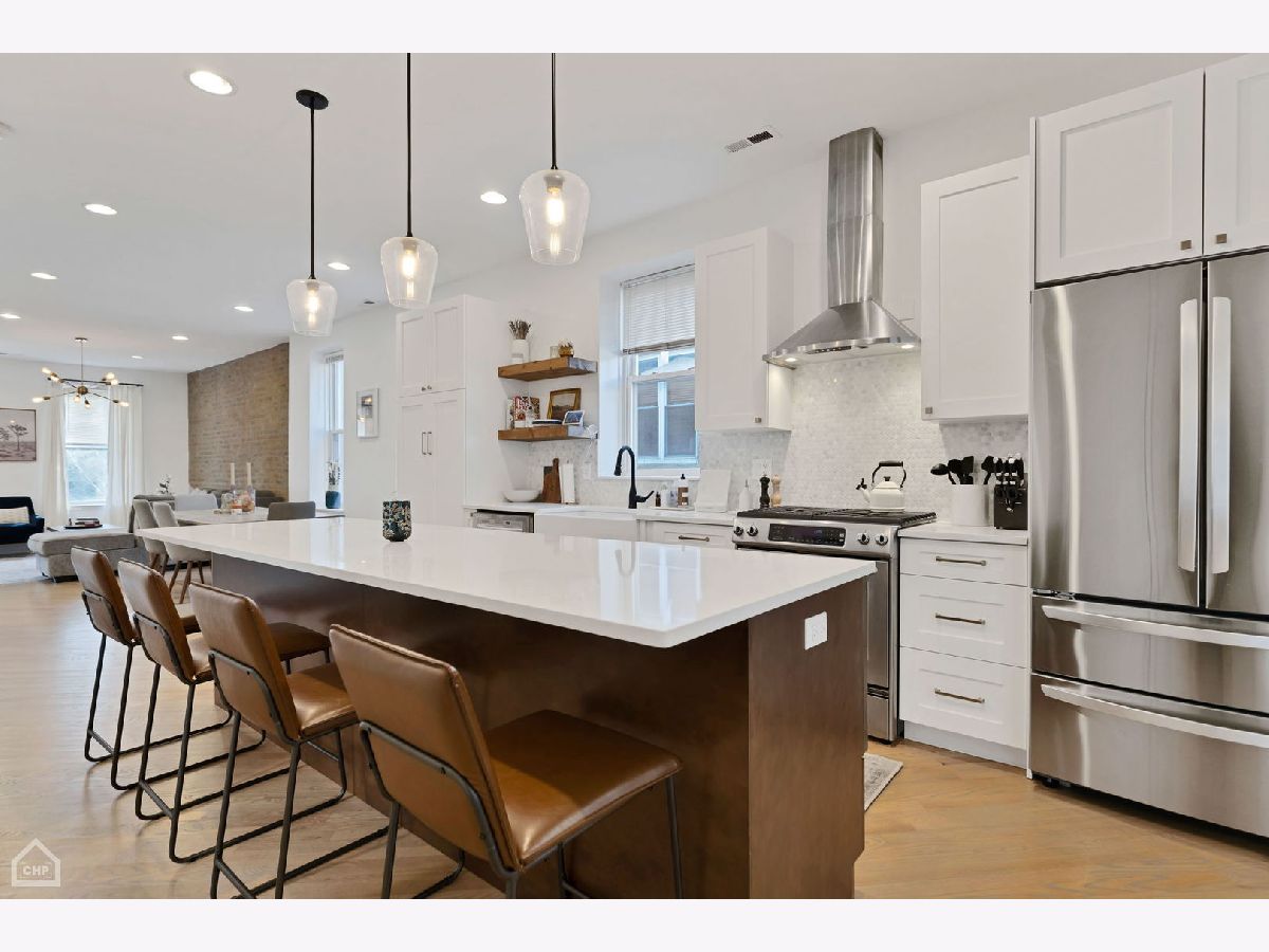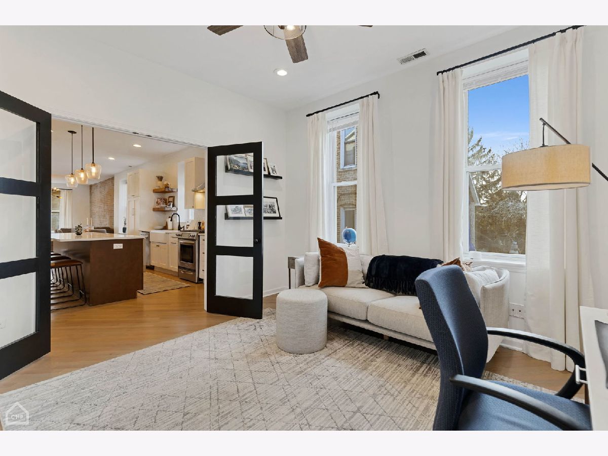 Come be impressed with this one of a kind duplex-up in the heart of Wicker Park! Nestled in a classic Chicago building, this HUGE 4BR + Den condo offers the perfect blend of vintage charm with modern updates. Bathed in natural light, take in the character highlighted by exposed brick, high ceilings, cozy fireplace, and original banisters. The main floor features a FABULOUS custom renovation showcasing a new kitchen with a massive island and wine fridge, perfect for entertaining. The addition of the butler's pantry makes storage a breeze and keeps all of your small appliances organized and easily accessible. The den offers great flex space for an office, family room, or workout area. Upstairs features 3 spacious bedrooms, including a king-sized primary bedroom with a large walk-in closet and balcony. The bonus sitting area is the perfect spot to hang out and enjoy the gorgeous skylights that let the sunshine pour in. Huge laundry room, complete with side-by-side washer/dryer and lots of extra storage. Hardwood floors throughout. Incredible STORAGE on each level, with large, deep closets. Truly lives like a single family home! Step out onto your shared terrace equipped with brand new composite decking and take in the sights and sounds of this wonderful neighborhood. AMAZING location! Live on a nice residential street, while being only steps from the heart of both Division St and Milwaukee Ave. Restaurants, boutiques, and nightlife galore! You will love your lifestyle here! Minutes from all major conveniences, including the Division Blue Line, Jewel, Ulta, Lowe's, etc. One garage parking spot with extra room for storage included in price. Pet friendly!