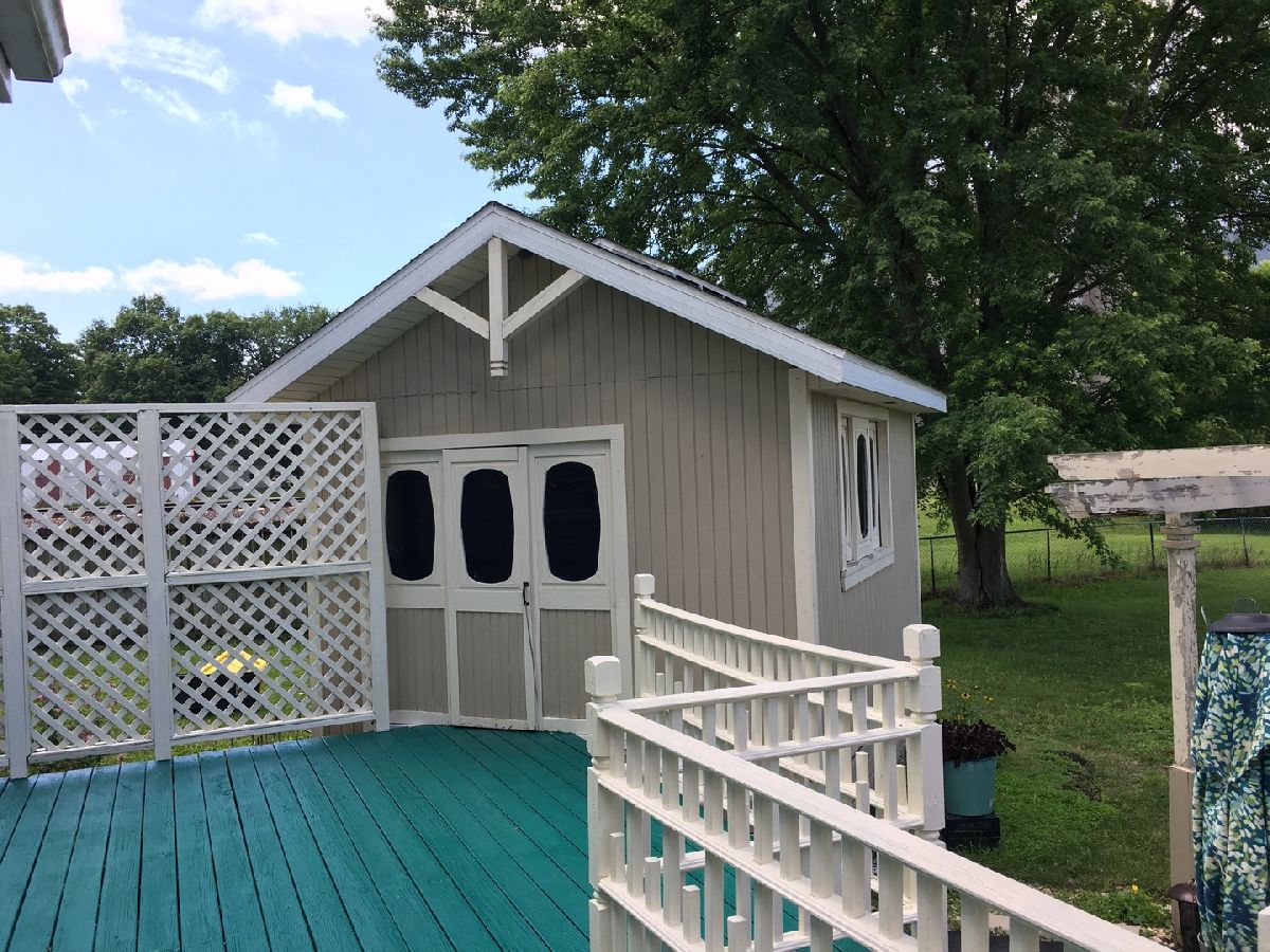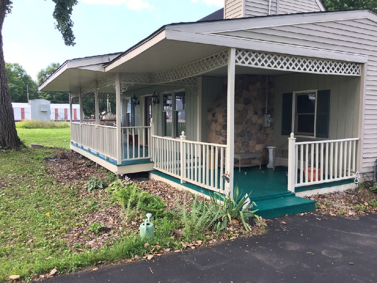 Enter this lovely home via the expansive covered front porch. There is a first floor bedroom or perfect for a convenient office for 'at home workers'. A first floor full bath. Living room can also provide a large dining room for larger gatherings. The first floor family room is perfect for informal entertaining with patio doors to large backyard deck (hot tub included). Two good sized additional bedrooms with double wide closets are privately located upstairs. The oversized garage provides plenty of outside storage or workshop space. There is a separate huge shed for backyard tools, etc. Plenty of space in the fenced backyard for a garden. You'll love to call this house a 'home'. Enjoy all the peace and pleasantness of a small town only a few minutes from DeKalb/Sycamore shopping opportunities.