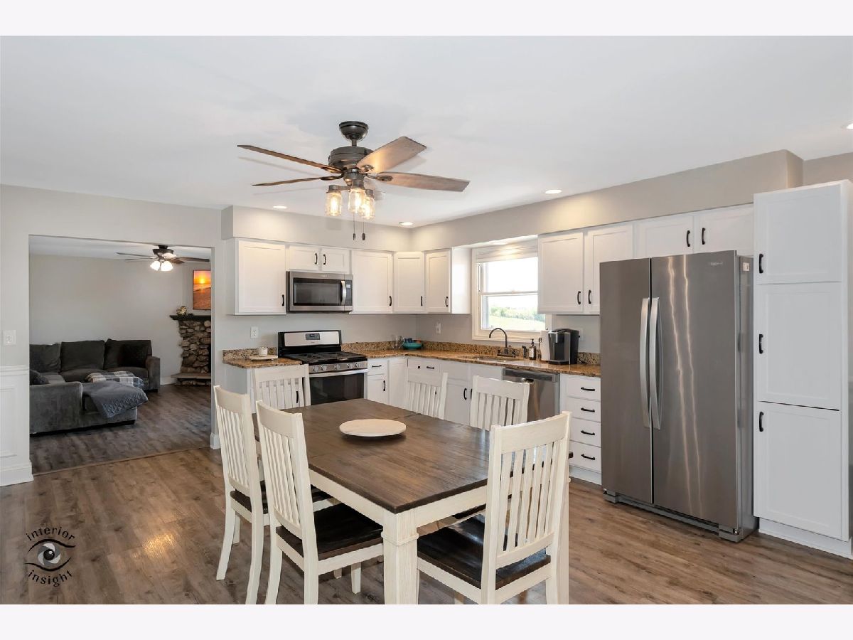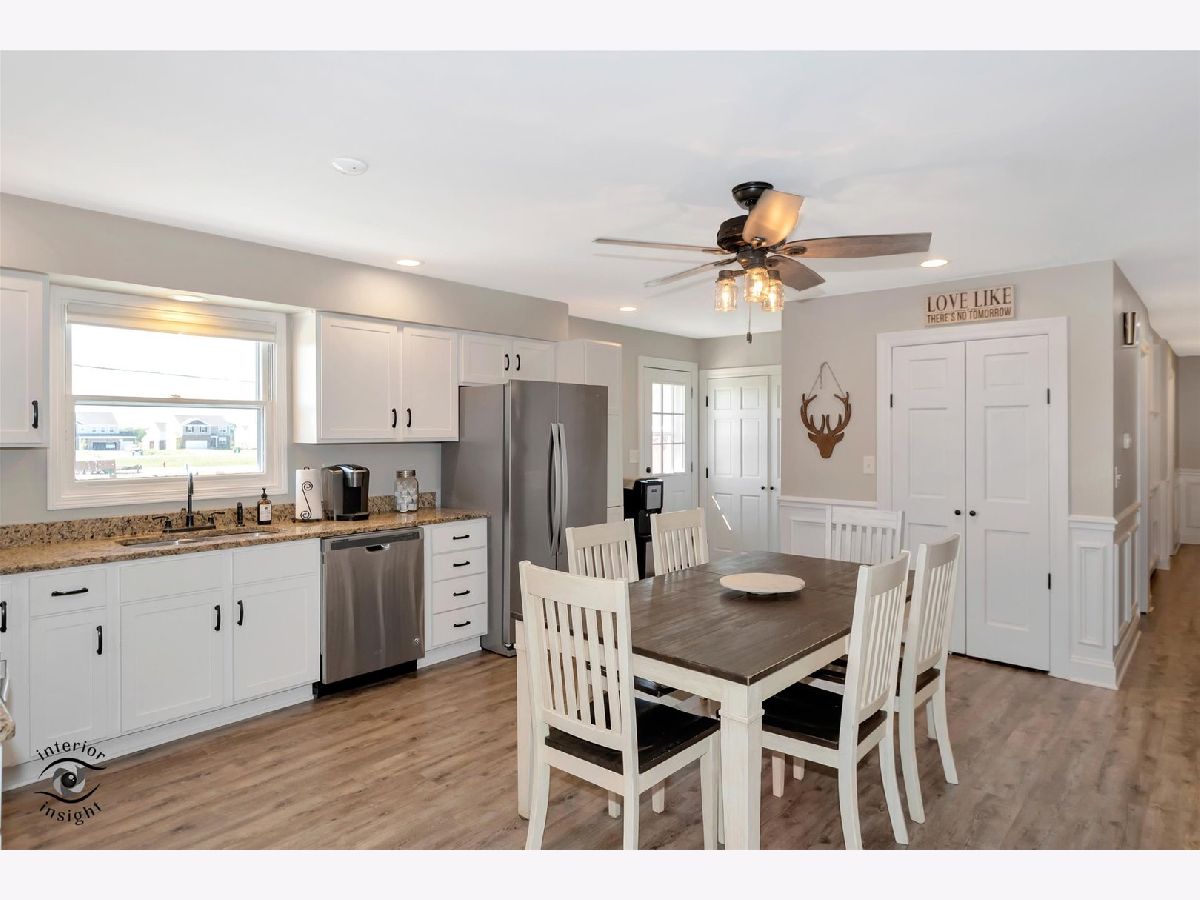 Offer verbally accepted- no more showings* Welcome home to this impressively renovated 3 bedroom 2 bath Ranch, with Stately updates & beautifully maintained. Lots of windows for tons of natural lighting. New vinyl plank flooring throughout, extra sized open concept kitchen, with can lighting, stainless steel appliances, granite countertops, closet pantry, 2.5 car extra deep, finished, & heated garage. Beautiful wainscoting & Built-in shelving wraps the hallways, bathrooms boasts custom tile work, walk in shower, and granite countertops. Stone Gas fireplace with custom mantle in family room. Don't forget about your outdoor oasis with 12X30 ft. Deck, fenced in back yard with extra Detached garage with loft!! Front yard features a 3 car wide, concrete driveway, and large apple tree!!! Make it yours today
