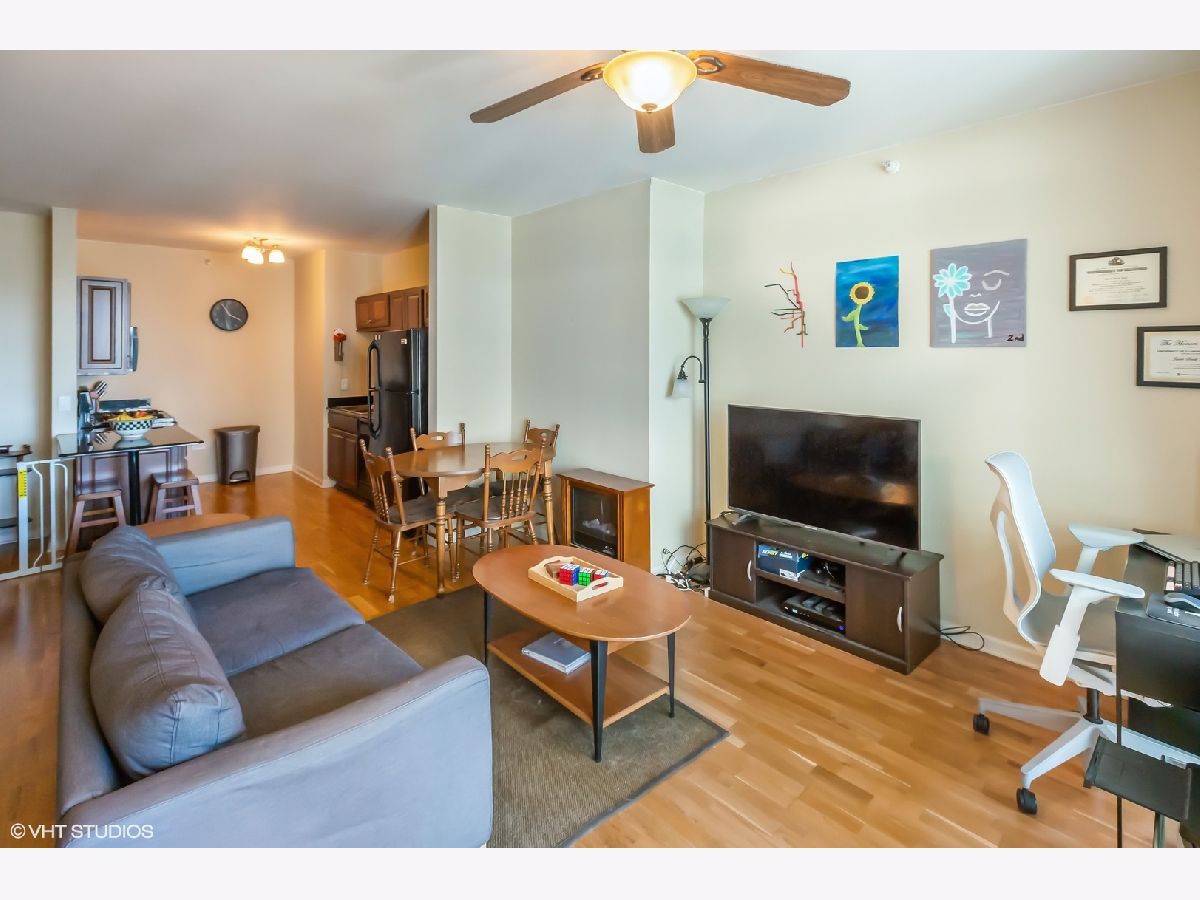 Welcome to your new home-a stunning one-bedroom, one-bathroom condo with an additional den, located in the highly desirable Park Alexandria in West Loop! As you enter this bright and welcoming space, you'll be greeted by a unique layout featuring an extra area perfect for a home office or a cozy retreat. The living room opens up to a private balcony, offering beautiful views just in time for Chicago's summer. For those who love to entertain, the open kitchen layout is perfect for hosting gatherings, with ample space for formal dining. The spacious bedroom comfortably fits a king-size bed and dresser. Convenience is key with in-unit laundry, and the building is packed with amenities including 24/7 door staff, a fitness center, a beautifully maintained sundeck, and a 9,000 sq. ft. private park complete with a dog run. You'll be just steps away from some of the best dining, shopping, and entertainment that Chicago has to offer. Close to the vibrant Fulton Market district and with easy access to the Loop, CTA, and Metra trains, your commute will be a breeze. An attached heated garage parking space is included in the price. Don't miss out on this gem!