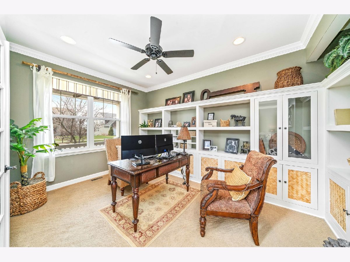 Here it is! The one you've been waiting for. Welcome to 125 Preakness Drive in Churchill Club. This Secretariat model is a stunner. You're greeted by a welcoming front porch with ceiling fans to bring in a gentle breeze. Upon entering through the beautiful front door with transom and full sidelights you can immediately see the pride of ownership that has gone into this home. Natural lighting abounds throughout this home with 9 ft ceilings throughout the first floor, (American four square elevation upgrade $21,000), and solid Eucalyptus wood flooring, crown molding throughout, wainscot and trim work. Solid core doors as well. Living and dining rooms flow nicely with each other. The living room features real wood shutter blinds and the first floor den with custom built ins could be 5th bedroom, office. 2nd floor loft offers even more flex space and possibilities. The gourmet kitchen speaks for itself. Granite counters, Merrillat maple cabinets, stainless steel appliances, double oven, 5 burner cooktop, huge walk in pantry. All appliances stay! Over sized breakfast area flows nicely into the inviting family room with solid wood ceiling beams and stone fireplace which can either burn wood or gas. Ceiling fans in almost every room. 1st floor laundry / utilty room will not disappoint especially since the 2021 front load washer and dryer on pedestals are included. Heading up to the 2nd floor you'll be impressed with the large loft area overlooking the living area below. Primary bedroom boasts a vaulted ceiling and full bath with deep tub, stand alone shower, and walk in closet. 3 additional bedrooms, all good size bedrooms along with a full bath off of the hallway round out the 2nd floor. Heading downstairs be prepared to be "Wowed" when you walk down to the full English basement with 9 ft ceilings. You're not going to feel closed in down here. Custom built ins, wired for surround sound, pool table stays, gorgeous full bathroom all done in travertine tile and is handicap accessible. Refrigerator in the basement stays. Plenty of storage area behind the sliding door. Rainsoft water softener system, new water heater in 2021. Watchdog sump battery backup. This basement has it all. Fully fenced backyard, concrete patio, and did I mention the 3 car heated, fully finished garage? Lift in the garage is negotiable. New roof in 2019. Churchill Club offers so much, 3 onsite schools, state of the art clubhouse over 10,000 square feet which includes a fitness center, game room, business center, locker room, lounge, plus outdoors offers swimming in the pools, splash pad, tennis, basketball, and volleyball courts. Walking and bike paths for your enjoyment as well as a sled hill in the winter. The list just keeps going. Churchill Club is an ideal location, close to downtown Oswego, easy drive to I88 and I55, Naperville, O'Hare. Photos of the clubhouse and amenities are coming but I wouldn't wait for them to come see this amazing property.