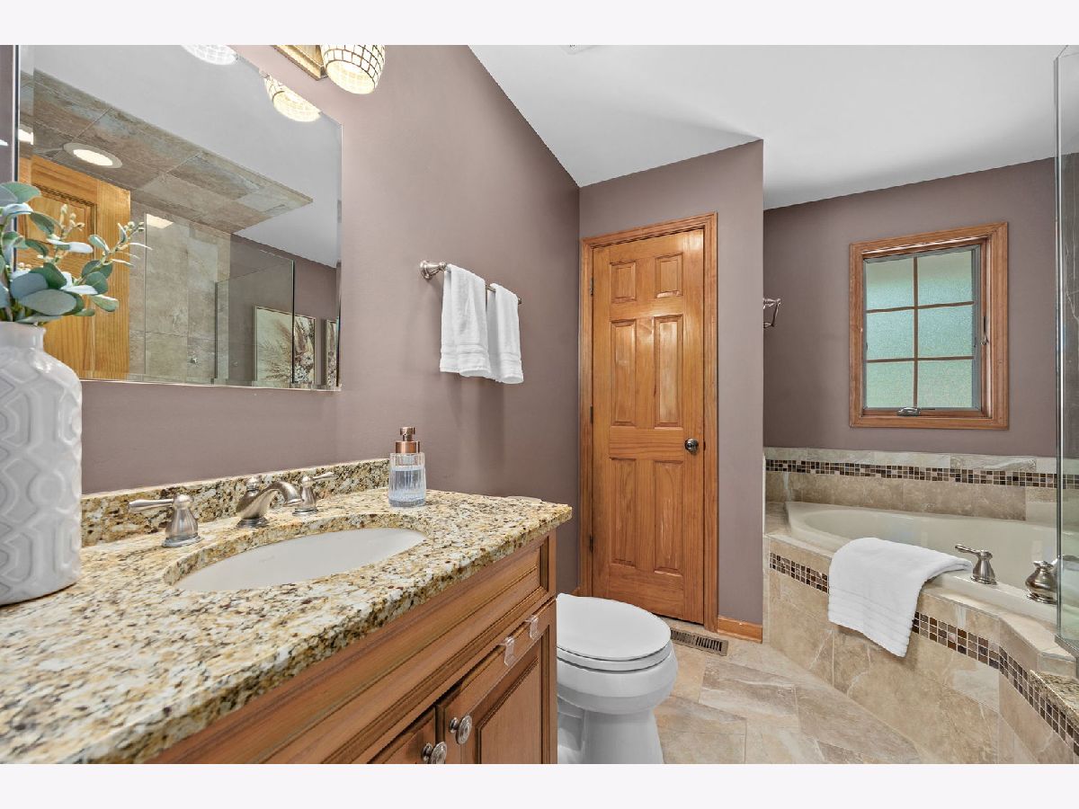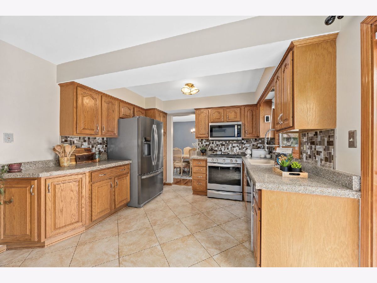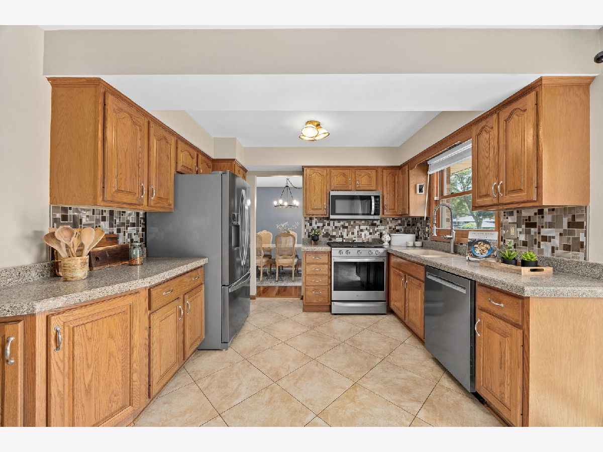 This well-maintained home shines with thoughtful updates and timeless style. Hardwood floors flow through much of the home, complemented by fresh paint, updated lighting, and an inviting layout. The updated kitchen boasts custom cabinetry, granite countertops, a double sink, pantry closet, and brand-new stainless steel appliances (2023). A separate dining room opens to the spacious living room, and sliding glass doors lead to a composite deck overlooking the large lot-perfect for outdoor entertaining. Upstairs, you'll find three bedrooms with custom closet organizers and an updated hall bath featuring a whirlpool tub and separate shower. The lower level offers a cozy family room with a wood-burning fireplace, a full updated bath, and a laundry/mudroom with newer washer (2024) and dryer (2023). There's also convenient access to a large crawlspace for additional storage. A 2-car attached garage adds even more storage and convenience. Major improvements provide peace of mind: roof (2023), furnace & A/C (2020), garage door (2020), Anderson windows (2014), upgraded electric (2010), attic insulation (2010), and siding (2007). Close to schools, shopping, bike paths, and the scenic Waterfall Glen Forest Preserve-this home truly has it all!