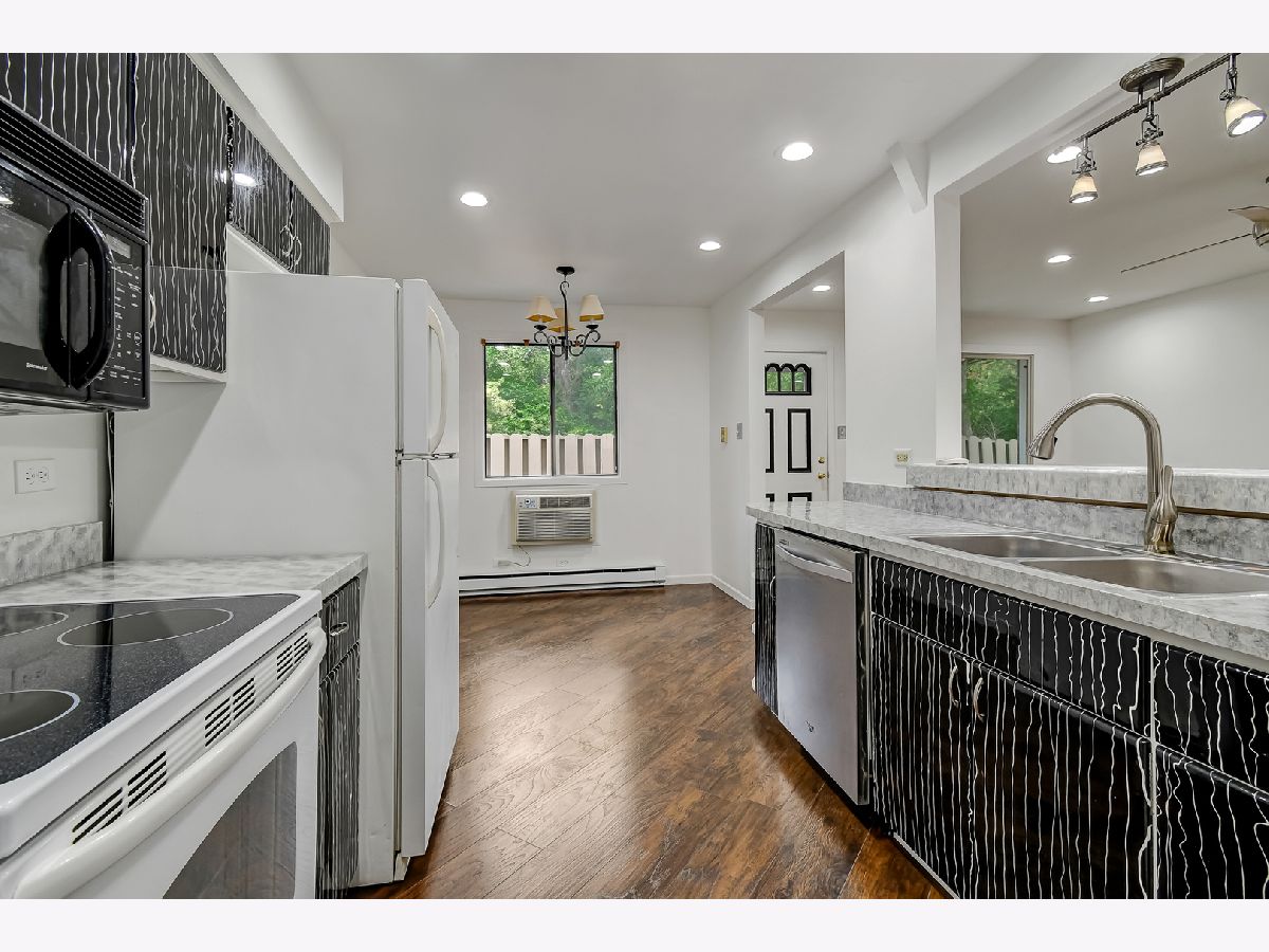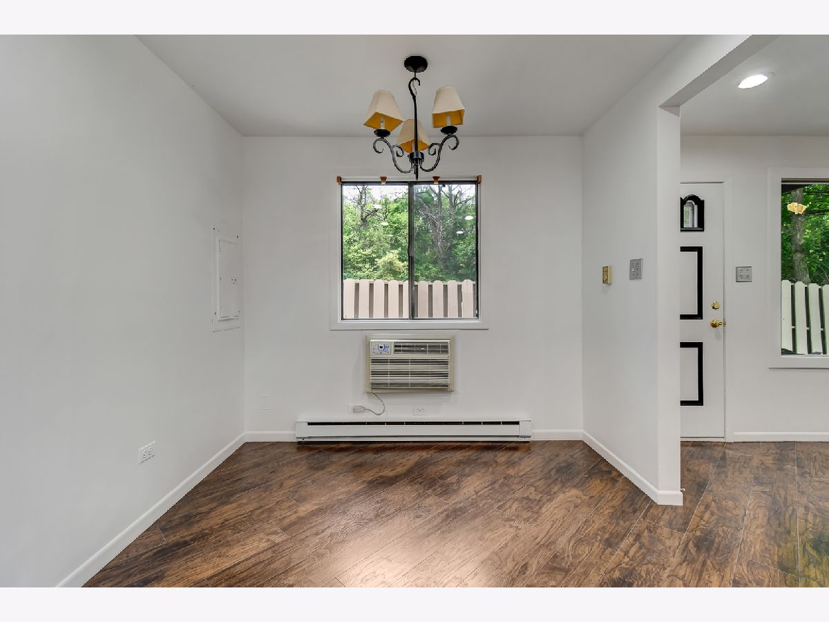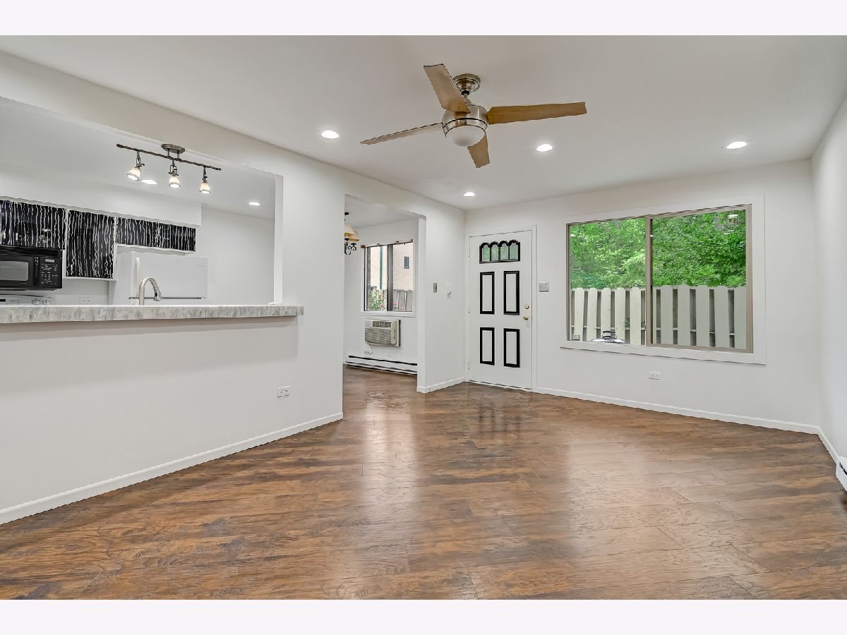 Freshly & extensively remodeled two story 2 bed/1.1 bath end unit townhome located w/all current neutral colors in amazing quiet location at the edge of a Paw Paw Forest Preserve! Features spacious living/dining rooms with wood laminate flooring, eat-in, updated, fully applianced kitchen. Unit is highly energy efficient w/an insulated attic, water efficient faucets/toilets & energy efficient LED lights throughout. Second floor features two large bedrooms w/wood laminate flooring, ceiling fans, updated bathroom. Primary bedroom w/two closets & sliding glass doors leading to a balcony. Ample storage & closet space, tons of usable attic storage space w/plenty of shelving & cabinets, full flooring throughout. Patio w/space for a grill, 2 parking spaces, low HOA fee, FHA approved. Great location away from the city life, yet less than 30 minutes to the city of Chicago. Major interstates I-55 & I-294 are minutes away. Near by shopping, groceries, Metra station, surrounded by nature, many bike, hiking trails & lakes. Absolutely darling!