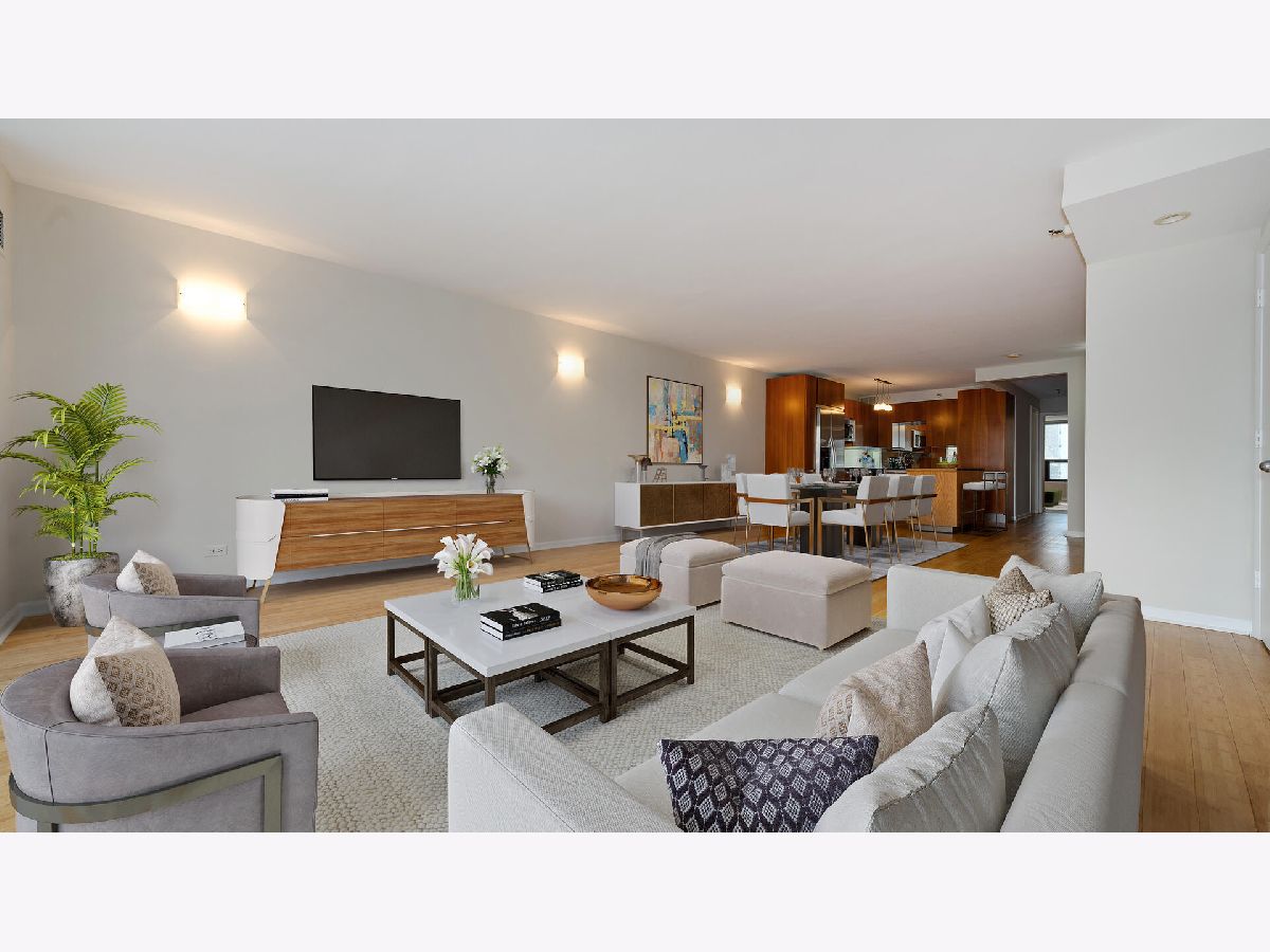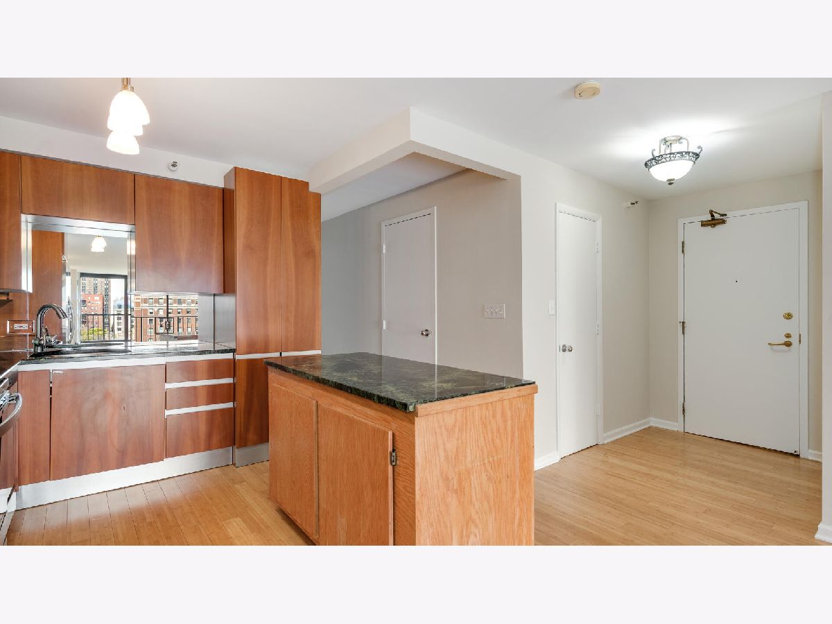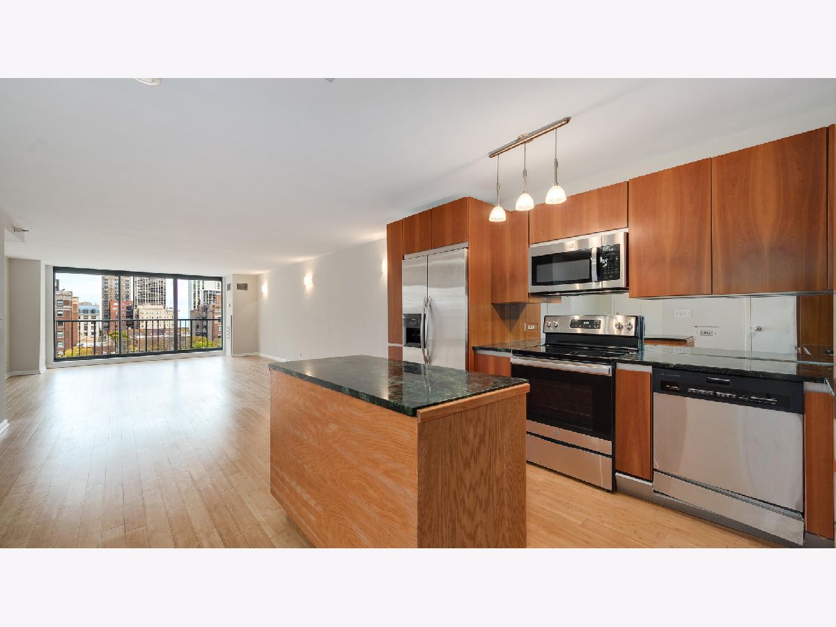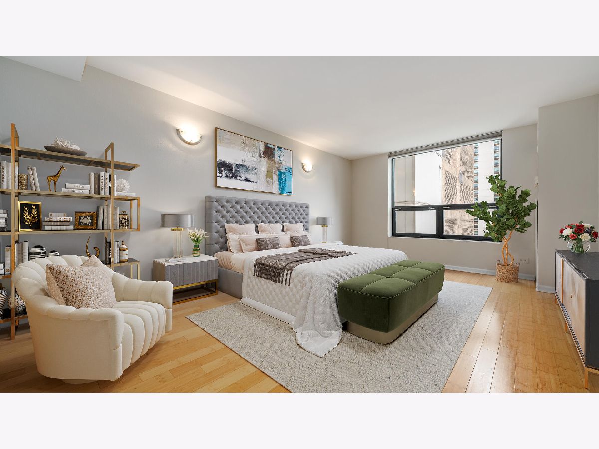 Elegant 2 Bedroom, 2 full bath condo on quiet tree lined street in prime heart of Gold Coast! This spacious 1,400 SF home features a bright, open Living / Dining room area. Kitchen has 42" cabinetry, granite counters, island with storage and GE stainless steel appliances. Nice sized primary bedroom with large en-suite bathroom with marble floors, has soaking tub, separate shower, glass tiled accents and vanity with stainless steel top. Updated guest bath with newer vanity and floors. Bamboo flooring and freshly painted throughout. Full amenity building features an expansive roof deck with amazing panoramic city and lake views, fitness center and 24 hr. doorperson. Washer/Dryer allowed to be installed. Location site plan available upon request. Dog friendly up to 25 lbs. Amazing location within a block of prime shopping, boutiques, award winning restaurants, lakefront beaches, trails and more! Only 2 blocks to Train, #22/Clark, #36/Broadway buses and divvy bikes provide you easy accessibility to all that Chicago offers. Wow!