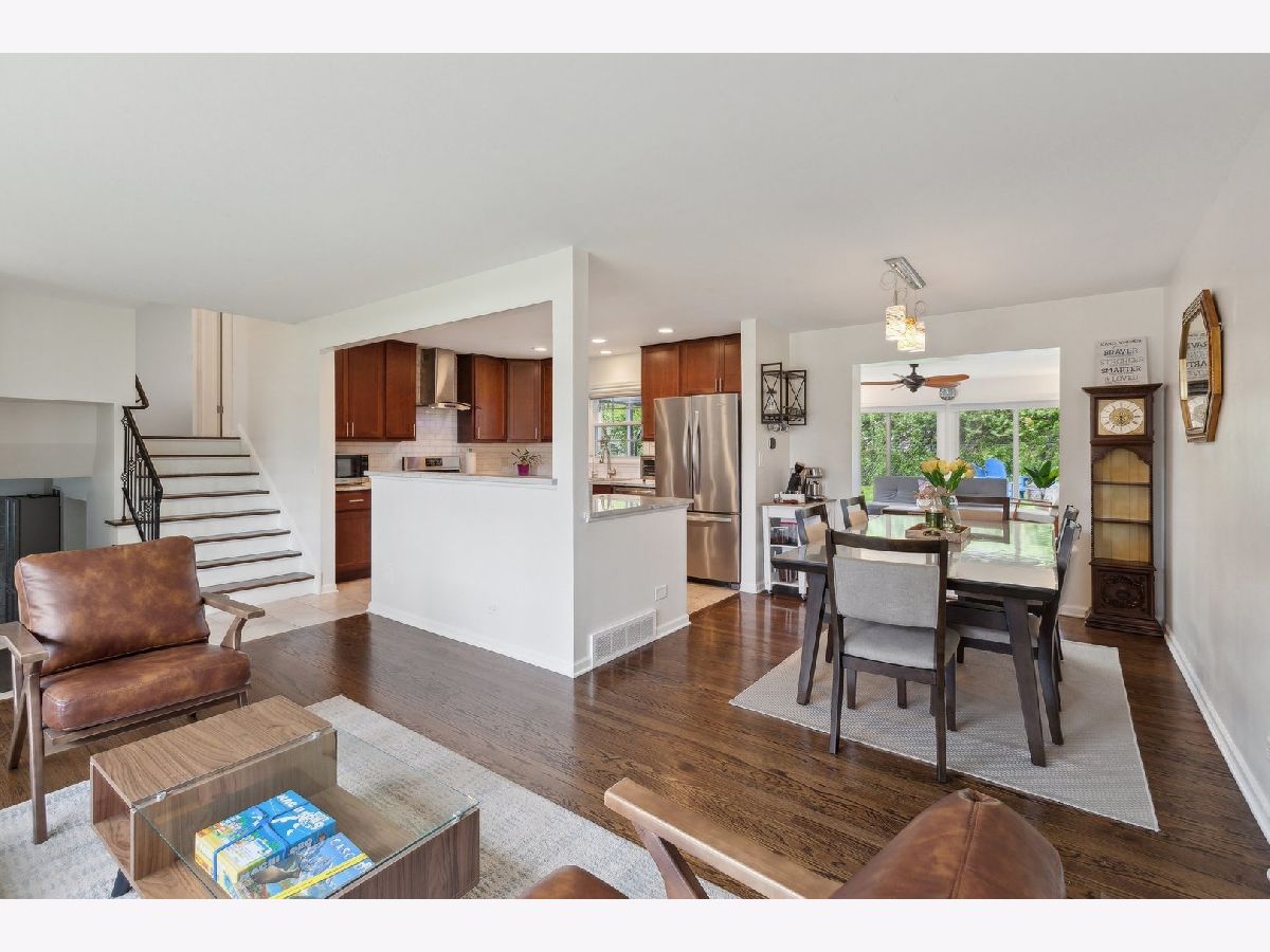 Welcome home to this enchanting three-story residence in Deerfield, IL. This beautiful home offers 2,152 sq. ft. of living space, including 3 bedrooms and 2 bathrooms. The home features a well-designed layout with multiple living areas across its three floors. The modern kitchen boasts rich wood cabinetry, stainless steel appliances, and a modern tile backsplash, complemented by bright granite countertops and a convenient and large dining area. A prime standout feature is the sunroom with a skylight and French doors leading to an outdoor patio, allowing abundant natural light to flood the space. The primary bedroom provides ample space for comfort. Throughout the home, you'll find a mix of carpeted and hardwood flooring, recessed lighting, and ceiling fans. The bathrooms feature granite countertops and modern fixtures. A finished basement offers additional living space, while the property's multiple staircases and hallways ensure easy navigation between floors. Enjoy low electric bills thanks to solar panels and an EV charging outlet in the garage. Recent upgrades include a louvered pergola (2024), fenced yard, smart holiday lights, smart switches, and motorized blinds. With its combination of modern amenities and thoughtful design, this Deerfield home presents a comfortable and functional living environment. Enjoy all of these features in a prime location close to Deerfield square, for a wide variety of high-end retail stores, fine dining restaurants and parks. Only 4 minutes to the Metra and a great school district. Schedule your tour today!