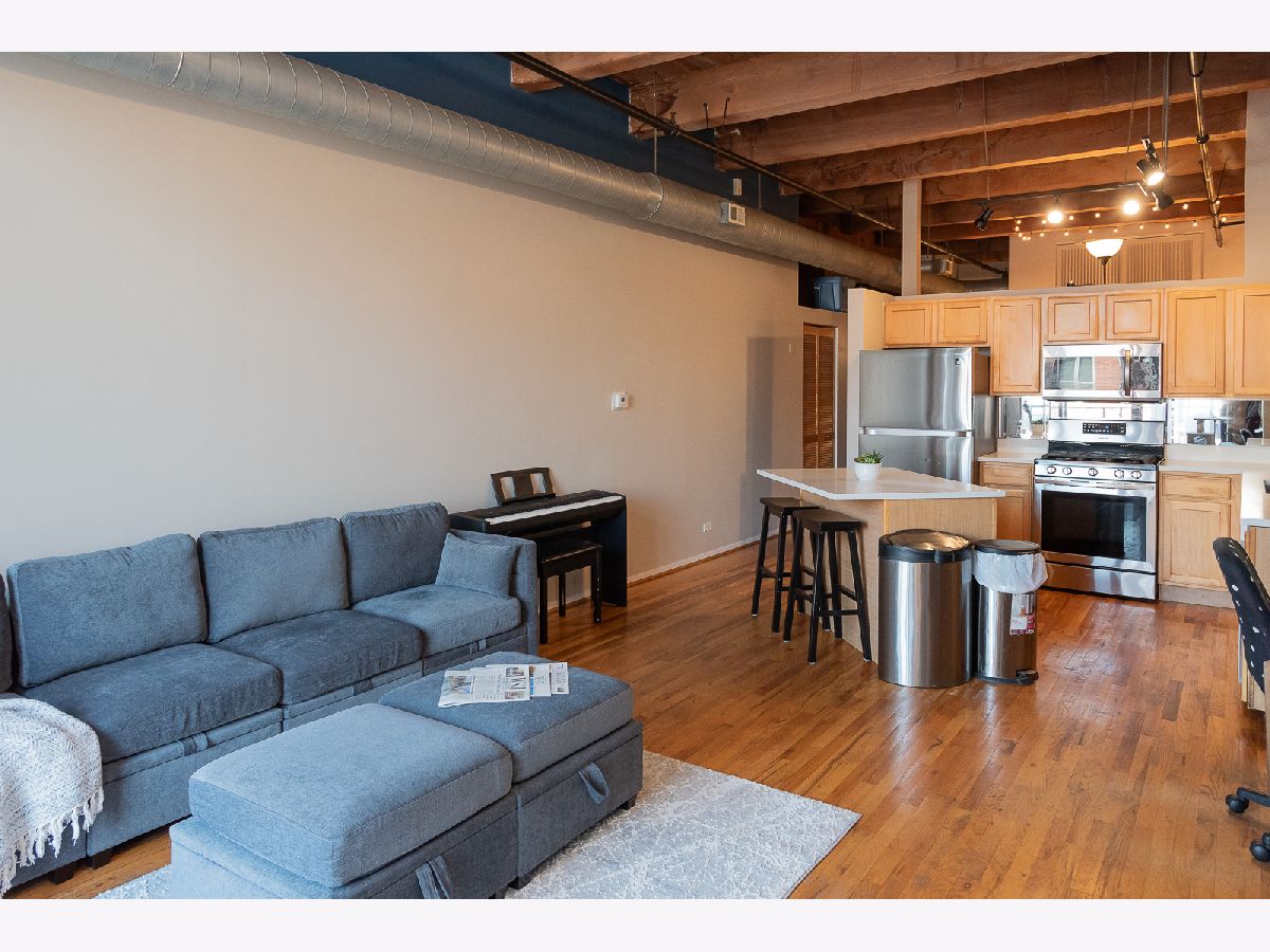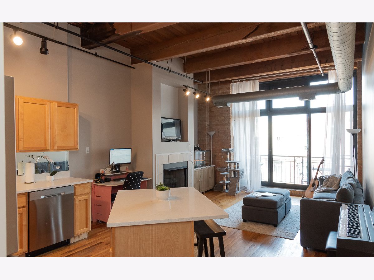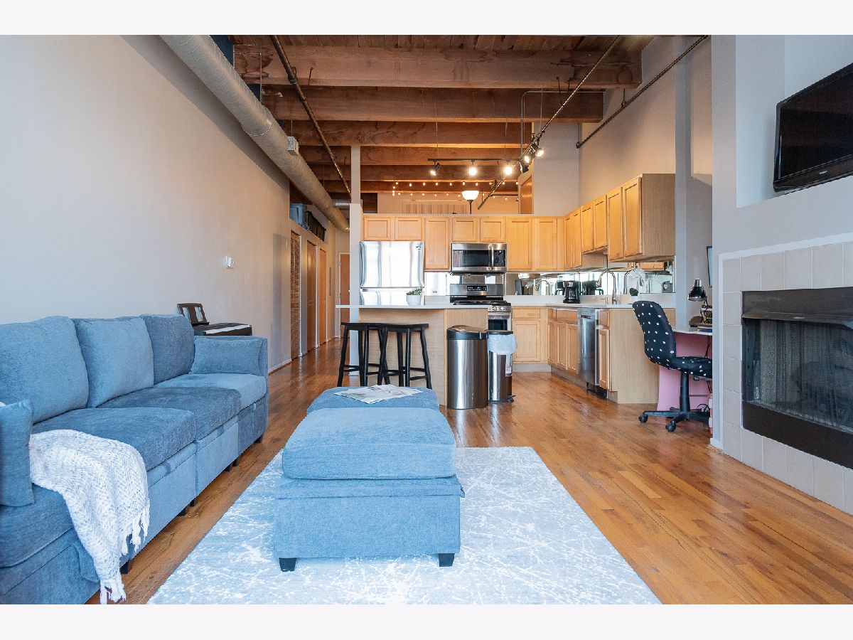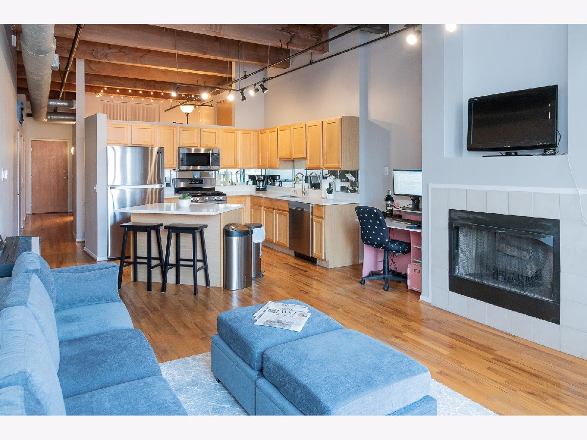 Step into this stunning MOVE-IN READY approximately 800 sq. ft. one-bedroom loft condo conversion located in a classic warehouse building with exposed brick and heavy timber details. The soaring 14 ft ceilings create a sense of spaciousness, while the private balcony offers quiet, expansive northern exposure views. Cozy up beside the gas fireplace, and entertain effortlessly in the OPEN CONCEPT kitchen and living space with new white quartz countertops, a spacious island, and stainless-steel appliances. This inviting loft also features convenient IN-UNIT LAUNDRY, abundant closets and in-unit elevated storage plus additional storage cage. The living space boasts gorgeous hardwood floors and a home office nook, while the large bedroom offers brand new carpet for added comfort and fits a king sized bed with nightstands and dresser. Stay comfortable year-round with central heat and air conditioning. Great investment with United Center Redevelopment coming! LOW HOA, 6-month minimum lease term and no rental cap, this professionally managed building offers bike storage and on site garage transferrable one year leased PARKING INCLUDED. Located in the vibrant West Loop, this home is close to public transportation, highways I-290 and I-90/94, Skinner Park, Whole Foods, Target, Rush Hospital, Mariano's, Greek Town, Restaurant Row on Randolph Street, Fulton Market, dining, shopping, nightlife, UIC, Medical District. Don't miss out on this incredible opportunity to experience the best of city living!