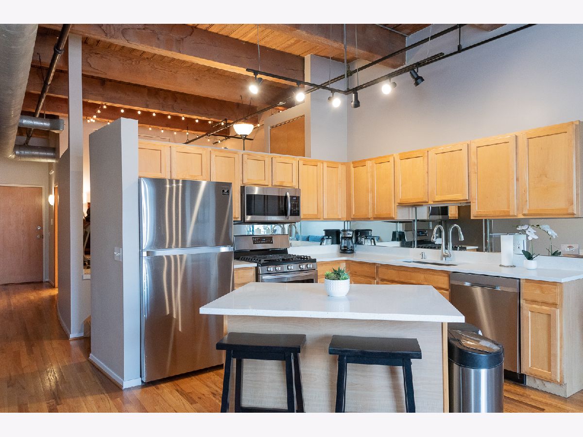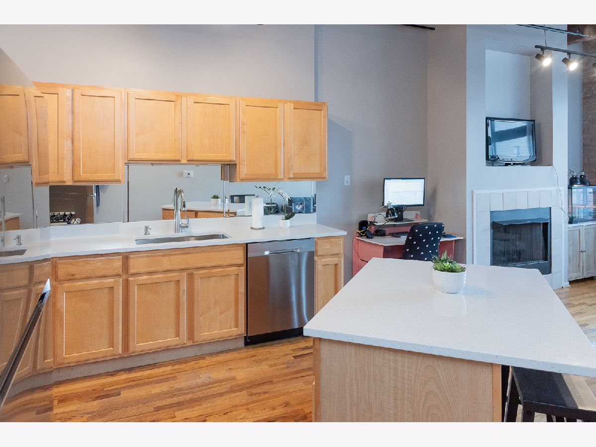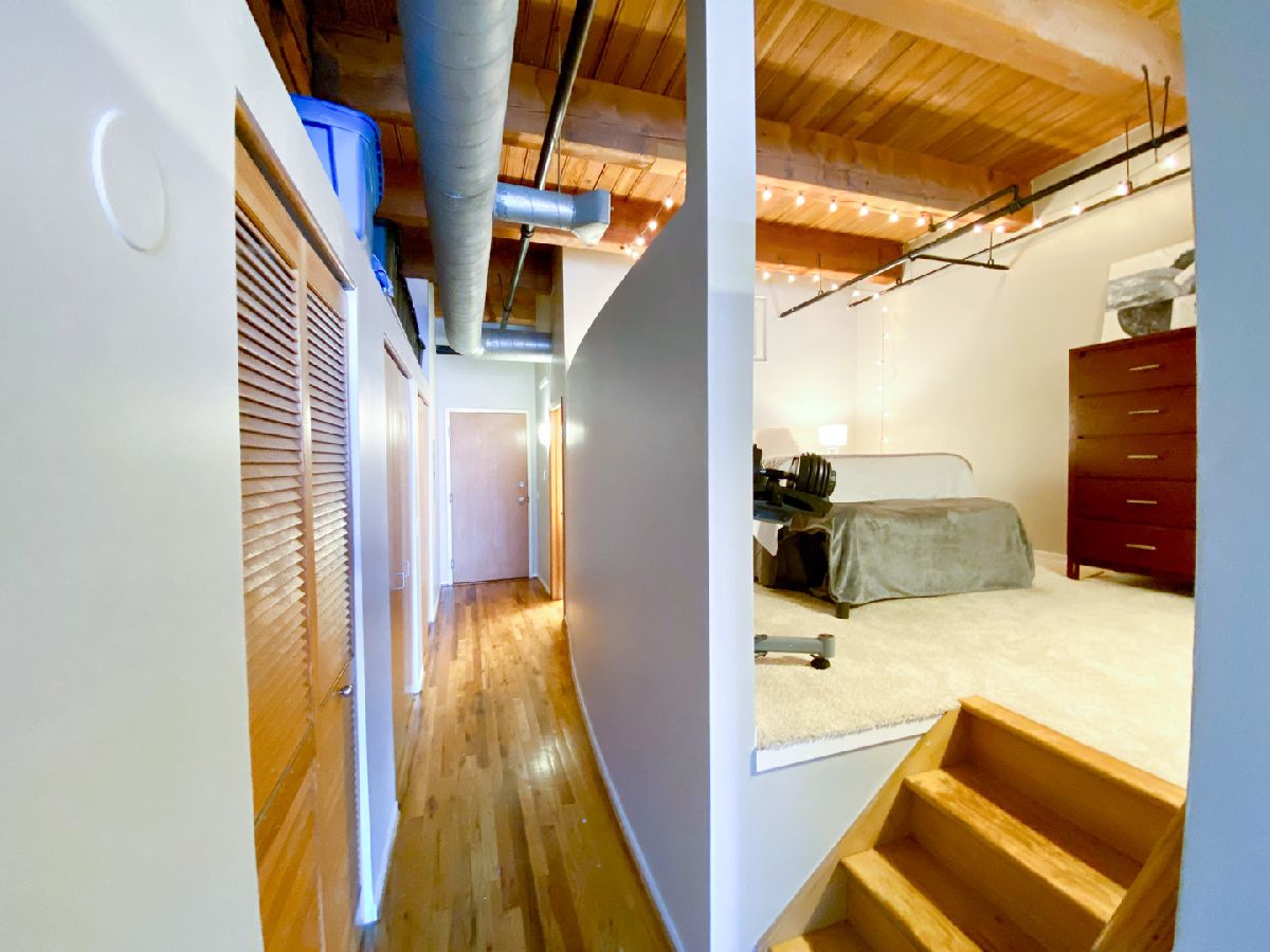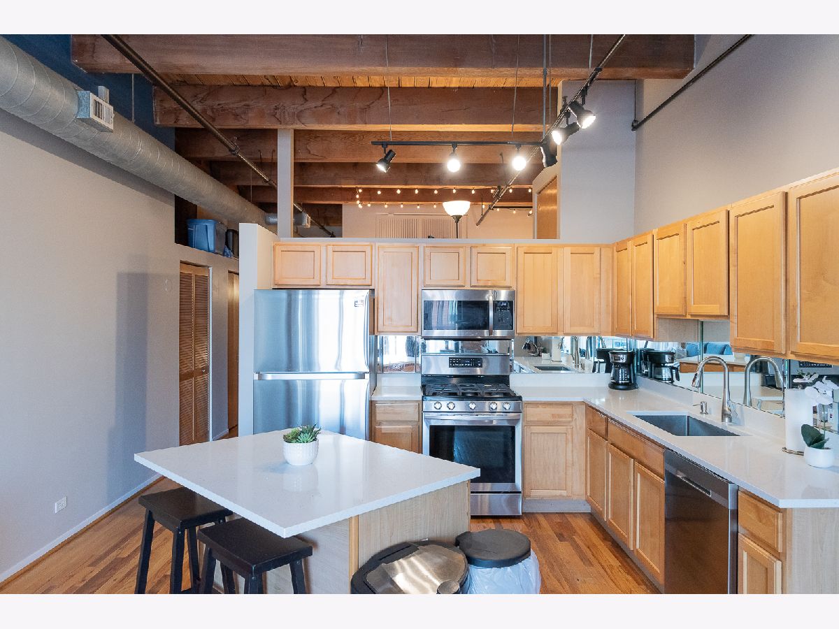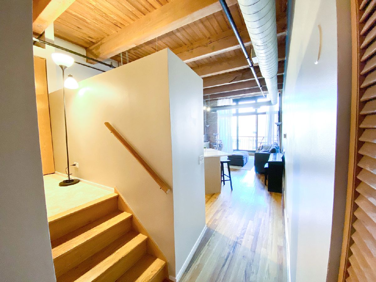 Step into this stunning MOVE-IN READY approximately 800 sq. ft. one-bedroom loft condo conversion located in a classic warehouse building with exposed brick and heavy timber details. The soaring 14 ft ceilings create a sense of spaciousness, while the private balcony offers quiet, expansive northern exposure views. Cozy up beside the gas fireplace, and entertain effortlessly in the OPEN CONCEPT kitchen and living space with new white quartz countertops, a spacious island, and stainless-steel appliances. This inviting loft also features convenient IN-UNIT LAUNDRY, abundant closets and in-unit elevated storage plus additional storage cage. The living space boasts gorgeous hardwood floors and a home office nook, while the large bedroom offers brand new carpet for added comfort and fits a king sized bed with nightstands and dresser. Stay comfortable year-round with central heat and air conditioning. Great investment with United Center Redevelopment coming! LOW HOA, 6-month minimum lease term and no rental cap, this professionally managed building offers bike storage and on site garage transferrable one year leased PARKING INCLUDED. Located in the vibrant West Loop, this home is close to public transportation, highways I-290 and I-90/94, Skinner Park, Whole Foods, Target, Rush Hospital, Mariano's, Greek Town, Restaurant Row on Randolph Street, Fulton Market, dining, shopping, nightlife, UIC, Medical District. Don't miss out on this incredible opportunity to experience the best of city living!