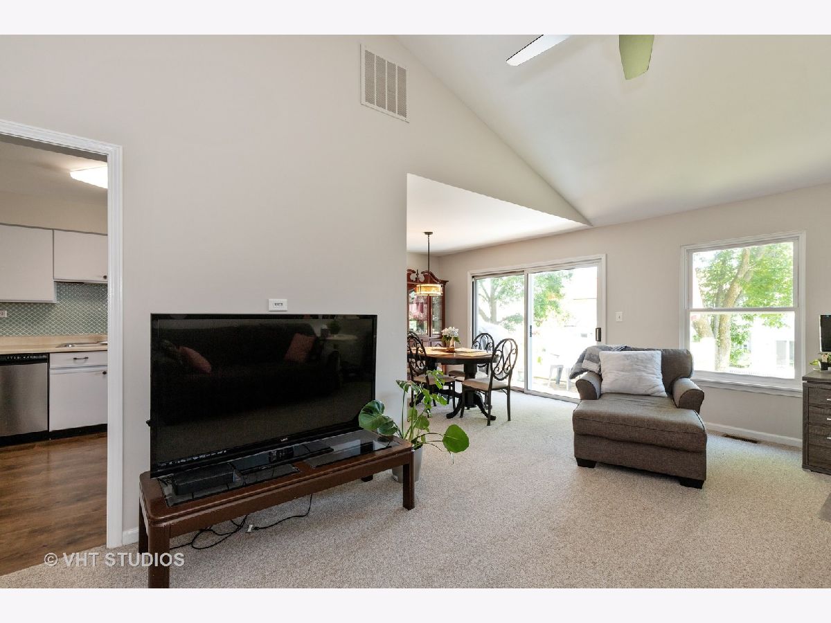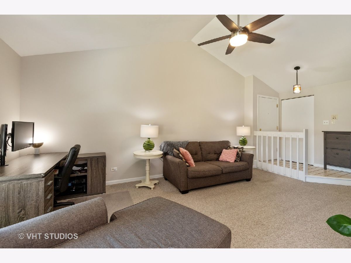 Second story condo in desirable Cambridge Chase. Bright and sunny unit. Soaring vaulted ceiling in the living room. Spacious eat in kitchen with newer flooring, pantry and stainless steel appliances. Dining room with sliders to large balcony with room for table, chairs, grill and relaxation! Master bedroom with walk in closet and full bathroom. Second bedroom with walk in closet. Laundry room in the unit. Newer roof, siding & windows. Freshly painted. Ideal location close to major highways, shopping & schools. Complex offers pool & clubhouse. Vernon Hills school district. So much to love about this rarely available unit!