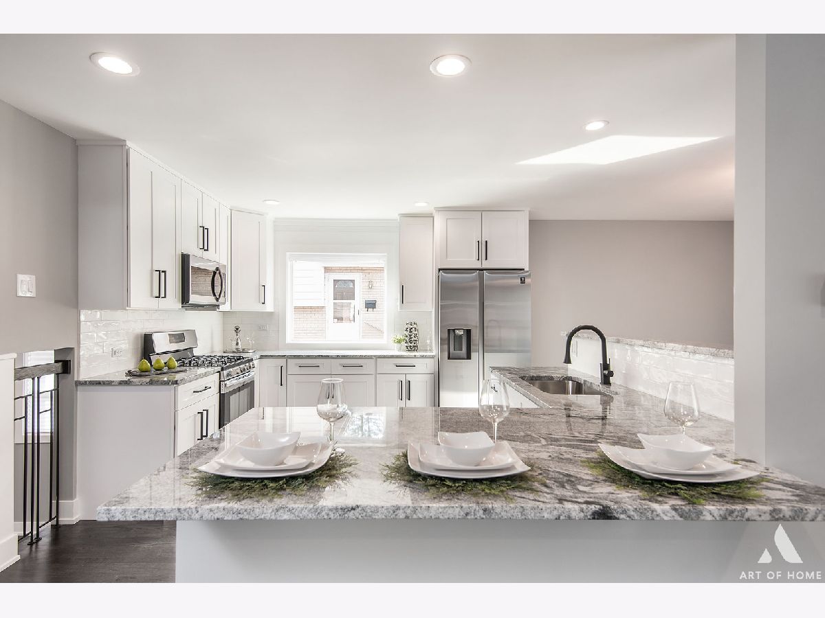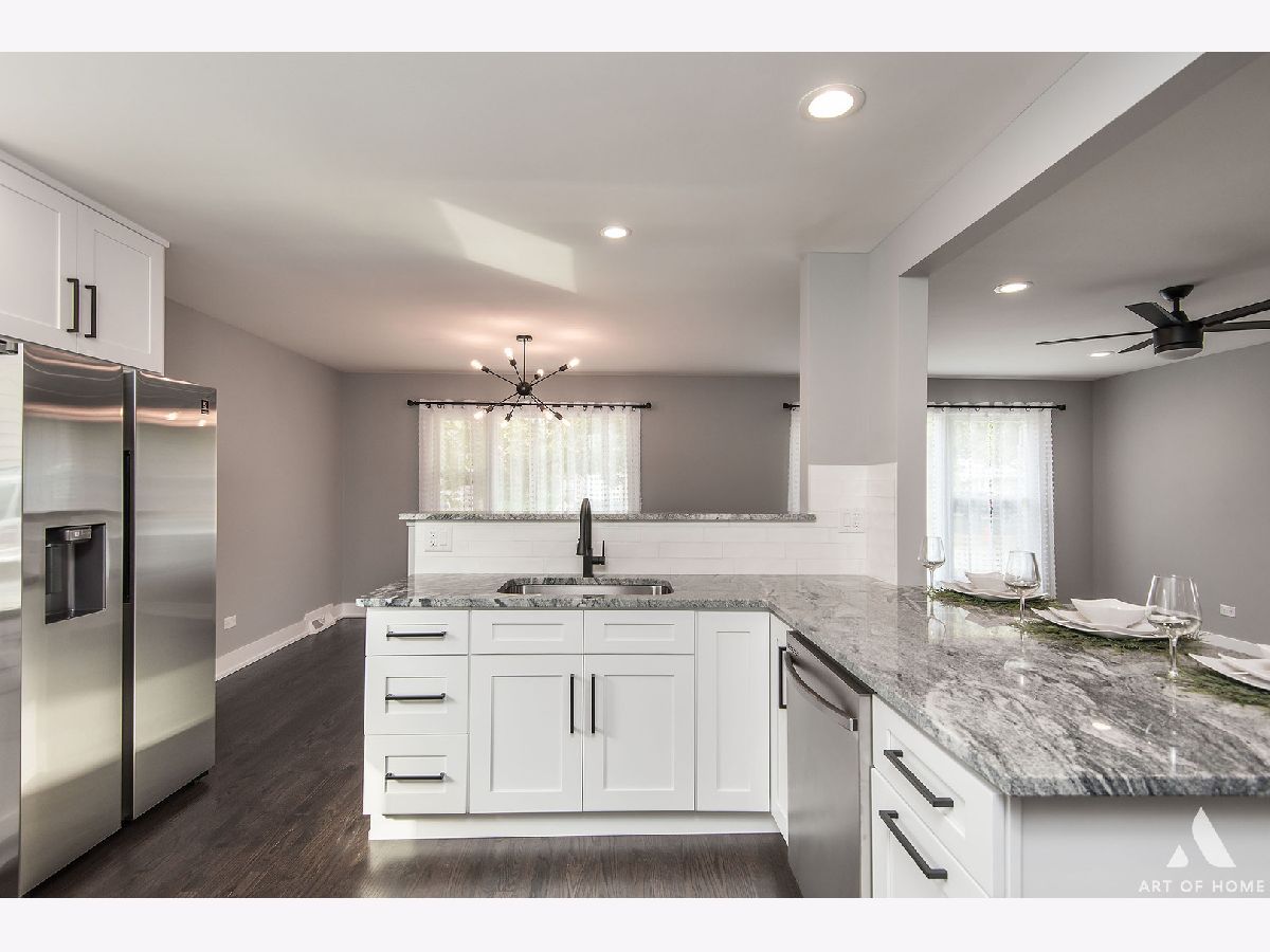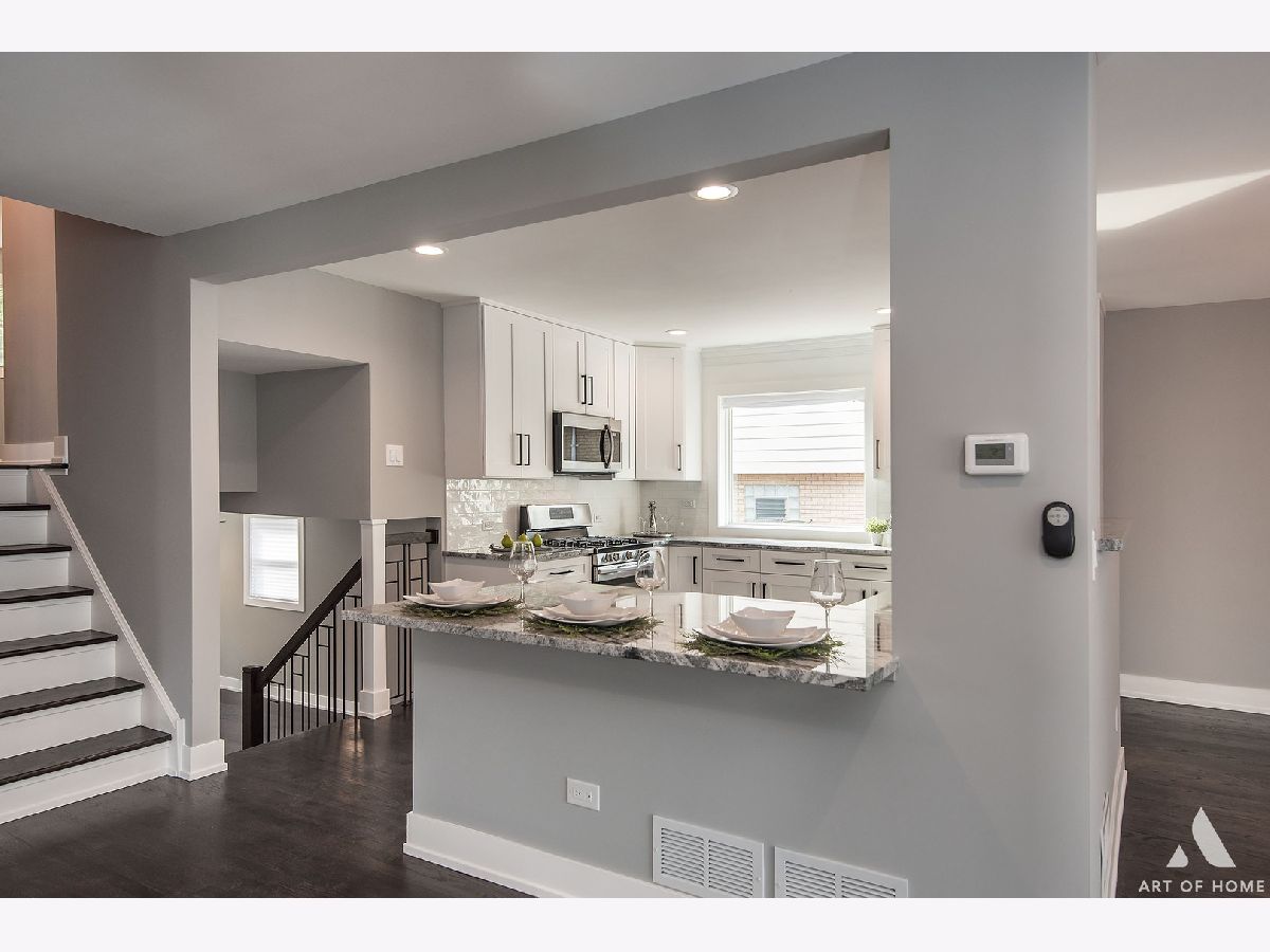 Gorgeous fully remodeled 3 bedroom, 2 bathroom tri level. Open concept kitchen with white shaker cabinets, granite countertops and stainless steel appliances. Contemporary light fixtures and natural sunlight throughout the home. Lower level features family room with electric fireplace , full bath and beautiful mudroom. Newly refinished hardwood floors, new windows ,new siding and endless other upgrades! Great location! Minutes away from shopping, expressway ,Metra station and more. A must see! Schedule your showing today!