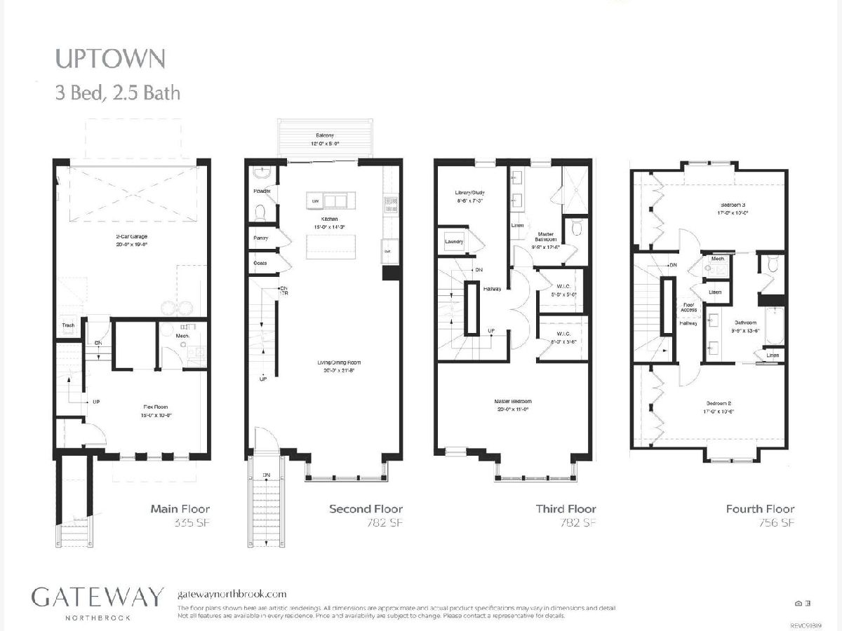 Welcome to Gateway Northbrook! City-inspired town homes in the perfect suburban setting, located only 25 minutes from the Chicago Loop! Great location, walkable to beautiful downtown Northbrook and the Metra! The Uptown has over 2,500 sqft of living space, and features a functional open-concept floor plan with modern finishes. End-unit model with tons of windows that bathe the home in natural sunlight. Luxury Vinyl Plank flooring and recessed lighting throughout. Spacious combined living and dining room flows into the kitchen, which has quartz countertops, 42" cabinetry, stainless steel appliances, and two center islands - one prep island with a sink, and an additional island with breakfast bar seating. Private balcony perfect for enjoying your morning coffee. Upstairs, the primary suite includes two walk-in closets and a private en suite bath with a double sink vanity, a linen closet, and a huge step-in shower. Loft space could function as a home office, or whatever suits your needs! Convenient 2nd floor laundry. On the third level of the home, you'll find two large bedrooms which share a Jack & Jill bathroom. Lower level flex space exits to the attached two-car garage. Enjoy low-maintenance living with the association handling all lawn care, landscaping, and snow removal. Steps to Village Green Park, and just an 8 minute walk to downtown Northbrook and the Metra. A 5-minute drive to 90/94. Award winning schools. This is a rare opportunity to enjoy the perks of peaceful suburban living while still having convenient access to all that the city has to offer... WELCOME HOME!