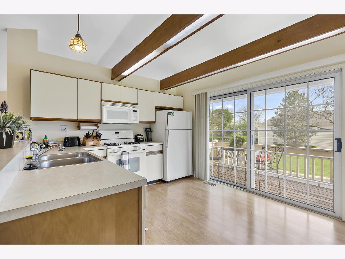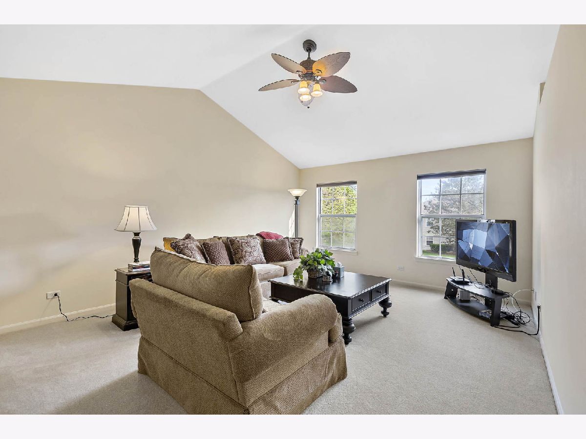 Great second floor condo, end unit. Open design with a vaulted ceiling in the living room. Kitchen has sliders to a deck. Large main bedroom with a walk in close and full bath. In unit laundry room. All appliances included. Walk to clubhouse and pool. Vernon Hills schools.