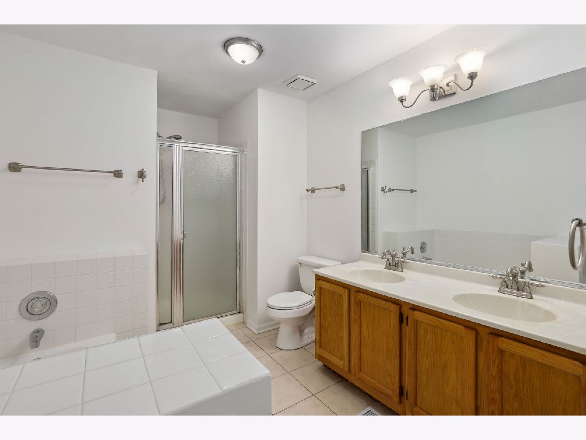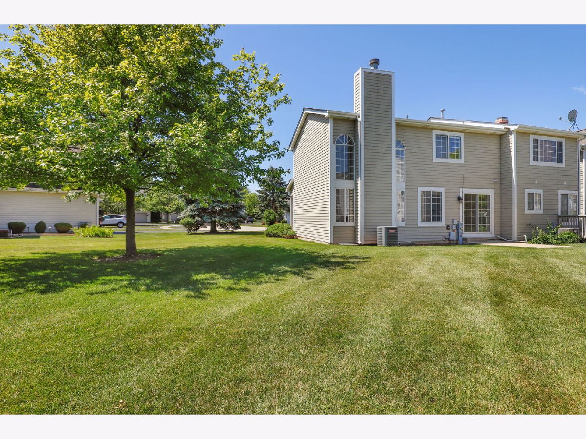 Welcome home to your bright and sunny 2 BR, 1.5 Bathroom end unit townhome where there's nothing left to do but move in! You are welcomed into the home's living/dining room combo that boasts elevated ceilings, wood laminate flooring and a cozy fireplace surrounded by floor to ceiling windows. The kitchen offers granite countertops, pantry, eat-in area and plenty of cabinets for ample storage. Upstairs, you'll find 2 generously sized BRs and a large jack-and-jill bathroom with dual sinks, soaker tub and step-in shower. The finished basement offers more space to address your living and storage needs, with a large common area complete with bar and sink as well as a smaller storage room. Enjoy the outdoors on your patio and in the large common area adjacent to the home, just in time for summer. Furnace new 2021. So close to schools, shopping, parks/paths, expressways, Metra and so much more!