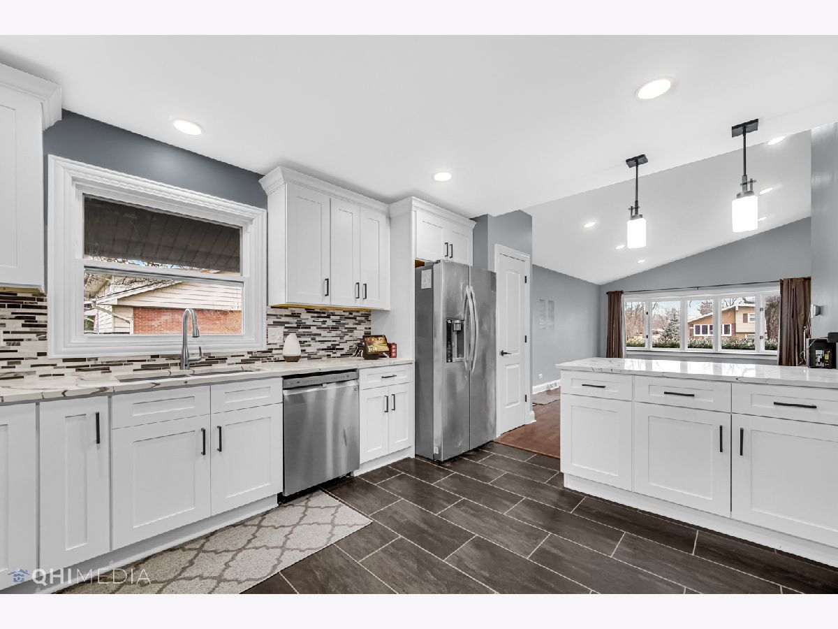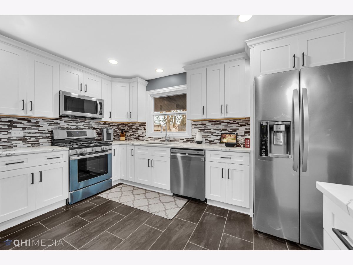 3 bed 2 bath split level house with tons of new! Enter the front door and be welcomed by a spacious living room with vaulted ceilings. It shares a nice open concept with the kitchen which was fully remodeled with flooring, cabinets, counters, backsplash, appliances, and windows. Upstairs are 3 nice sized bedrooms all with hardwood floors. Second level bathroom fully remodeled with flooring, vanity, toilet, and shower tile. All hardwood floors in living room and bedrooms were sanded and refinished. Trim work, interior doors, and light fixtures have been updated throughout. Lower level rec room completeley redone with flooring, recessed lighting, and paint. New roof on north side of house. Upgraded electric panel. Close to 1800 total finished square feet with including the lower level. Finishing touches still in the works. Close to dining, shopping, and transportation. A perfect place to start off the New Year and call it your HOME!