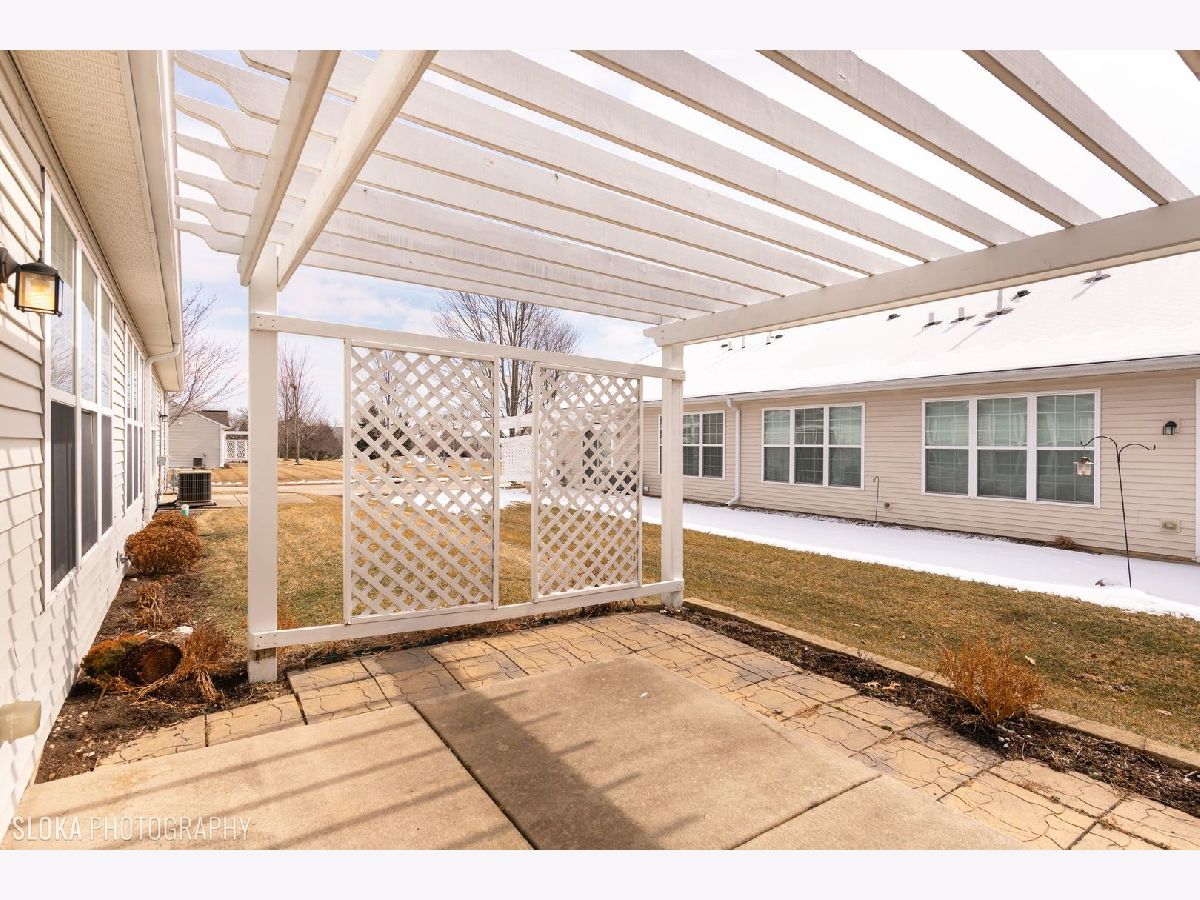 You will love the location and high end finishes in this savoy! You will enjoy maintenance free living in this 2 bedroom 2 full bath home. Beautiful kitchen with cherry cabinets, granite countertops and newer stainless appliances. Newer hardwood laminate flooring throughout the main living area makes this open concept floor plan so bright and enhances the open feeling. Master suite, with tray ceiling, ceiling fan, huge walk closet and private master bath with dual sink cherry cabinet vanity. Second bedroom for guests or use as an extra sitting room, office or so much more. Relax or entertain on the extended pergola covered patio with no neighbors behind - a very private location! Brand new washer. Extra deep garage with shelving and room for storage. Extra blown in insulation recently added to the attic. There is nothing to do here but move in and enjoy the Del Webb lifestyle complete with golf, swimming, tennis, dining and so much more. Close to downtown Huntley and I-90 for easy travel.