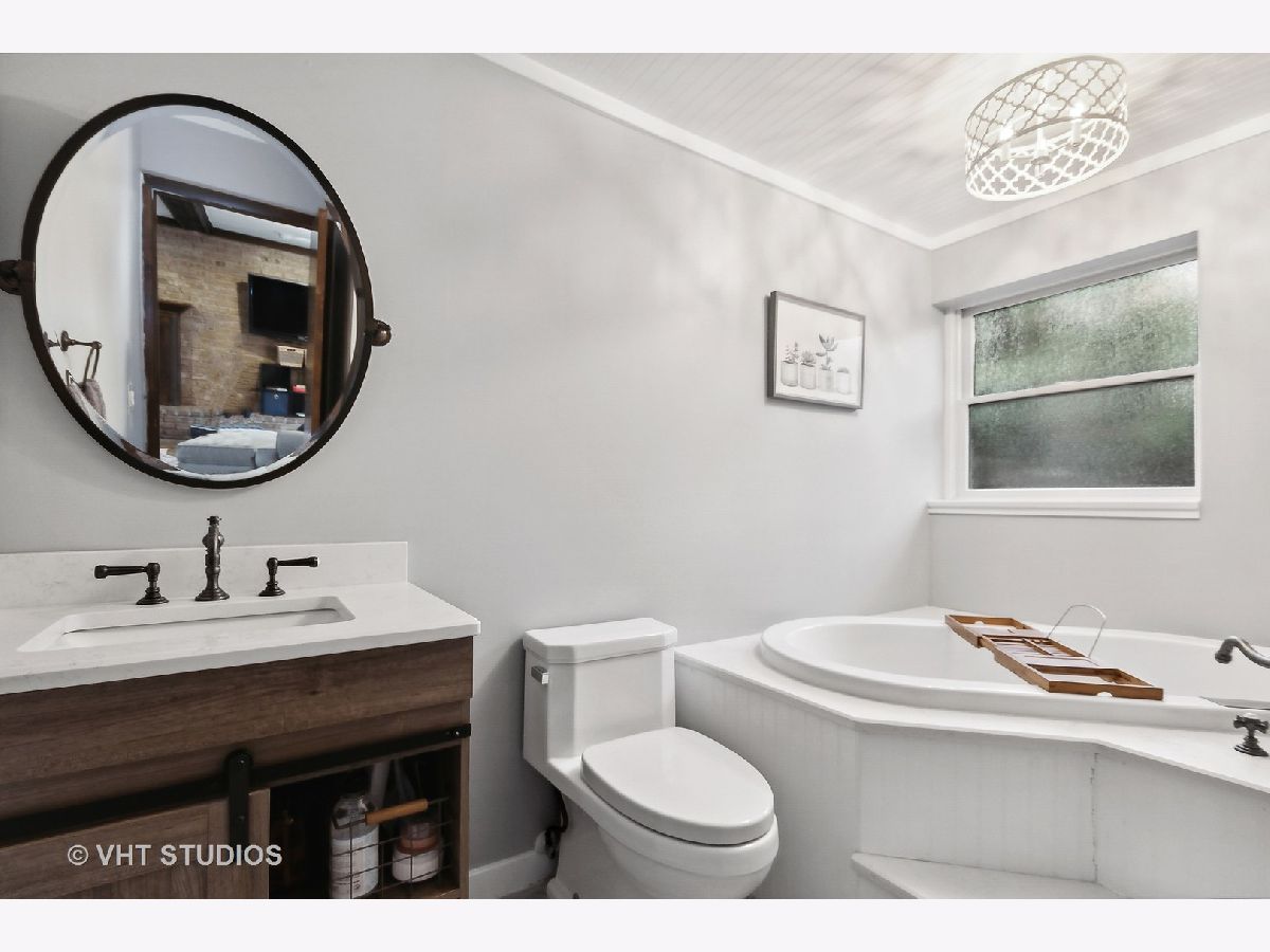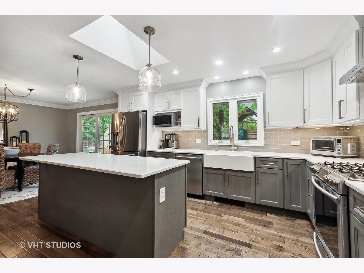 Escape to paradise! A private, tranquil setting is the backdrop for this lovely home set in a great neighborhood! Beautifully updated with a fully renovated kitchen, fabulous open floor plan, newer hardwood floors, beamed ceilings, cozy fireplaces and beautiful crown moldings, you will fall in love the moment you step inside. The spacious, light filled living room welcomes you and opens to the delightful dining / eating area with gorgeous views of the rear yard from French door sliders. The kitchen is a dream with custom Forevermark cabinetry, quartz counters, farmhouse sink, stainless steel appliances and a skylight that fills the room with sunlight. A large primary bedroom with access to hall bath and two well-appointed secondary bedrooms are found on the second level. The family room oozes rustic charm with heated brick flooring, wood burning fireplace, office area, full bath and sliders leading to the picturesque patio. Sub-basement offers great storage space as well as laundry & work room. The fully fenced rear yard is the ideal place to enjoy backyard barbeques and fun with friends and family with large patio, lush landscaping and ample space to play. Set in a fantastic location offering privacy and beautiful views of nature with easy access to town, train, shopping, restaurants and highways. Enjoy low unincorporated Cook County taxes and nearby Deer Grove Forest Preserve offering miles of hiking trails. Located in award winning Barrington school district! Meticulously maintained inside and out, this wonderful home awaits you!