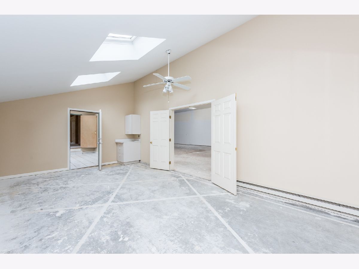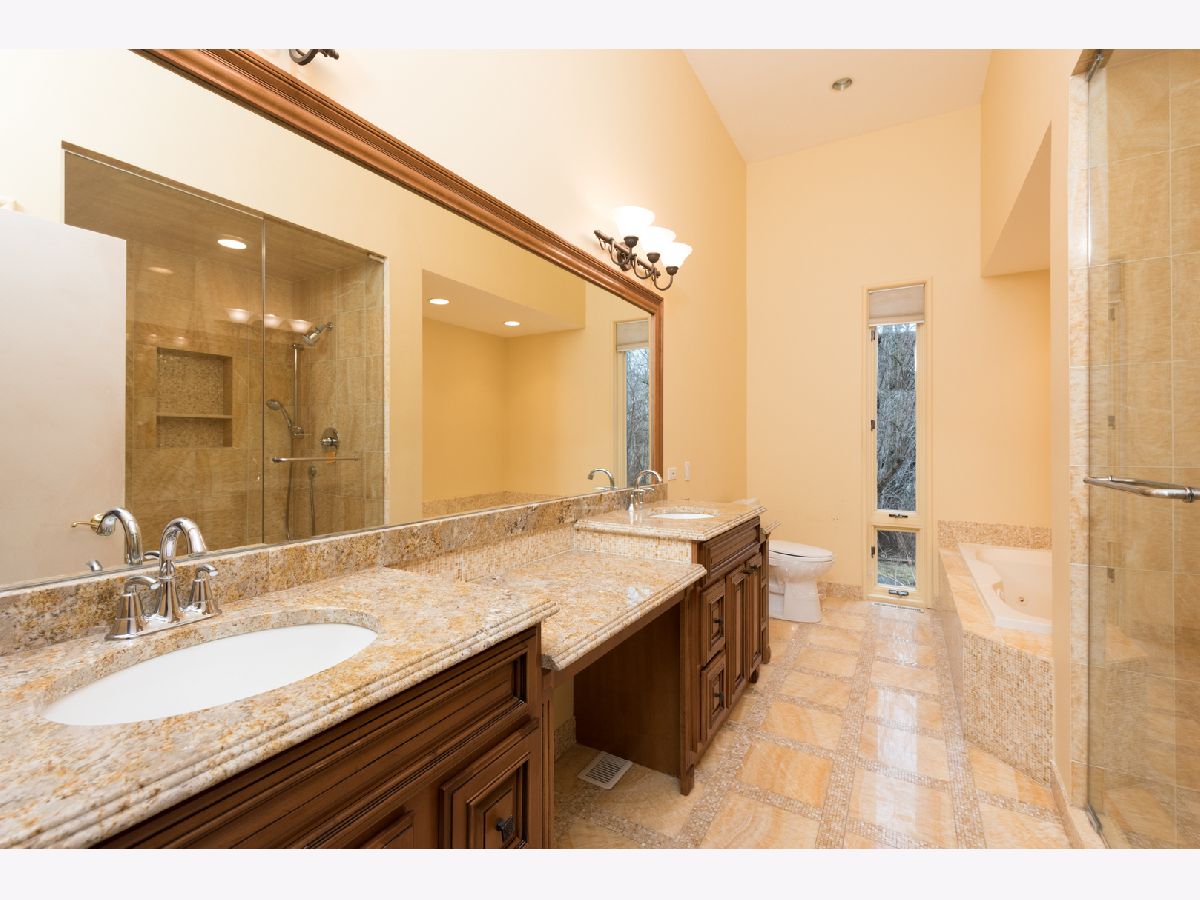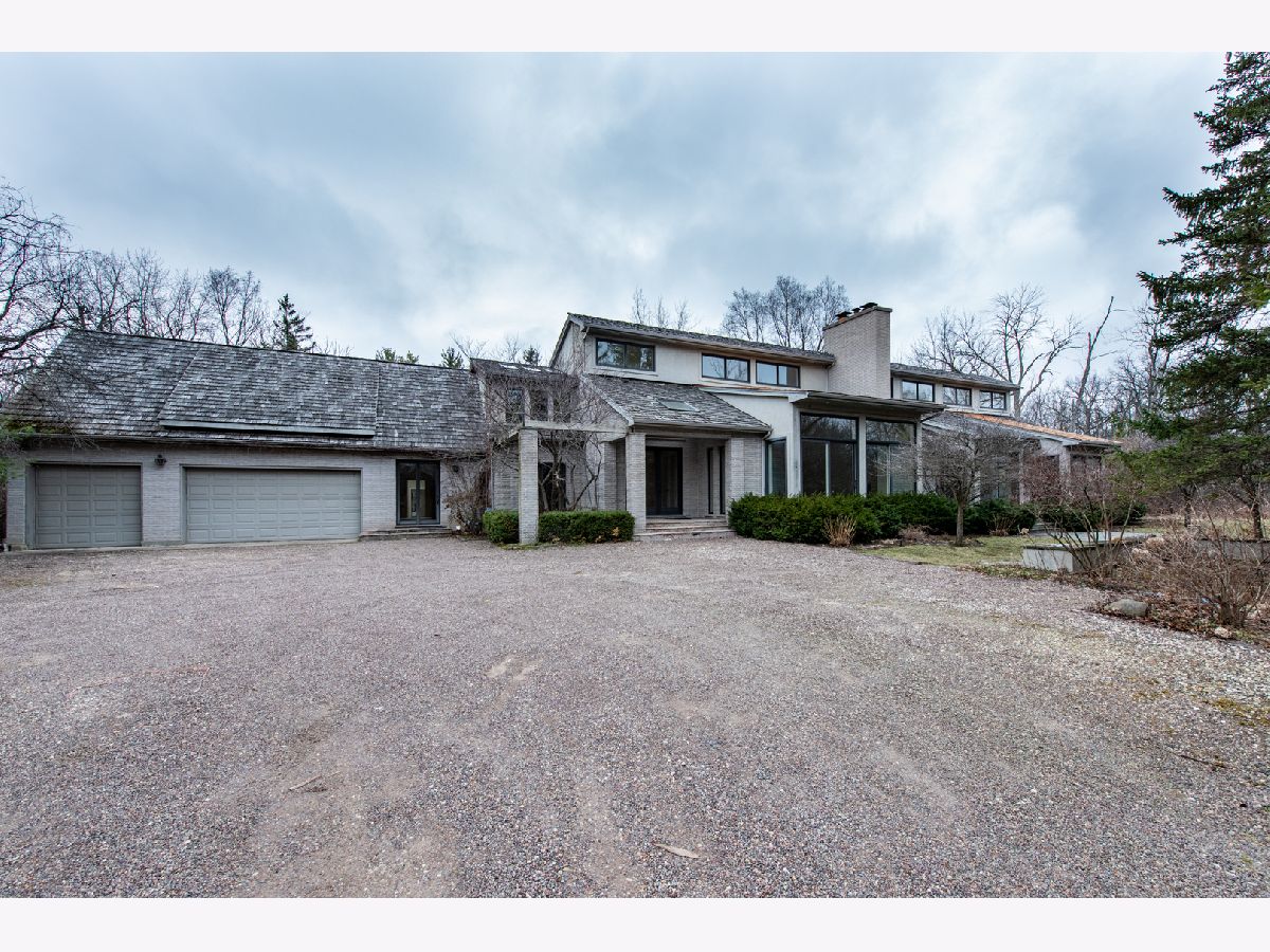Incredible opportunity for this bank-owned contemporary home. This light filled residence has 6340 SF with soaring ceilings and dramatic living space. Features a gourmet kitchen with center island, granite countertops, high-end stainless appliances, and breakfast room. Spacious living room has wet bar and fireplace, and opens to dining room with fireplace. Library with fireplace opens to spacious family room. Two 1st floor ensuite master bedrooms, plus two bedrooms and bath on second floor. Master features HIS & HERS baths, 2 huge walk-in closets and a study with fireplace. Large mud room and laundry room off of the kitchen with access to sunroom and exercise room. Finished lower level has recreation room. For the car enthusiast, there is an impressive 9 car garage all tucked away on a private 1.5 acre lot with brick paver patio & lovely bluestone terrace. A private retreat in a great walk to Metra & shops location. Incredible value! 100% Tax Proration. Sold in AS IS condition.