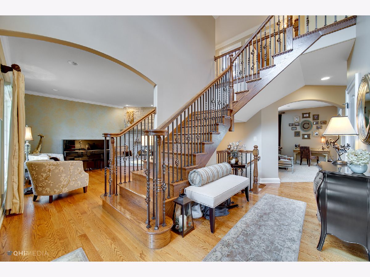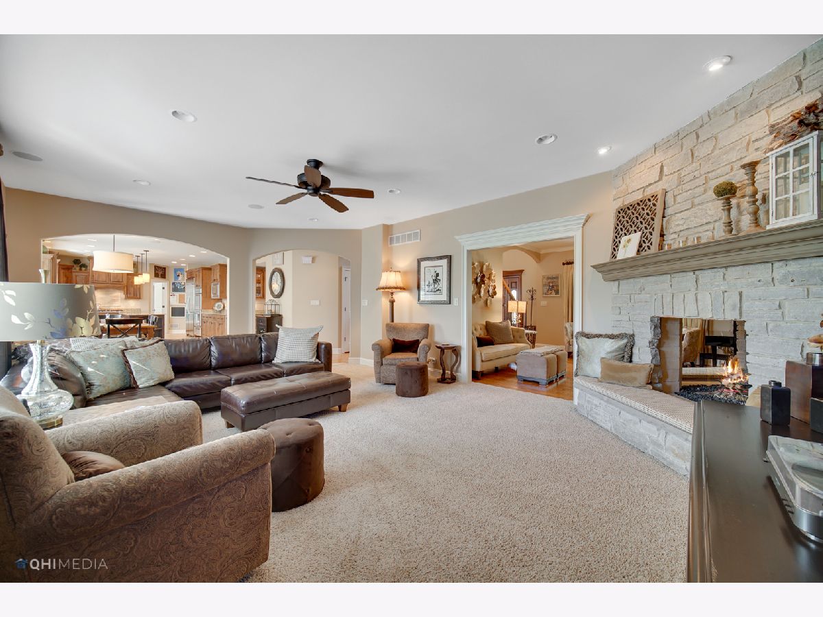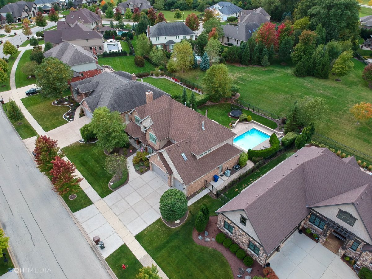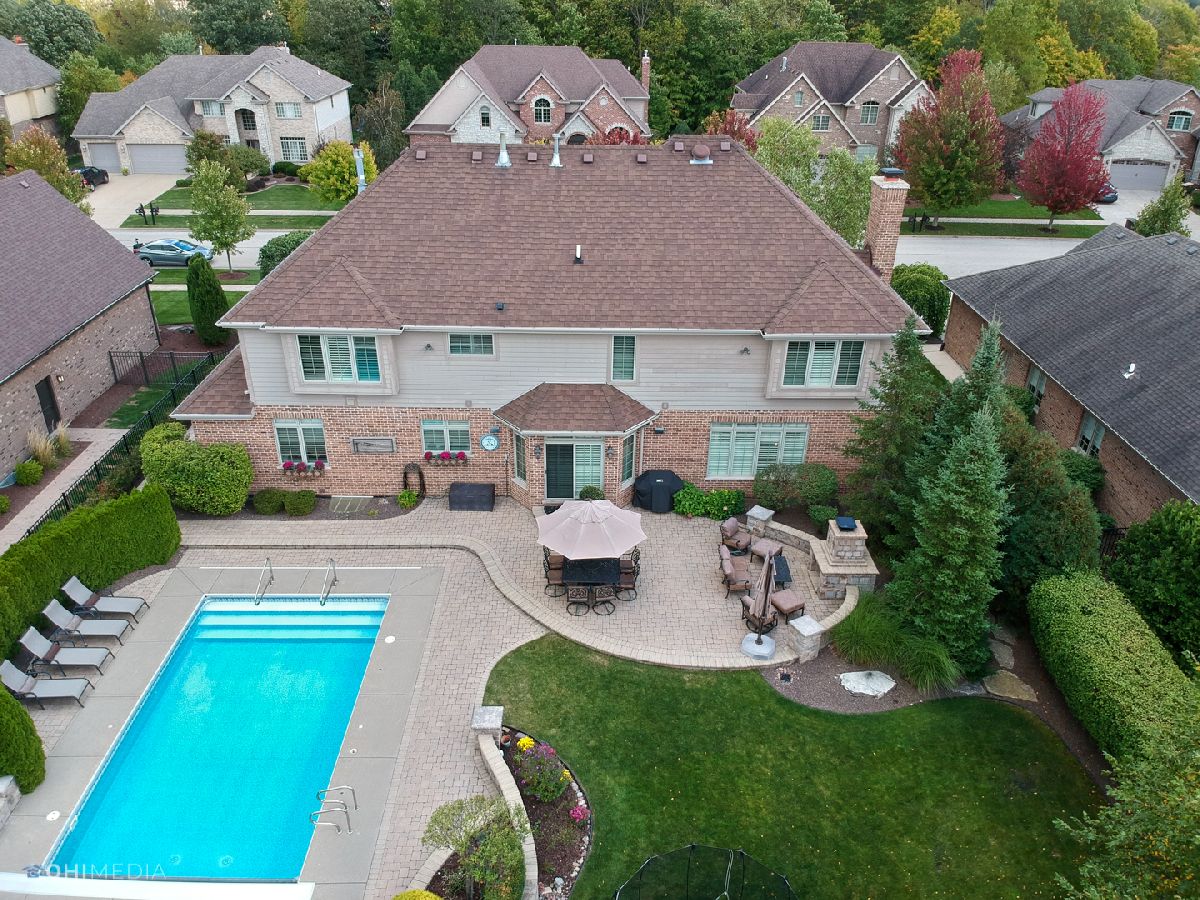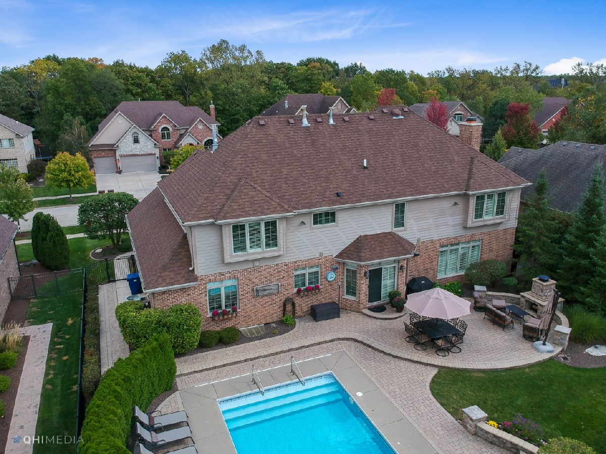 STUNNING custom two story home in Mokena's finest neighborhood, Foxborough Estates! Ideal open floor plan makes this a great home for entertaining. Grand foyer and dining room lead into the exceptional kitchen with custom cabinetry, granite countertops, backsplash, island with pendant lighting, walk-in pantry, high end appliances including double oven & wine cooler! This is the perfect home to host the upcoming holidays with all the countertop space! Welcoming family room and living room with double sided fireplace. Main floor bedroom and full bath could be in-law suite if needed. Luxury master suite with a cozy relaxing sitting area & another double sided fireplace. Two oversized walk-in closets with one so large, it's also being used as an office! Master bath featuring dual sinks, full body spray steam shower, & whirl pool tub! 2nd bedroom features on suite bath and walk-in closet. Down the hall you'll find 2 more spacious bedrooms and additional full bathroom. Plantation shutters throughout. 2 laundry rooms. Full unfinished basement with rough-in plumbing waiting for your finishing touches. 3 Car heated garage includes epoxy floors, shelving & plenty of storage room. Backyard oasis features in-ground pool, extensive brick paver patio, and outdoor fireplace. Home is professionally landscaped with sprinkler system including complete privacy around pool with mature trees and no direct backyard neighbors. Between the quality craftsmanship and superb up-keep from these original owners, this home is truly impressive and doesn't disappoint! CHECK OUT VIRTUAL TOUR!